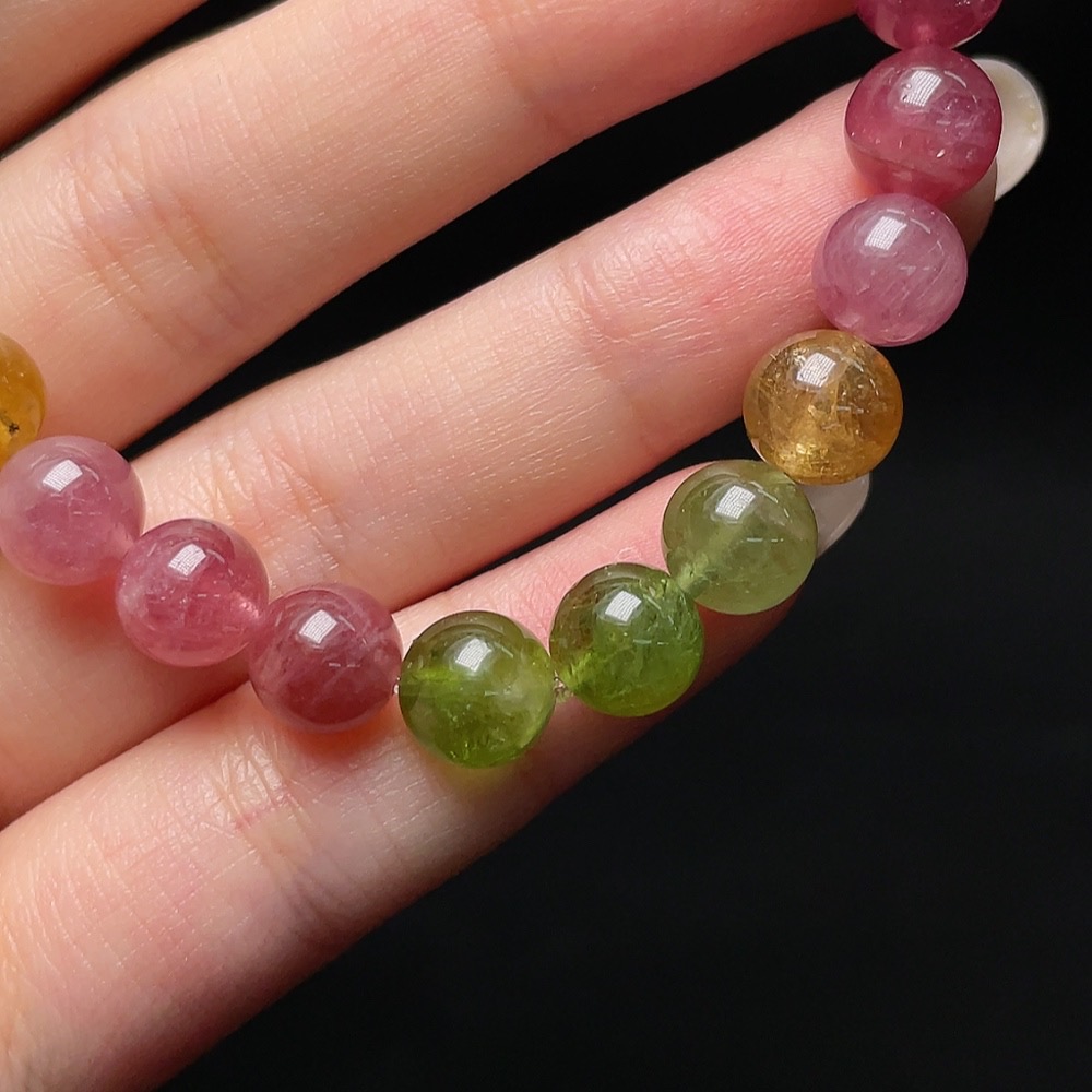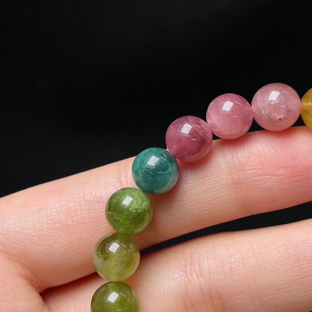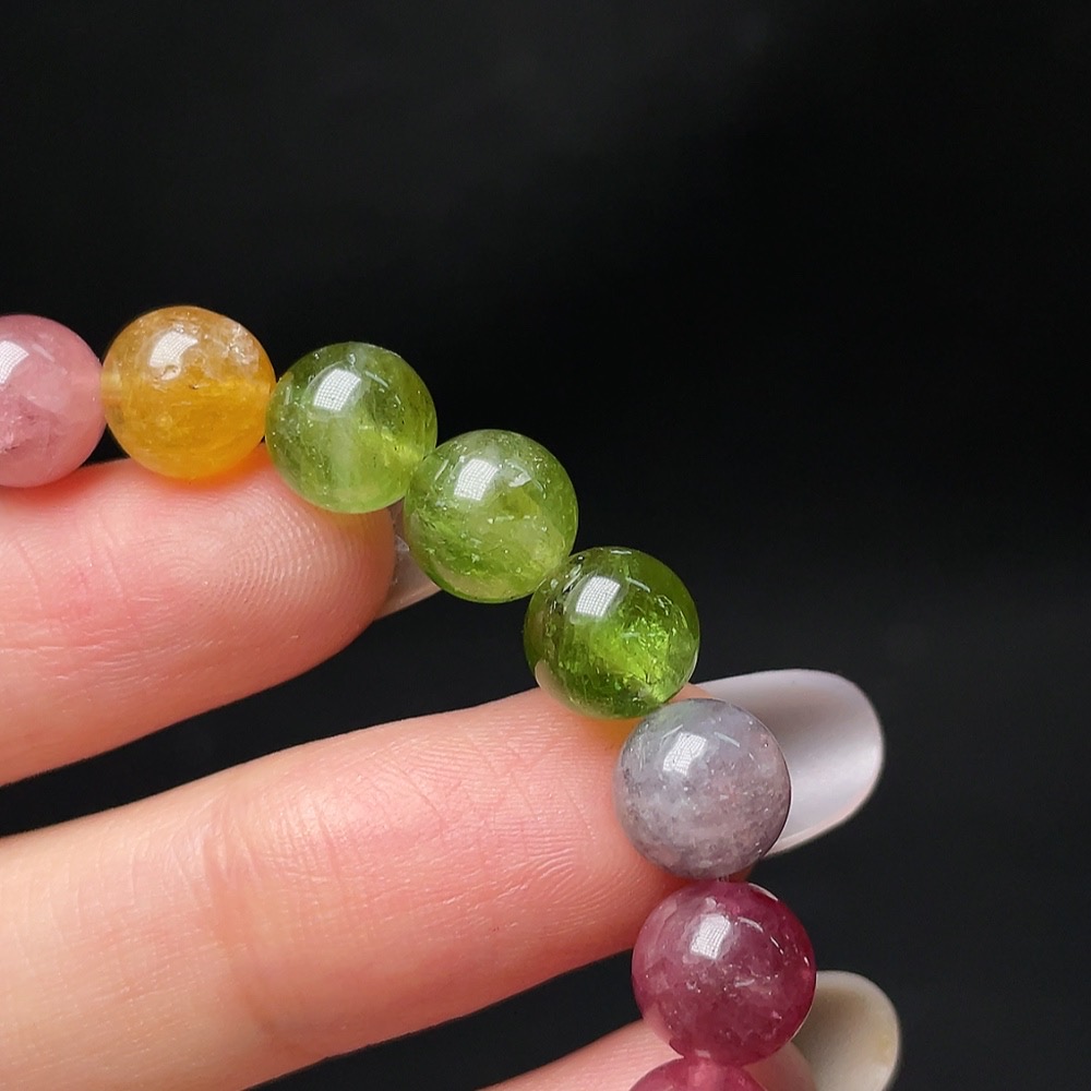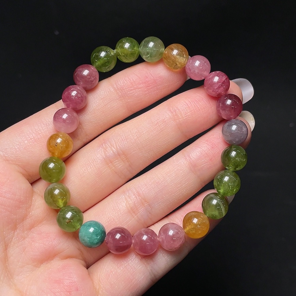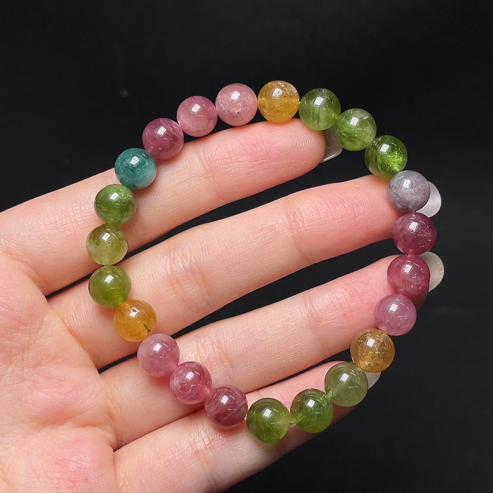 Tourmaline Bracelet with Other Mineral Components, Visible Organic Matter, Total Weight Approx. 19.43g, Size About 8.3mm
