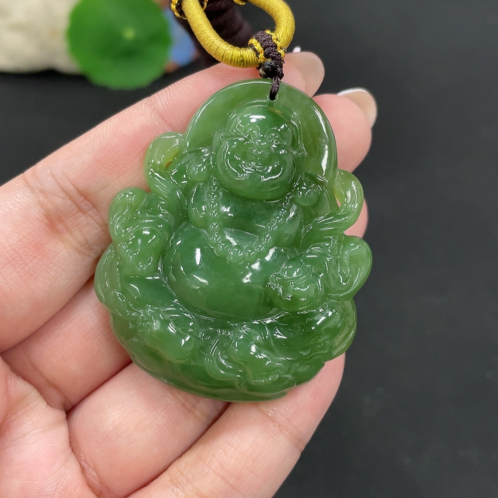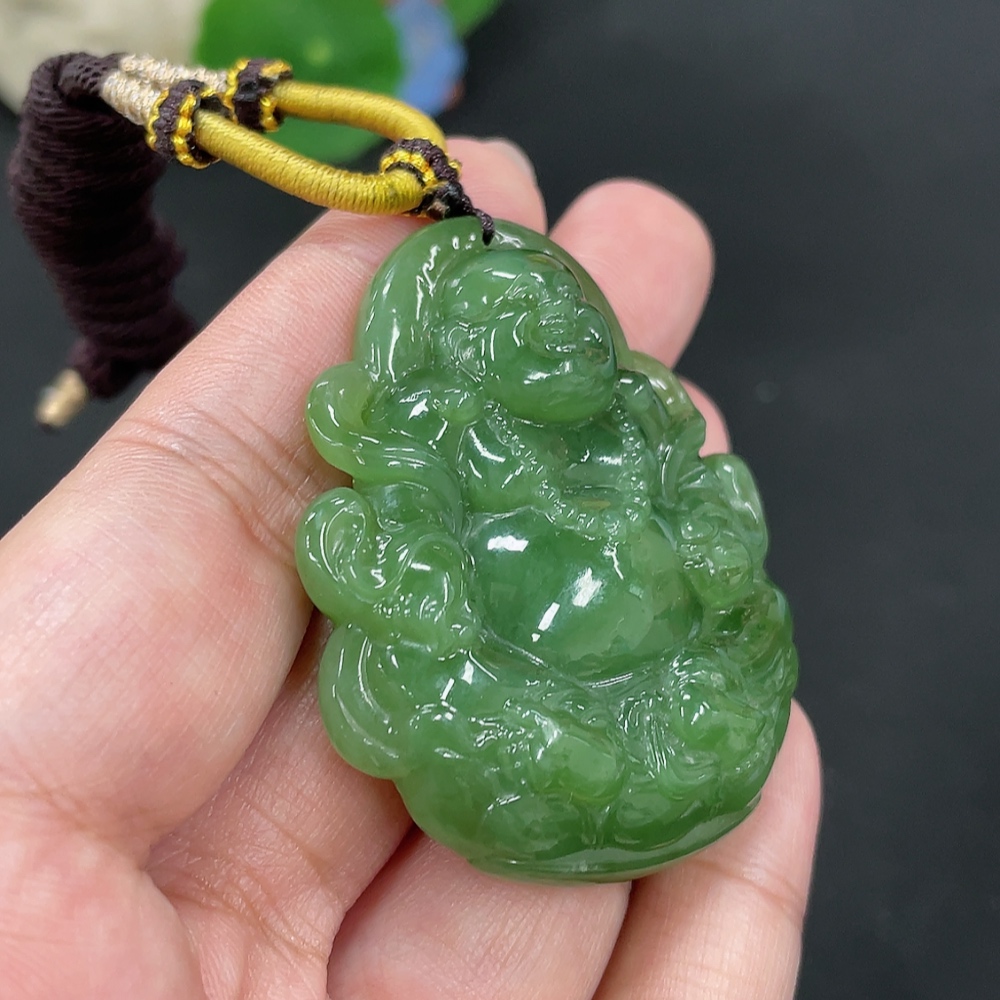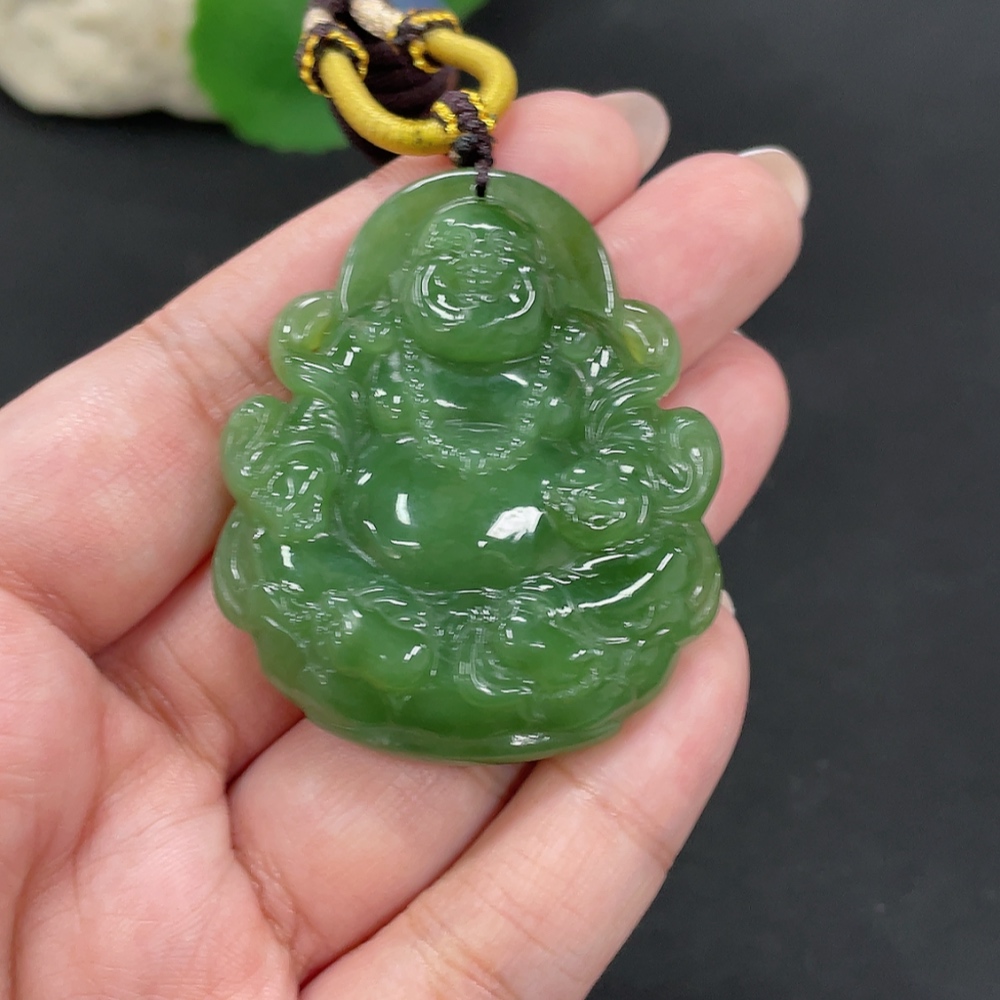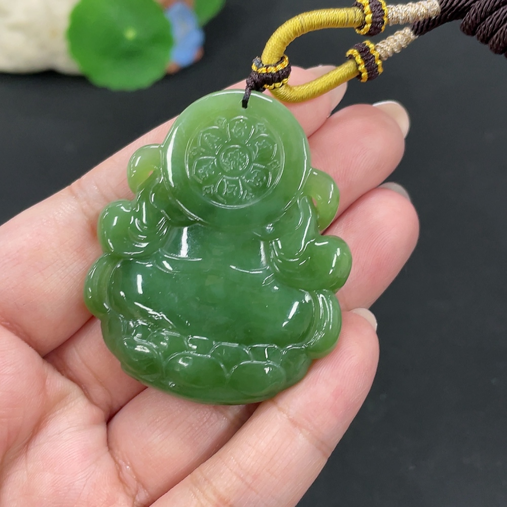 Hetian Jade Pendant Buddha, Total Weight (including rope): 38.9g