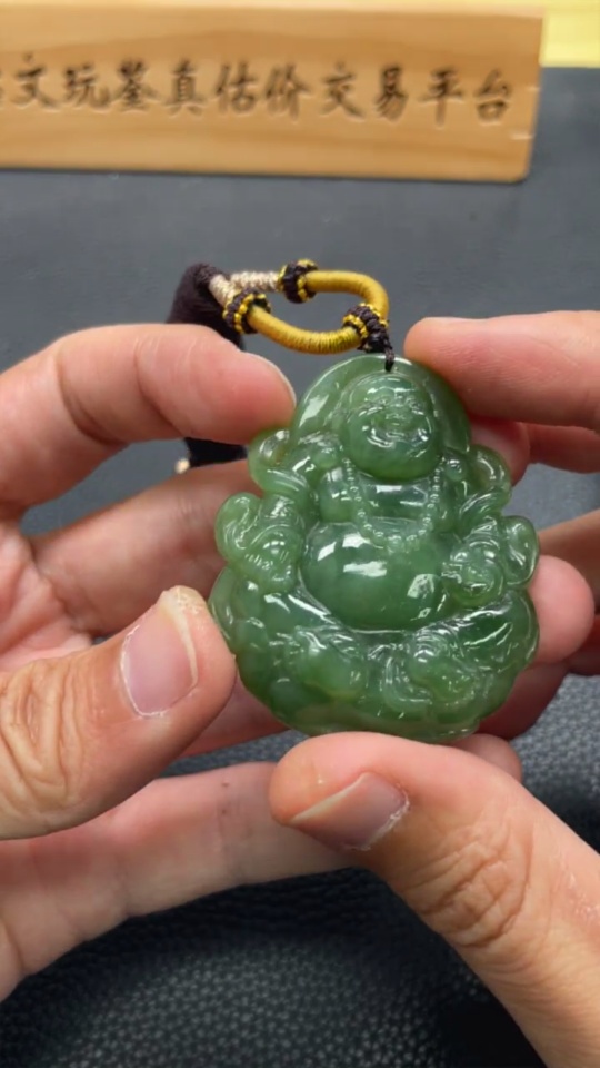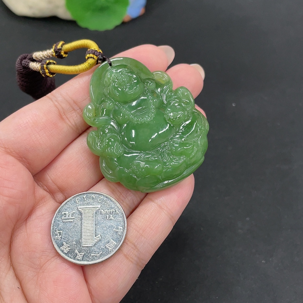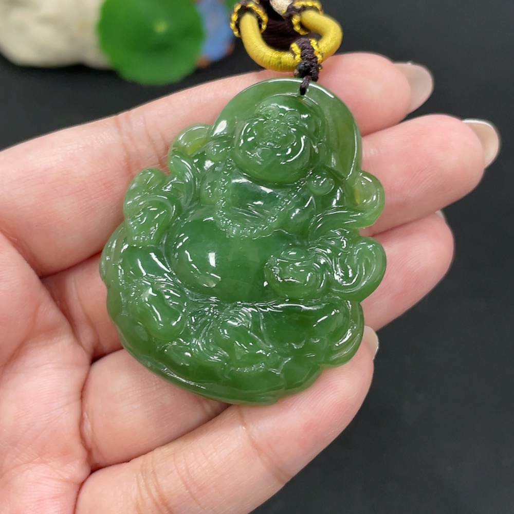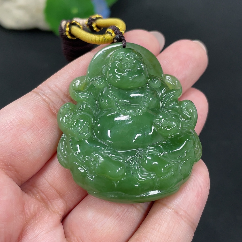 Hetian Jade Pendant Buddha, Total Weight (including rope): 38.9g