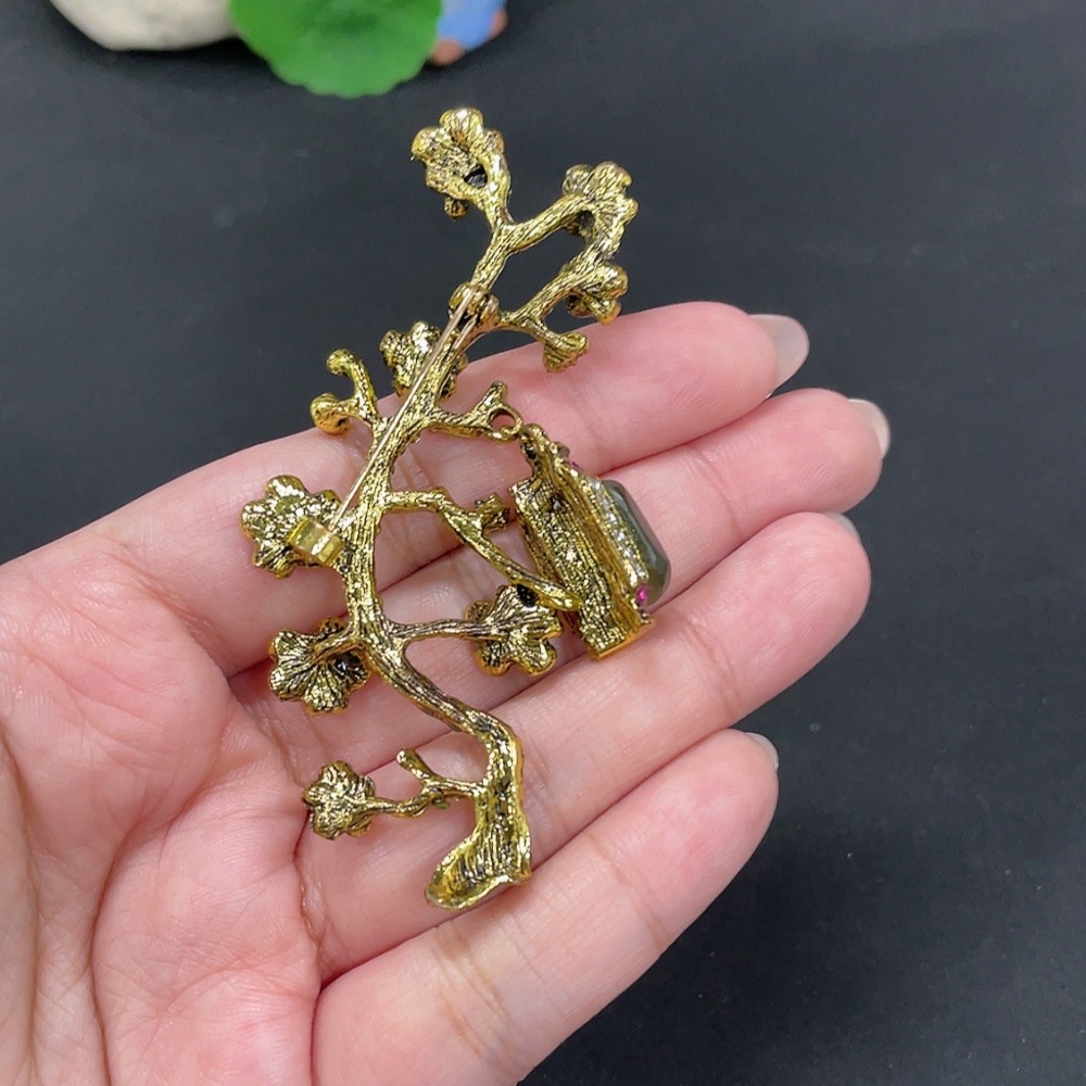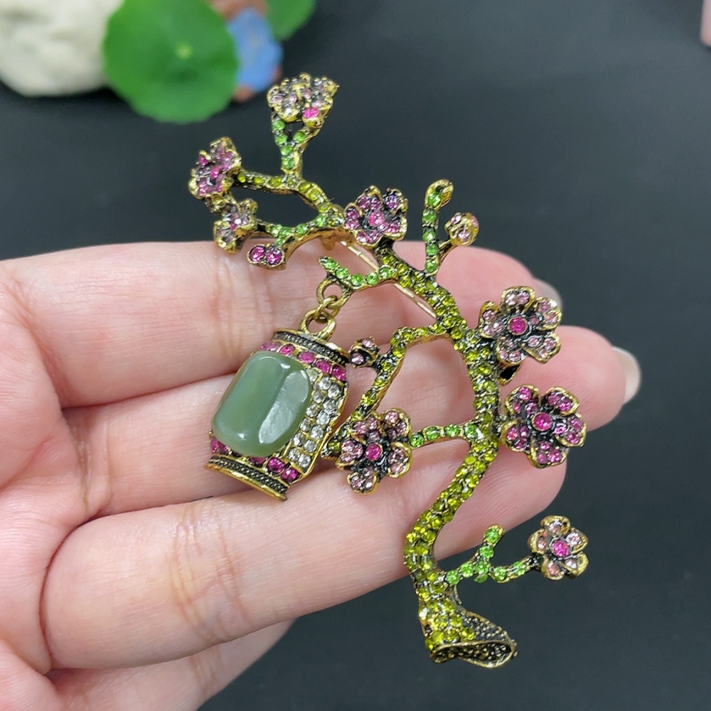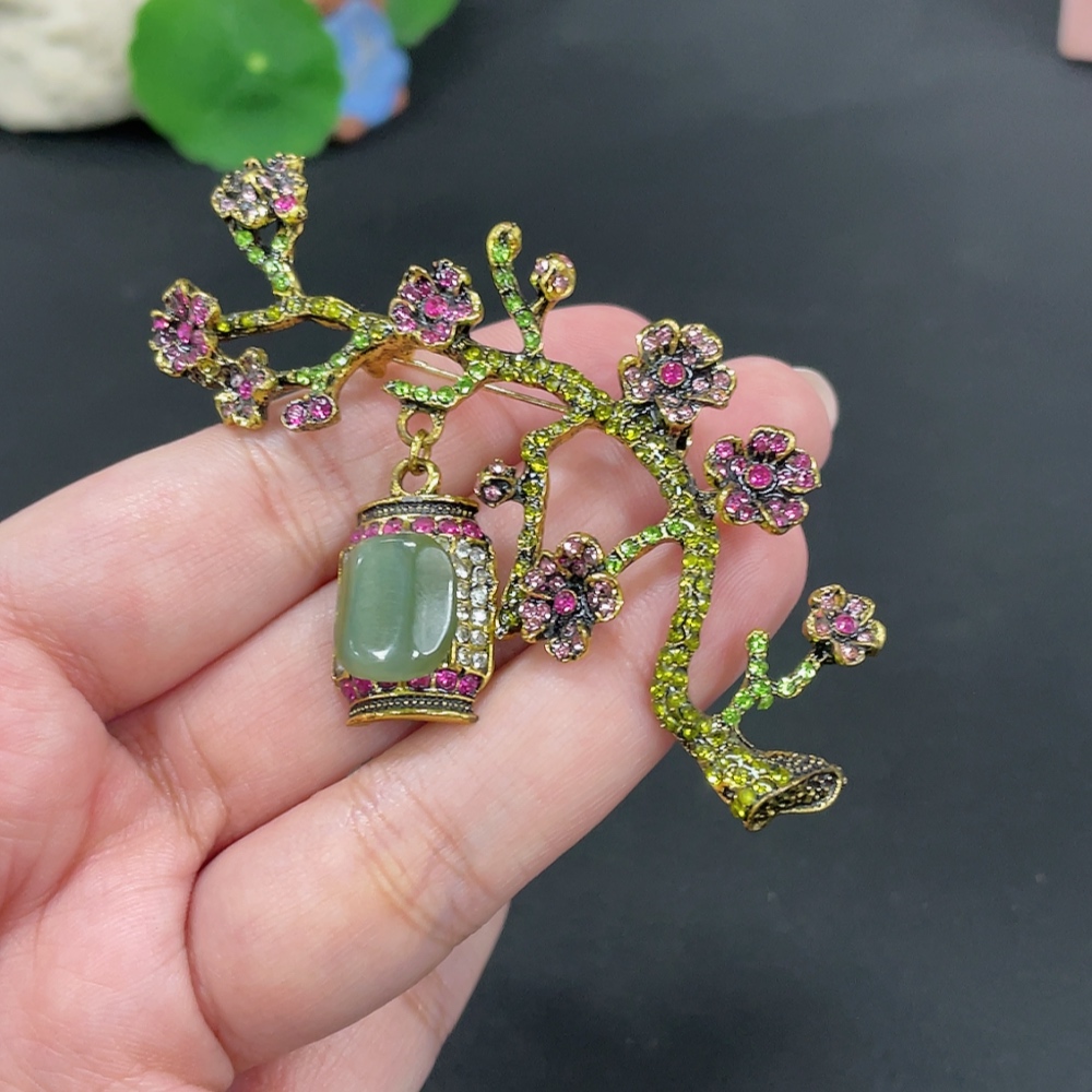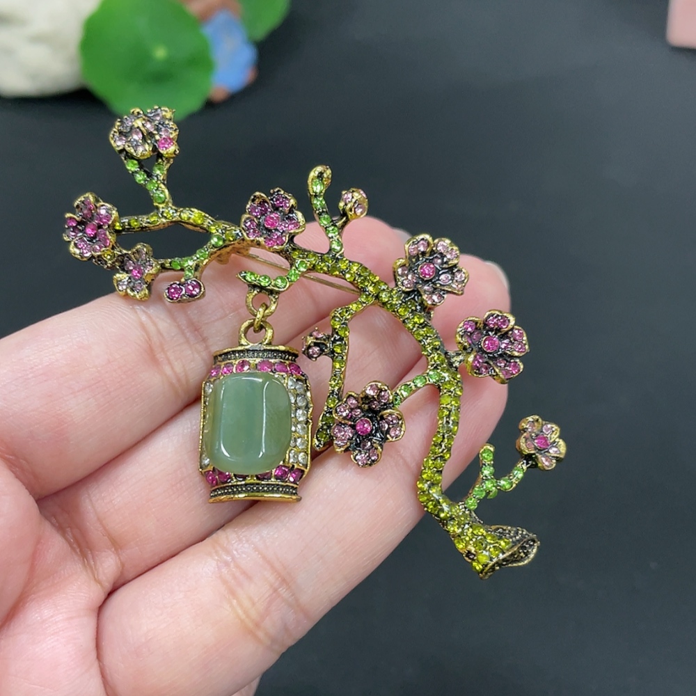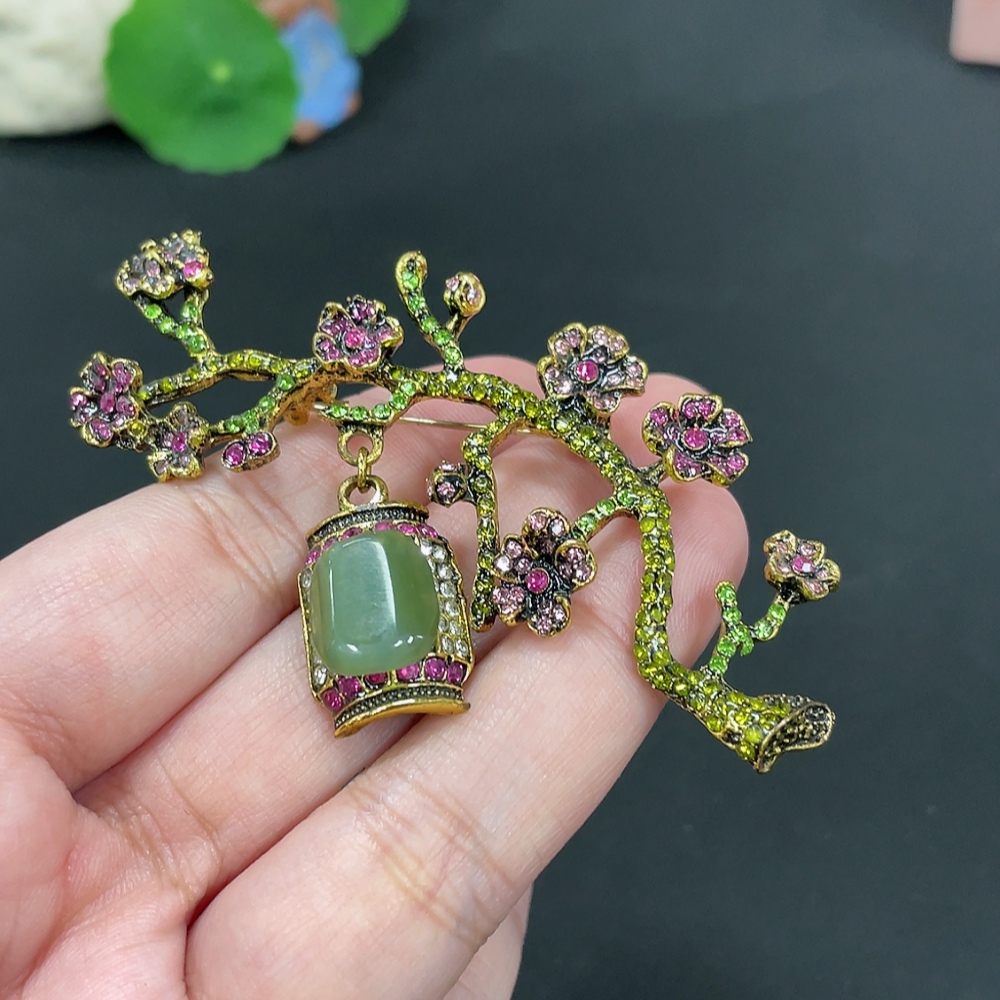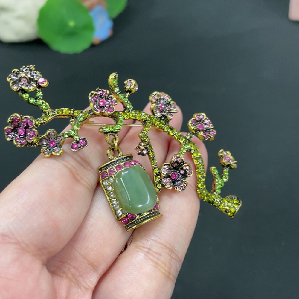 Hetian Jade Inlaid Brooch Non-Gold Total Weight About 20.8g