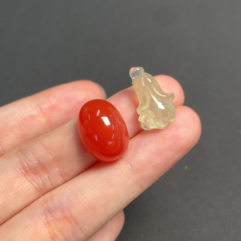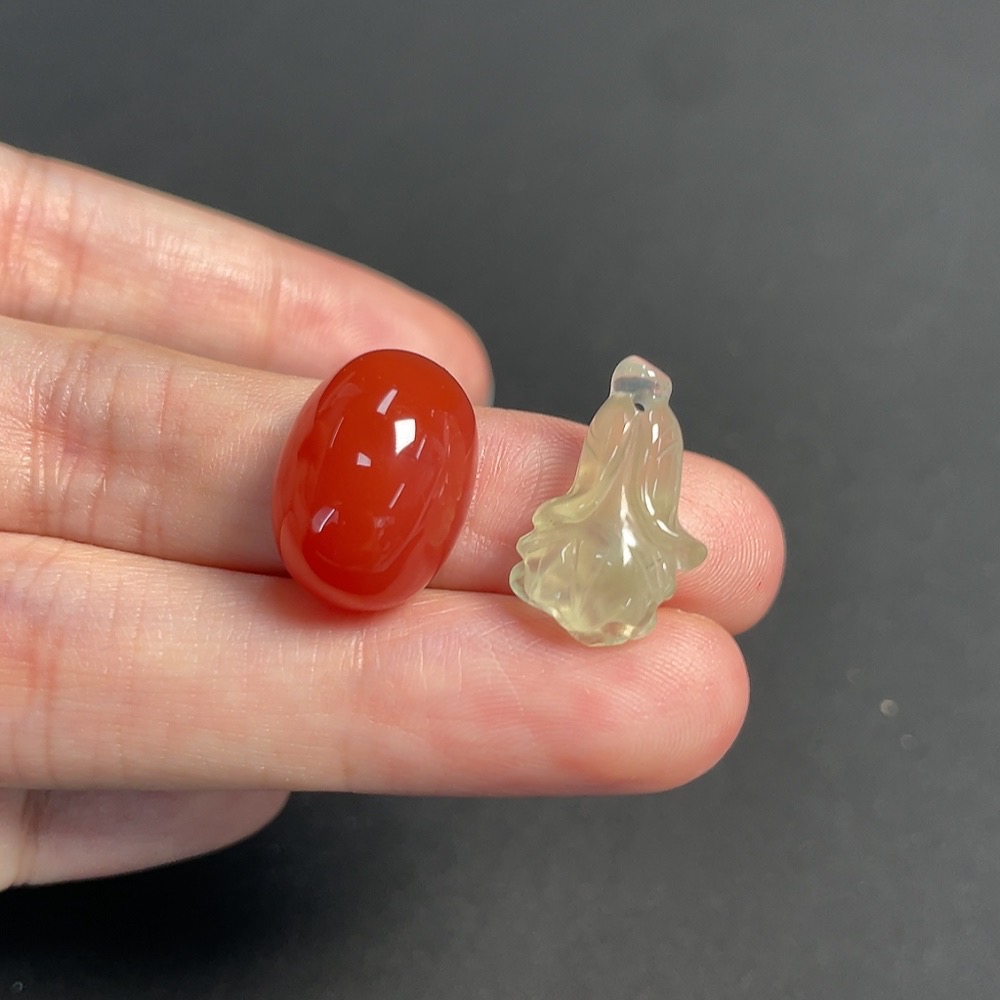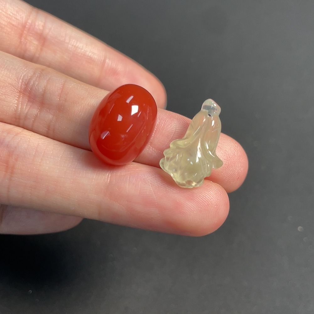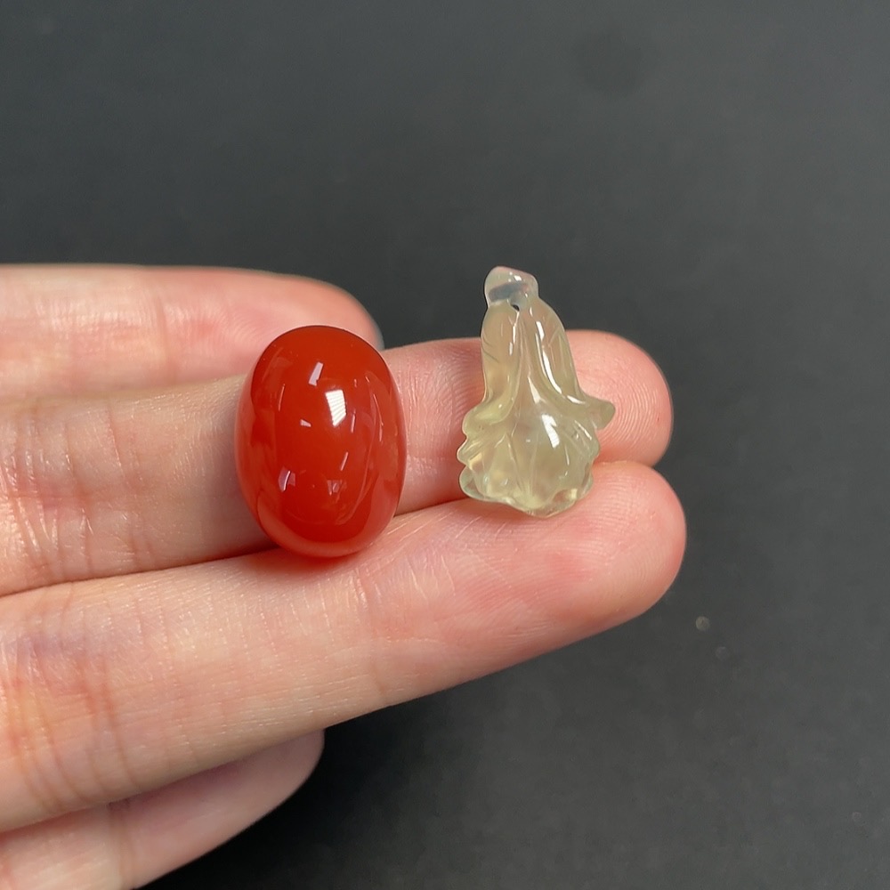 South Red Agate and Prehnite Pendant + Cabochon, Total Weight Approx. 4.84g