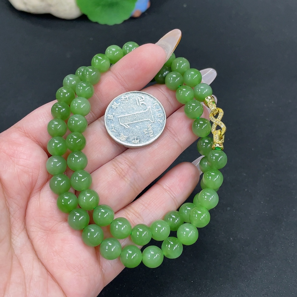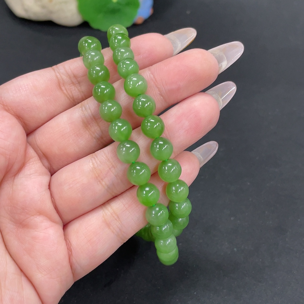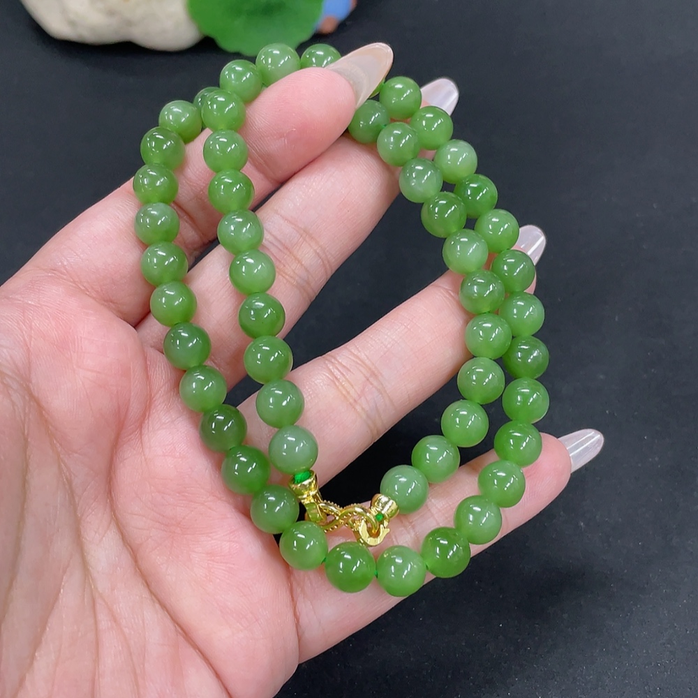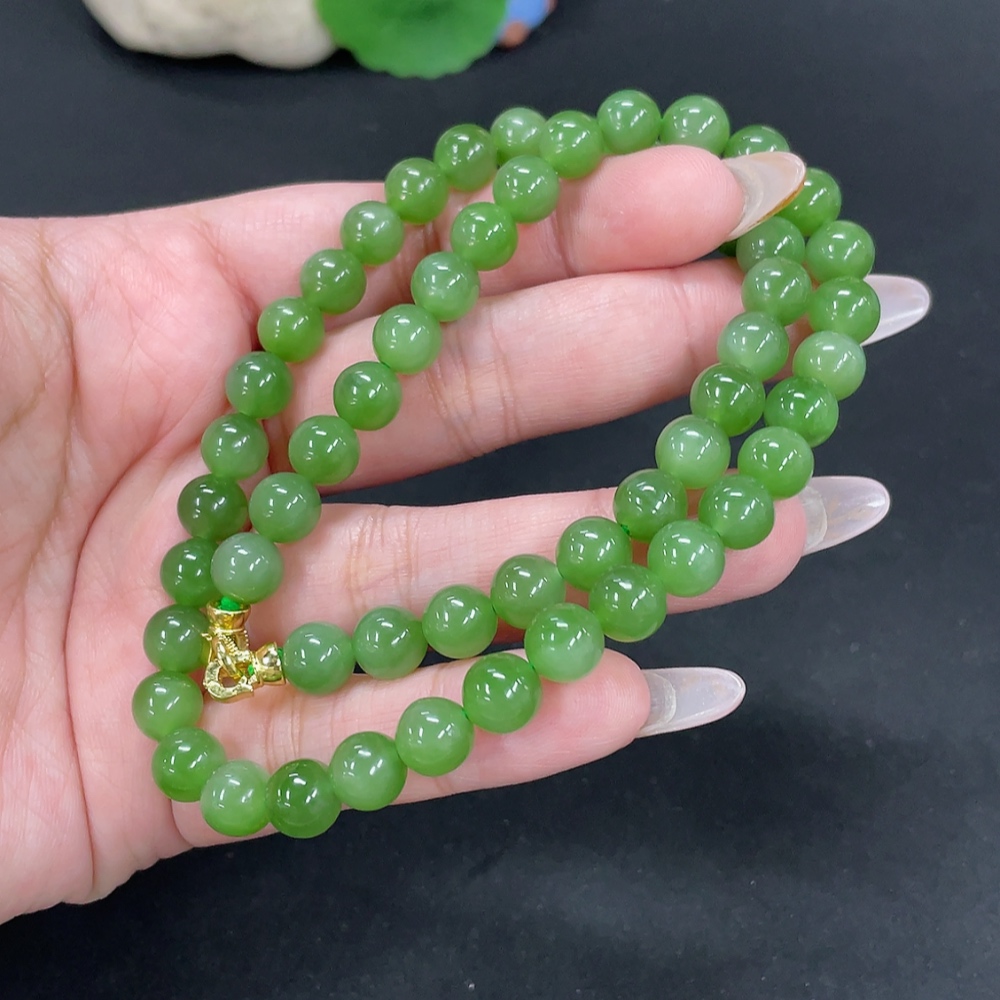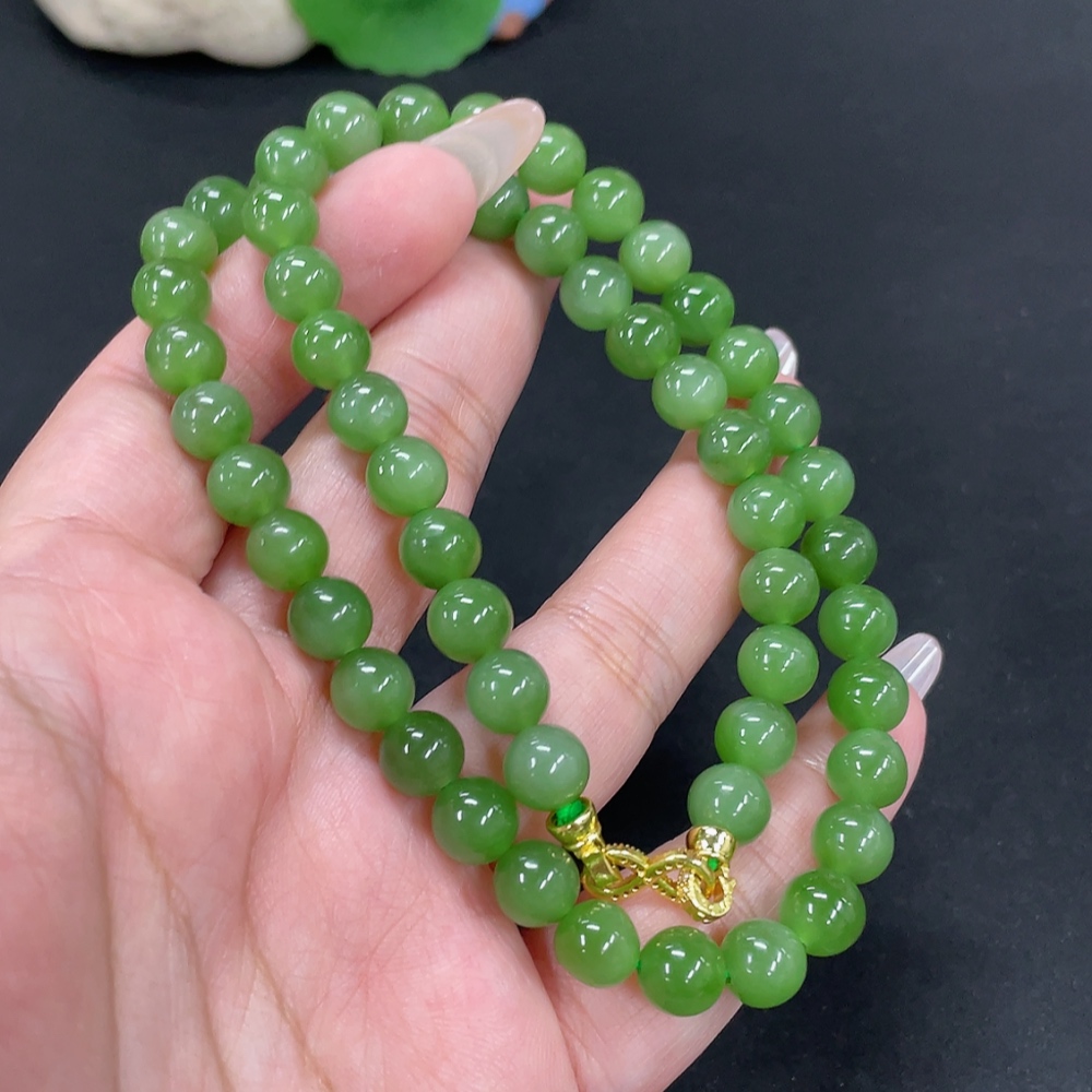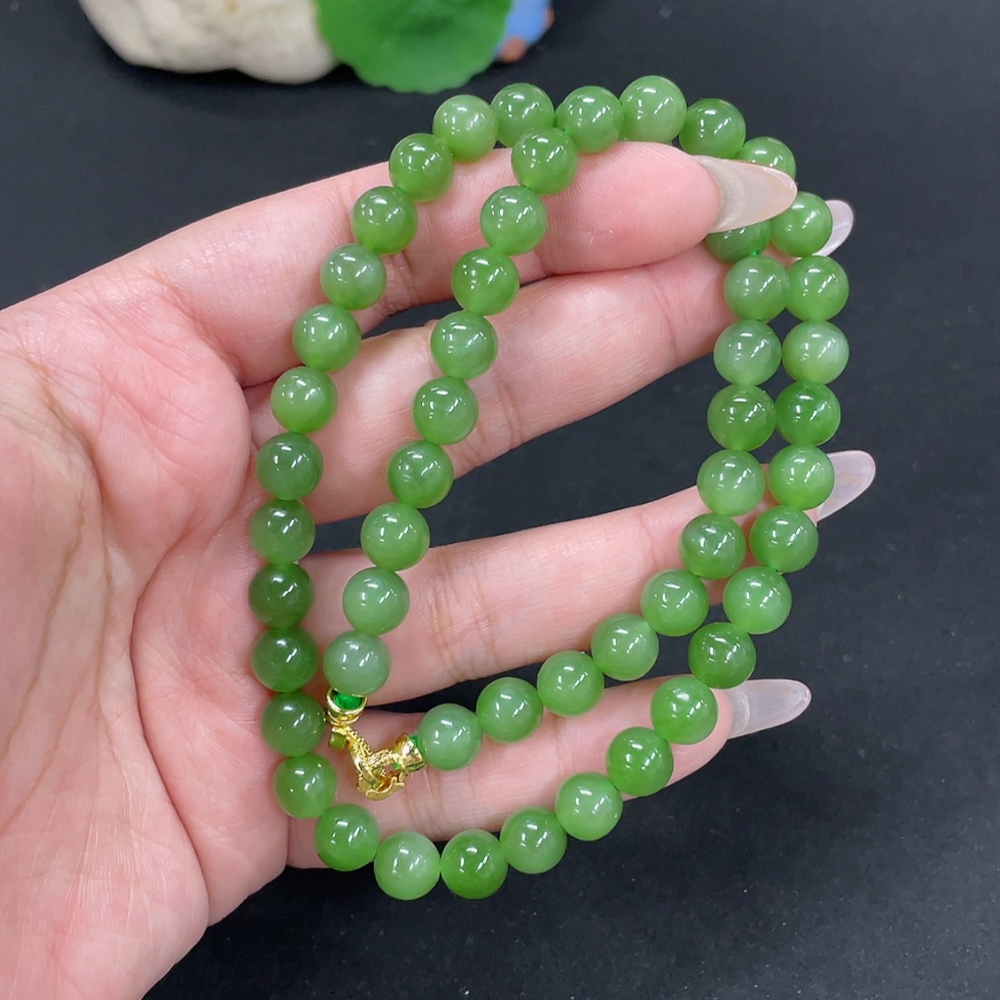 Hetian Jade Jasper Bead Necklace Approx. 7.4mm Non-Gold Total Weight Approx. 43.7g