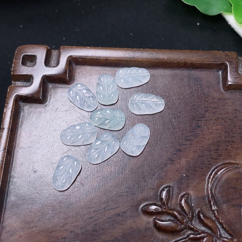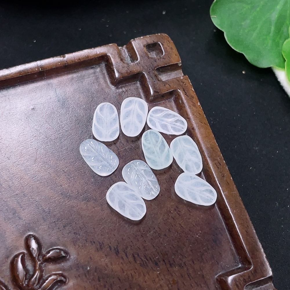 Jadeite Leaf Inlaid Pieces Sell as a Lot