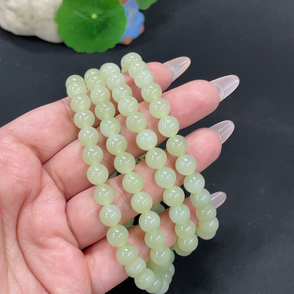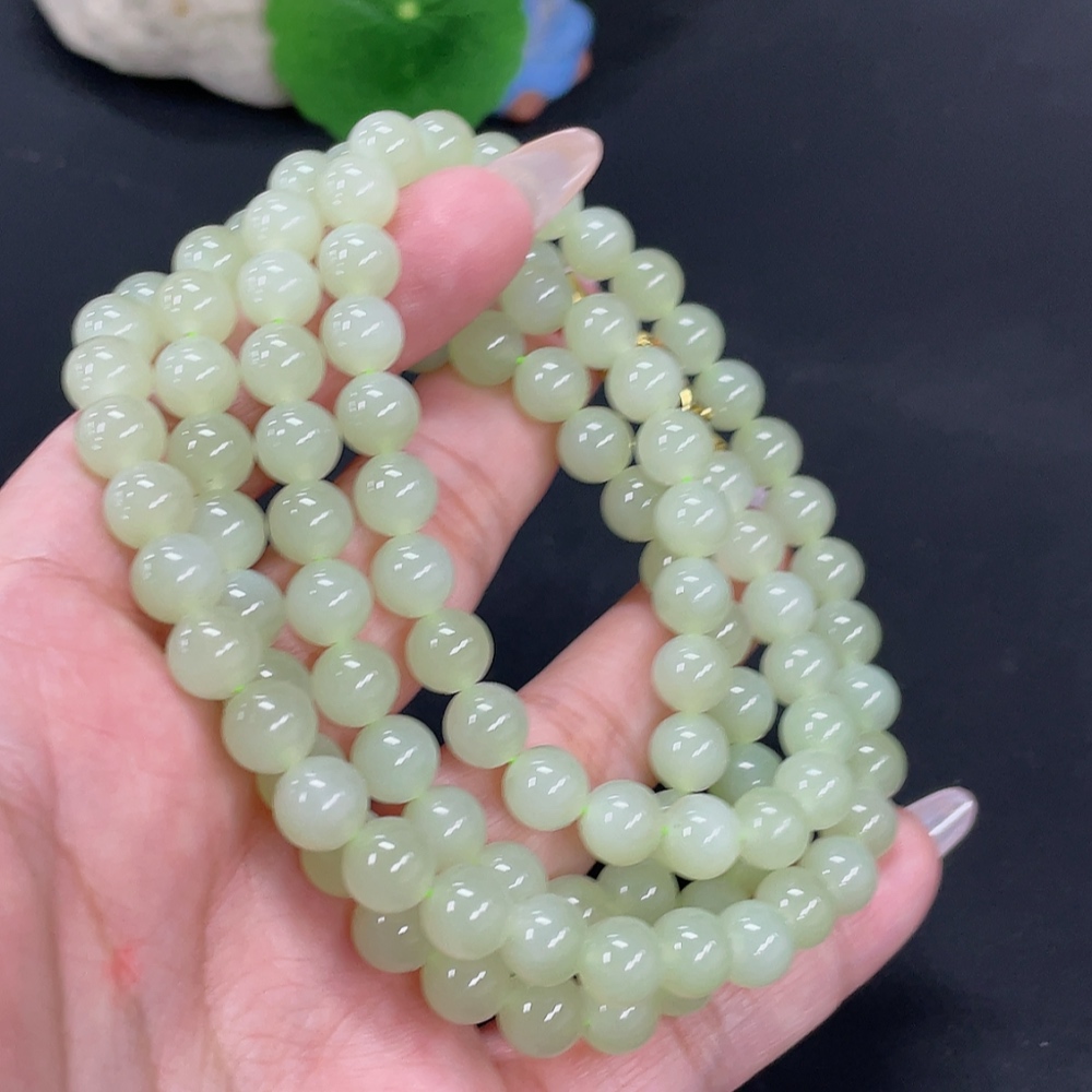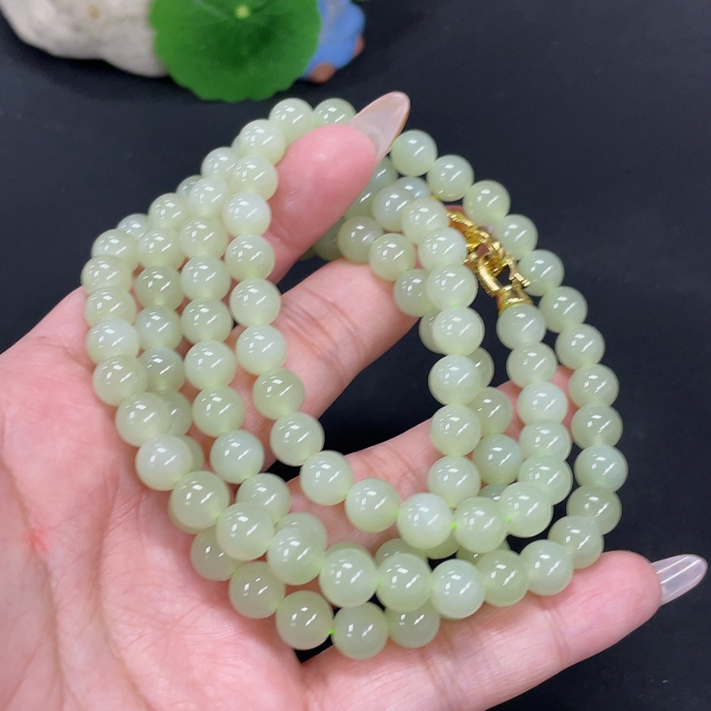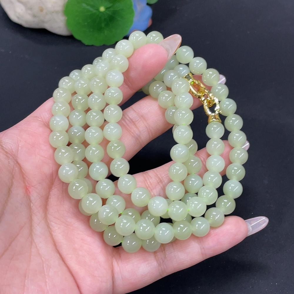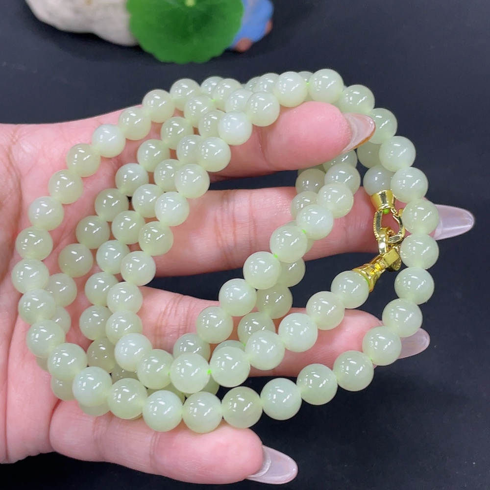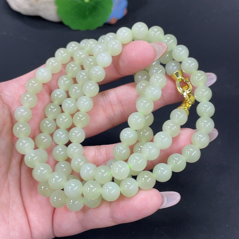 Hetian Jade Bead Necklace, Approximately 7.7mm, Total Weight About 84.2g
