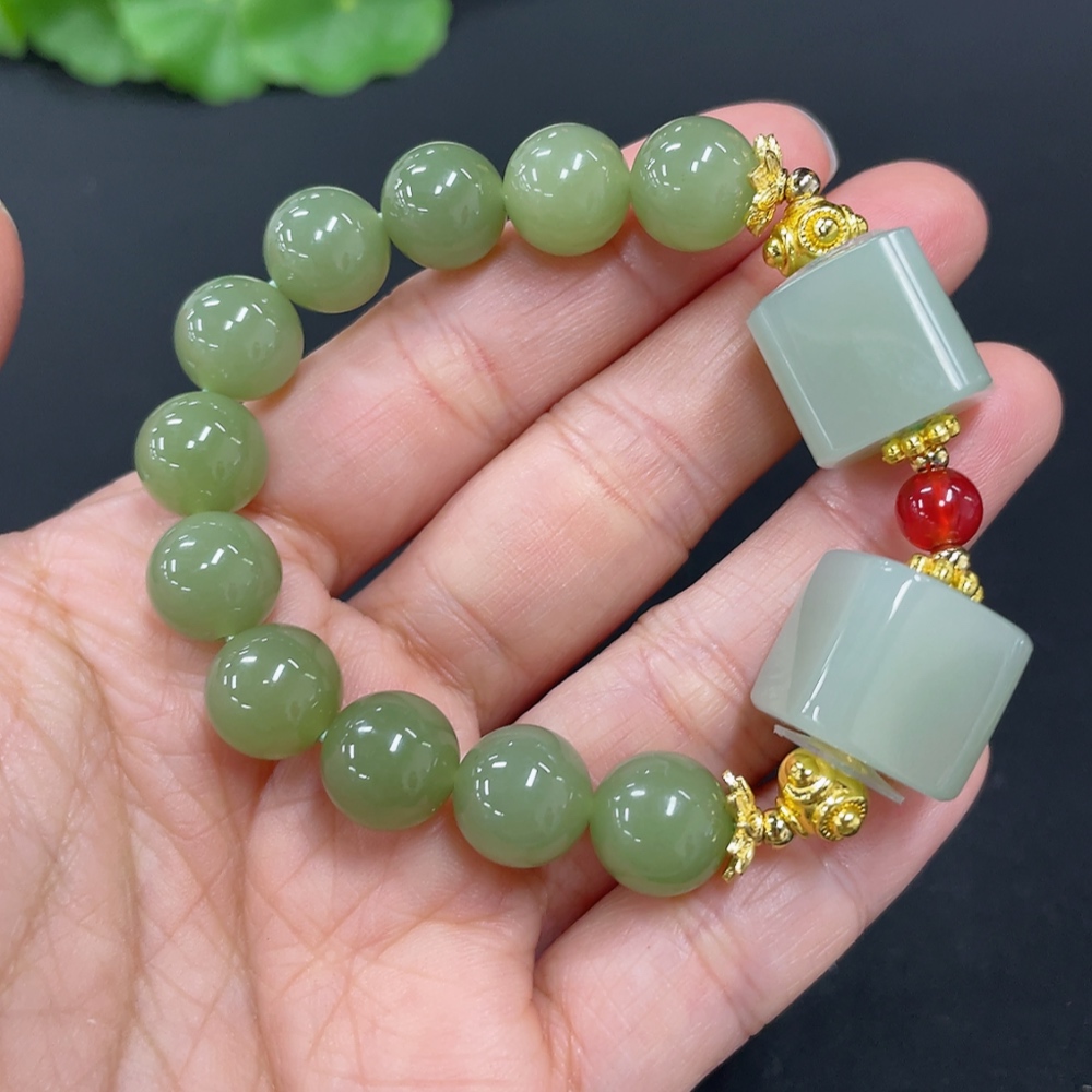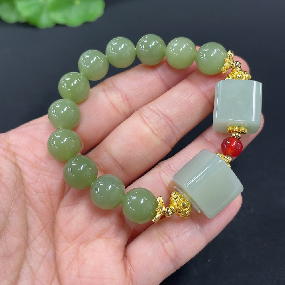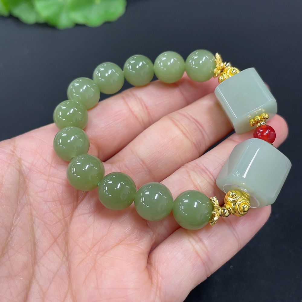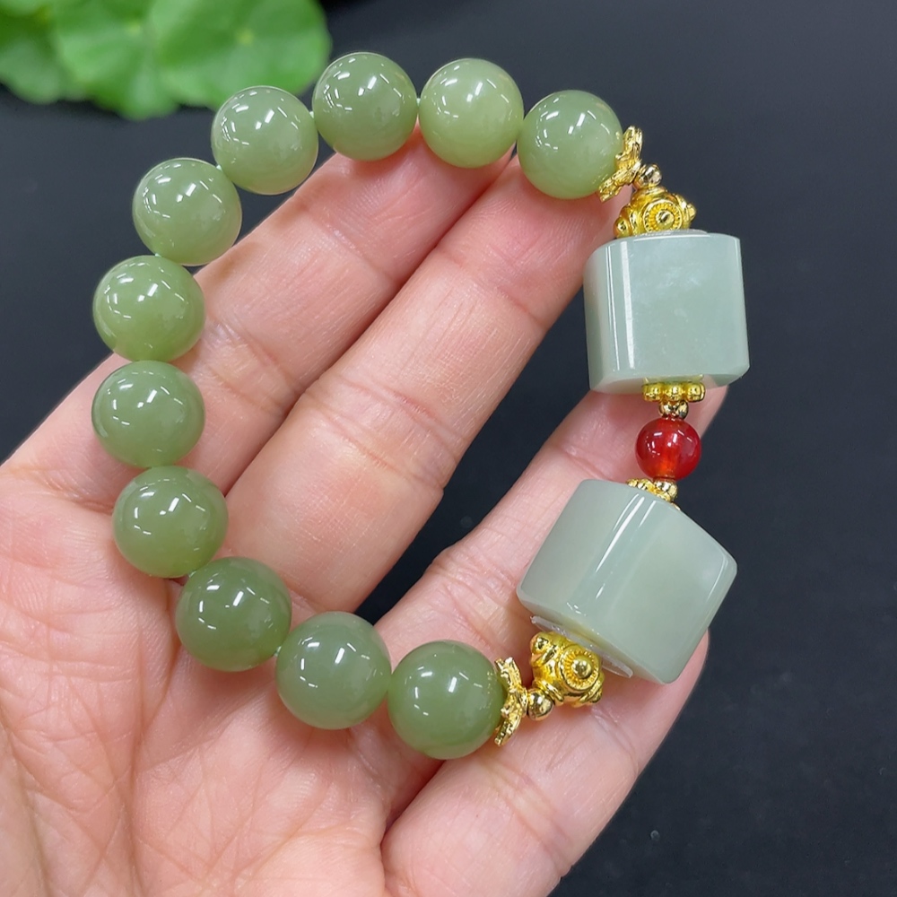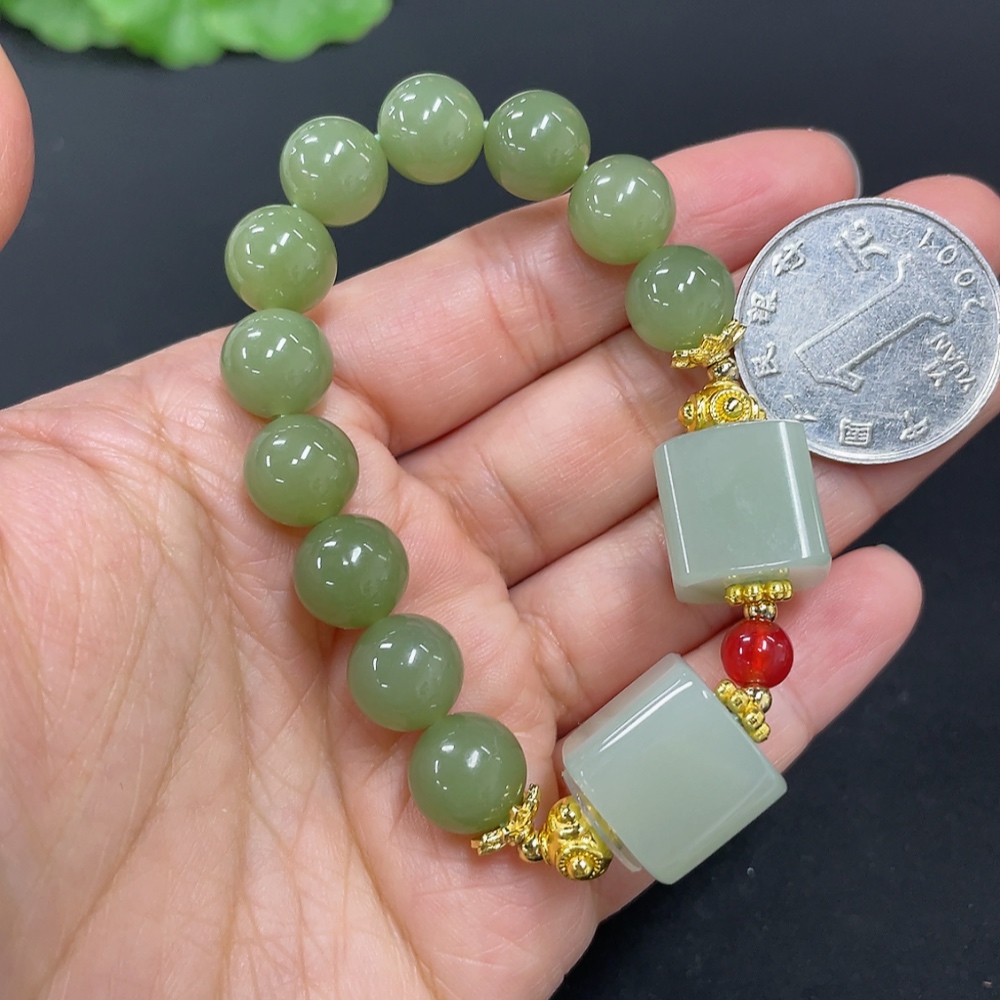 Hetian Jade Bracelet, Approx. 9.7mm, Non-Gold, Total Weight Approx. 32.5g, Beads Not Hetian Jade