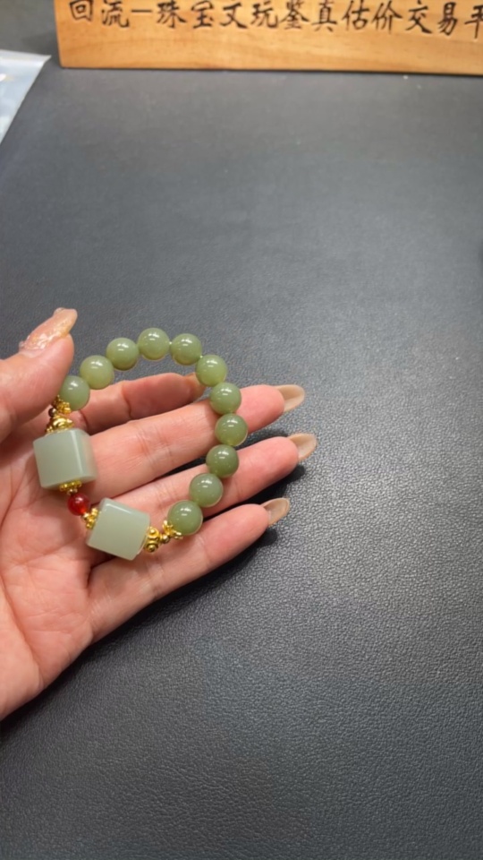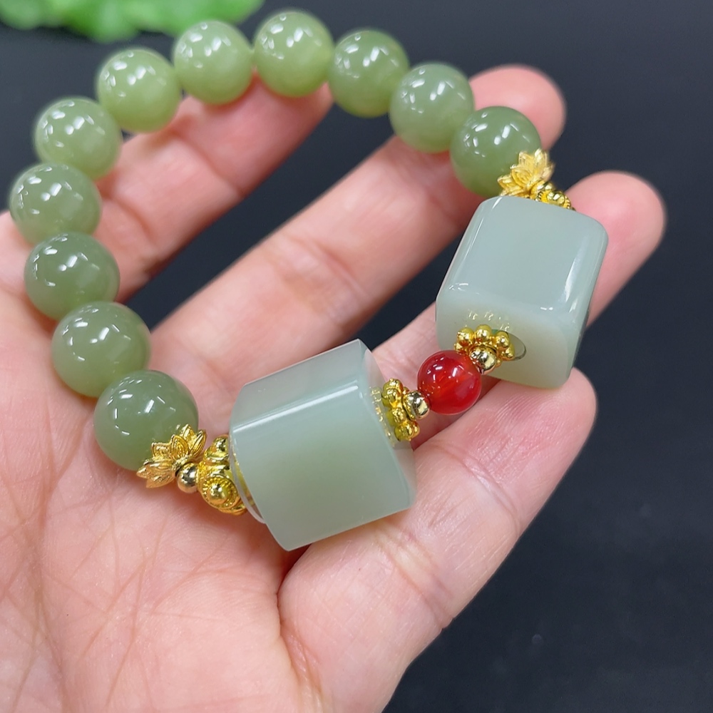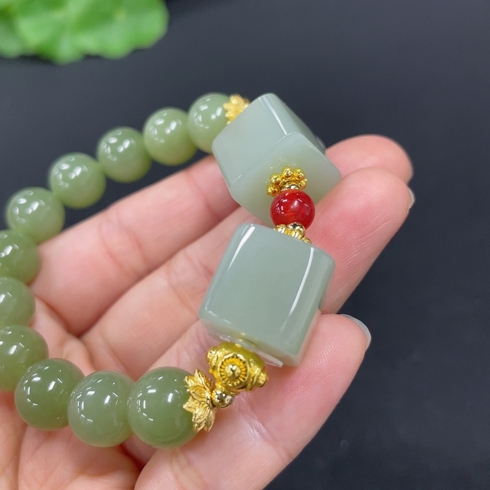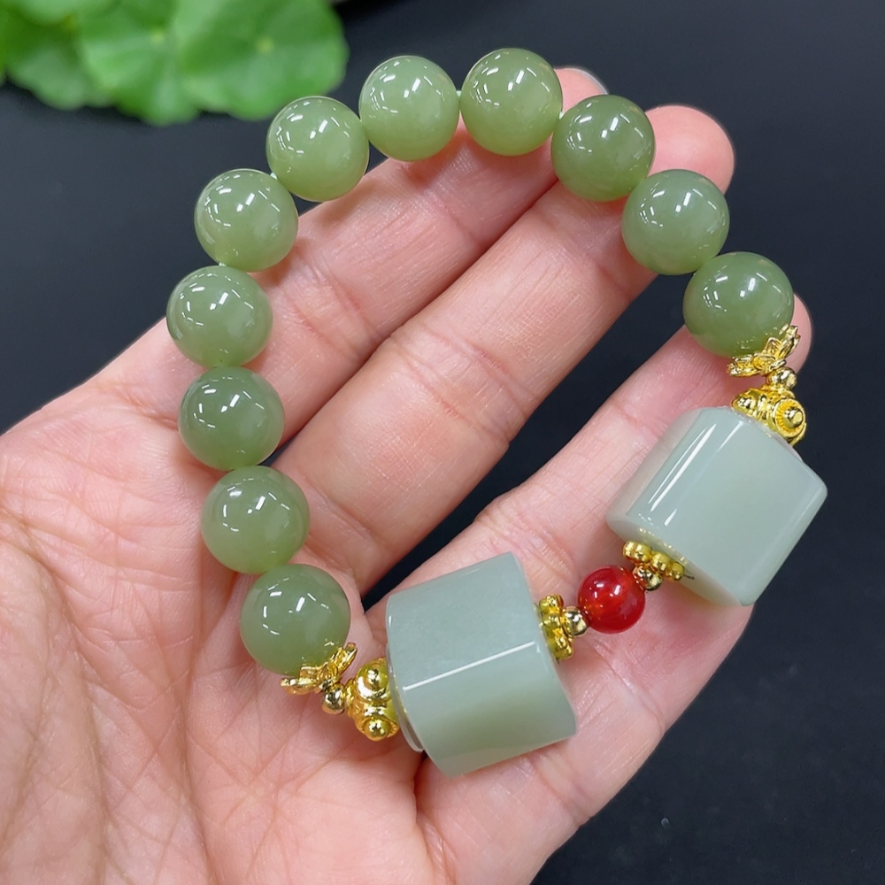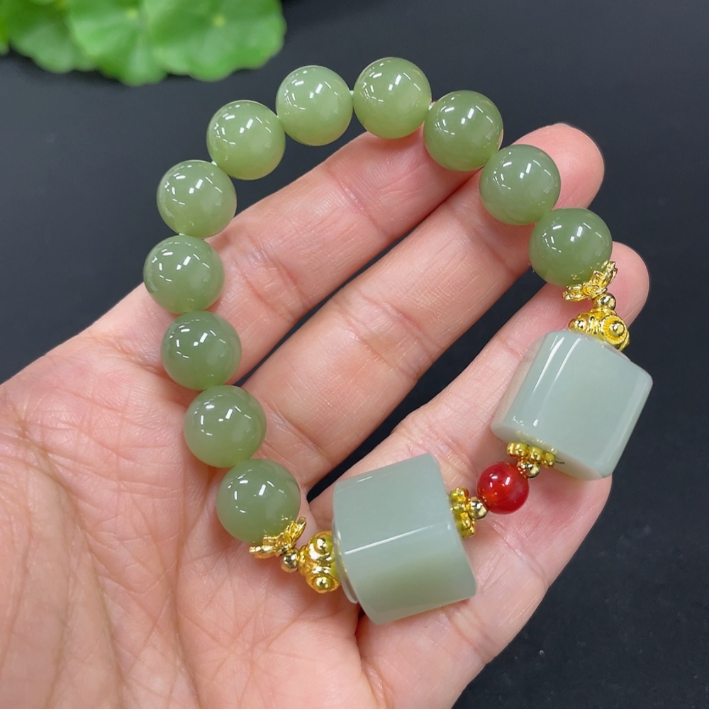 Hetian Jade Bracelet, Approx. 9.7mm, Non-Gold, Total Weight Approx. 32.5g, Beads Not Hetian Jade