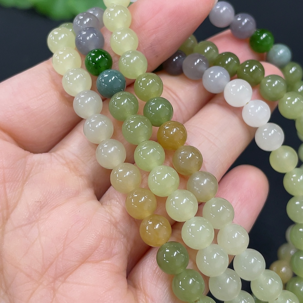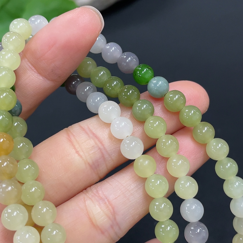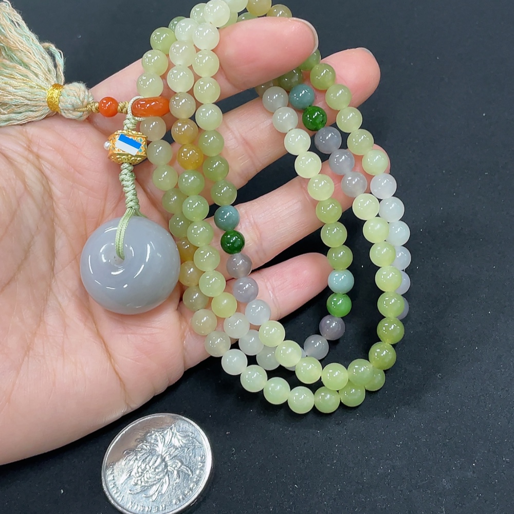 Hetian Jade Bead Necklace, Approx. 5.8mm, Non-Gold, Total Weight Approx. 51.7g, Non-Hetian Jade Matching Beads