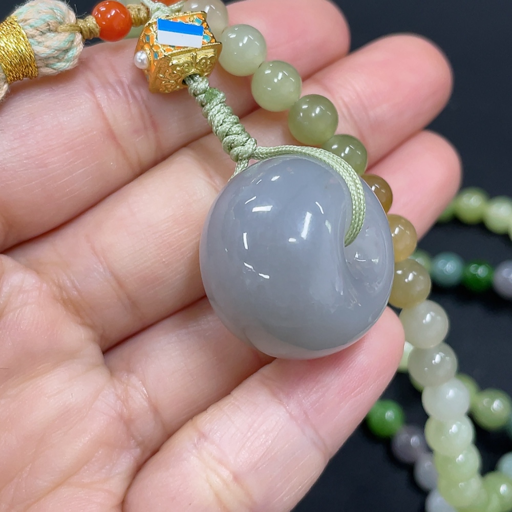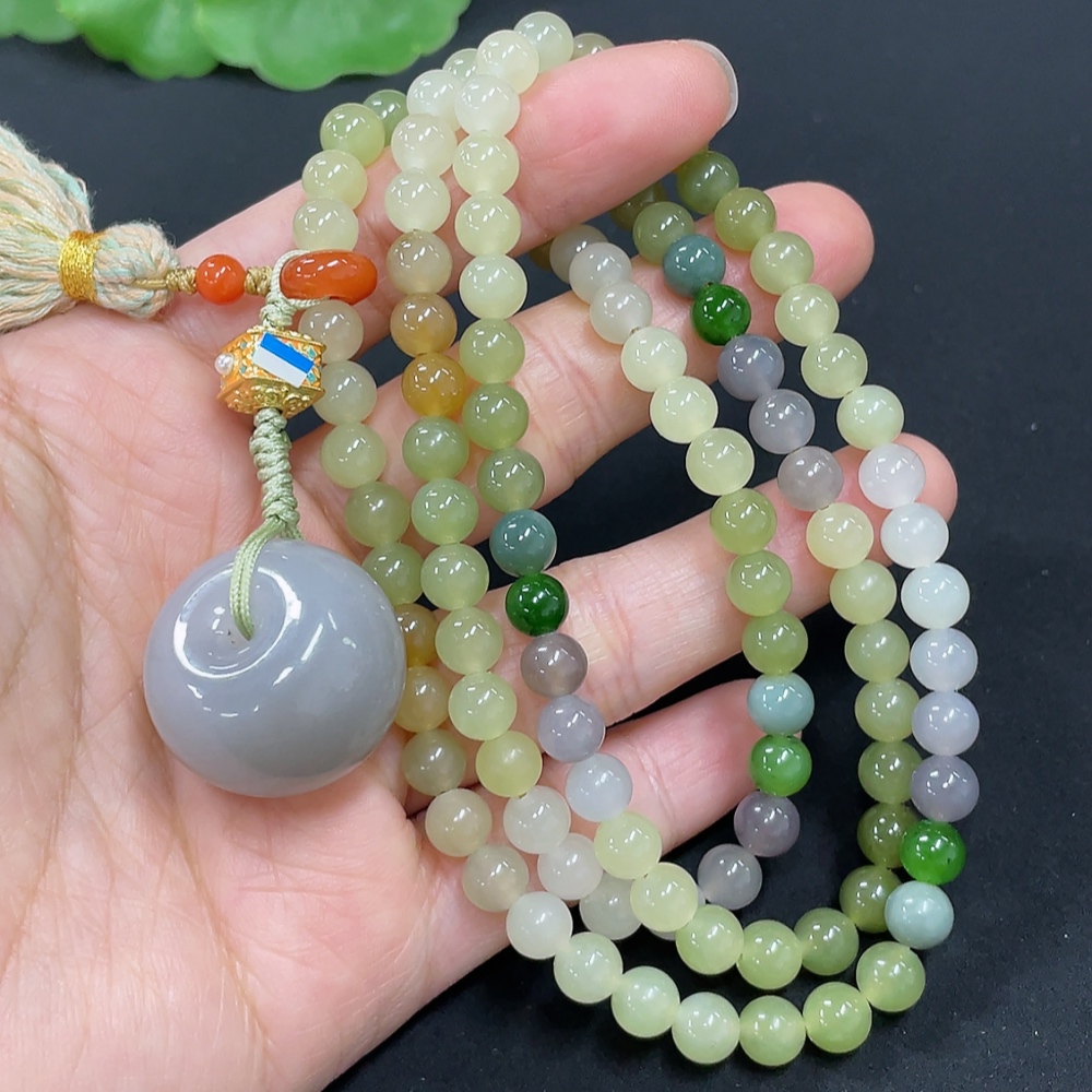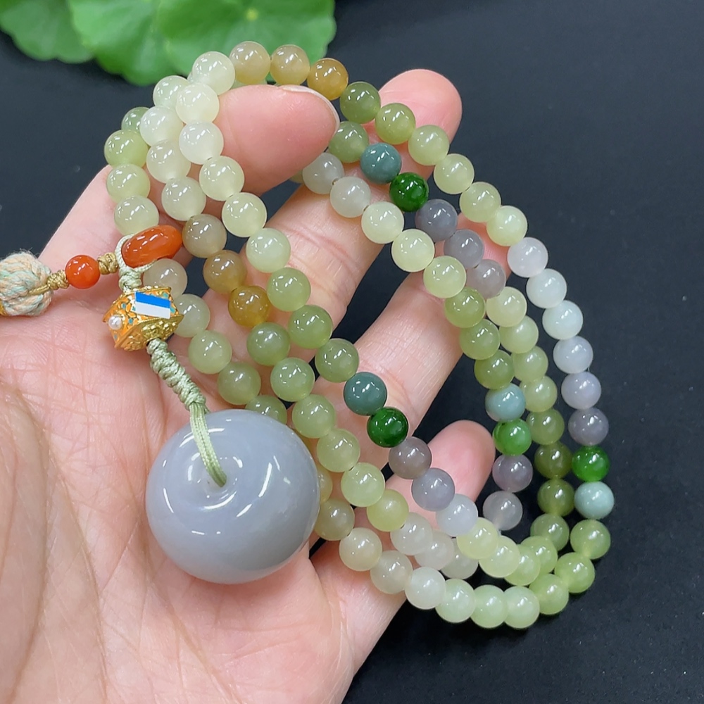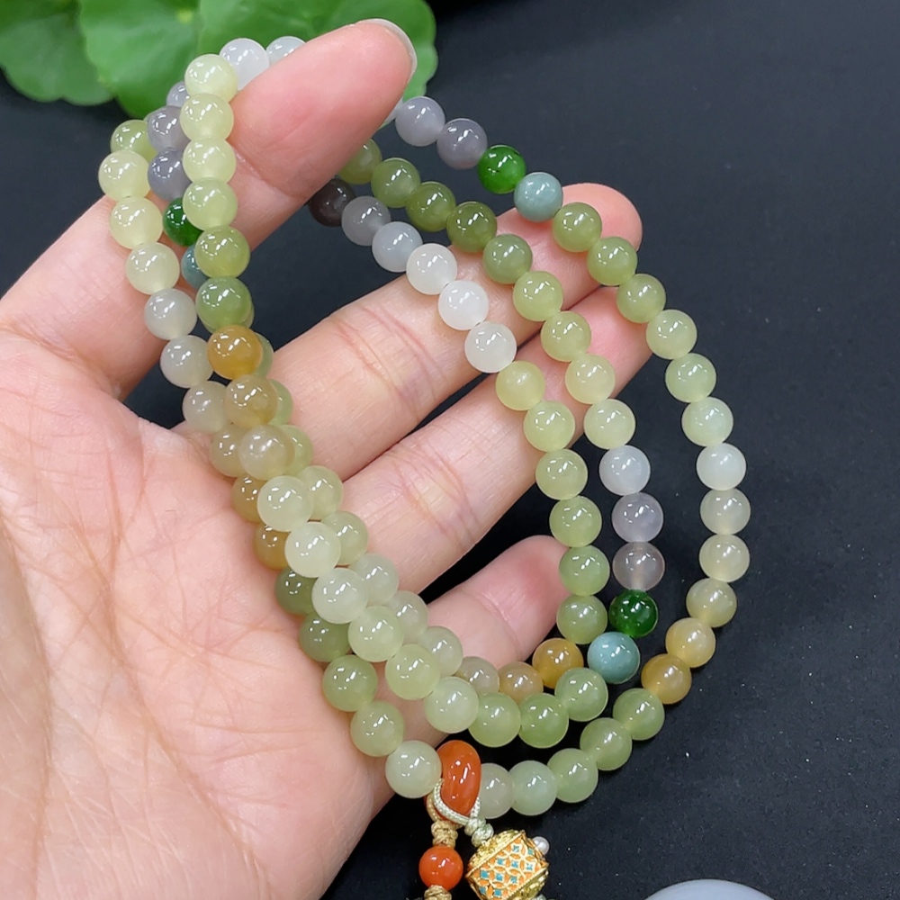 Hetian Jade Bead Necklace, Approx. 5.8mm, Non-Gold, Total Weight Approx. 51.7g, Non-Hetian Jade Matching Beads