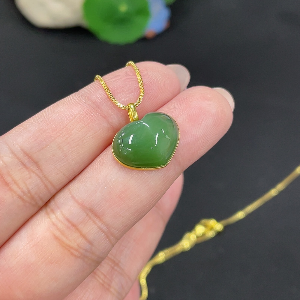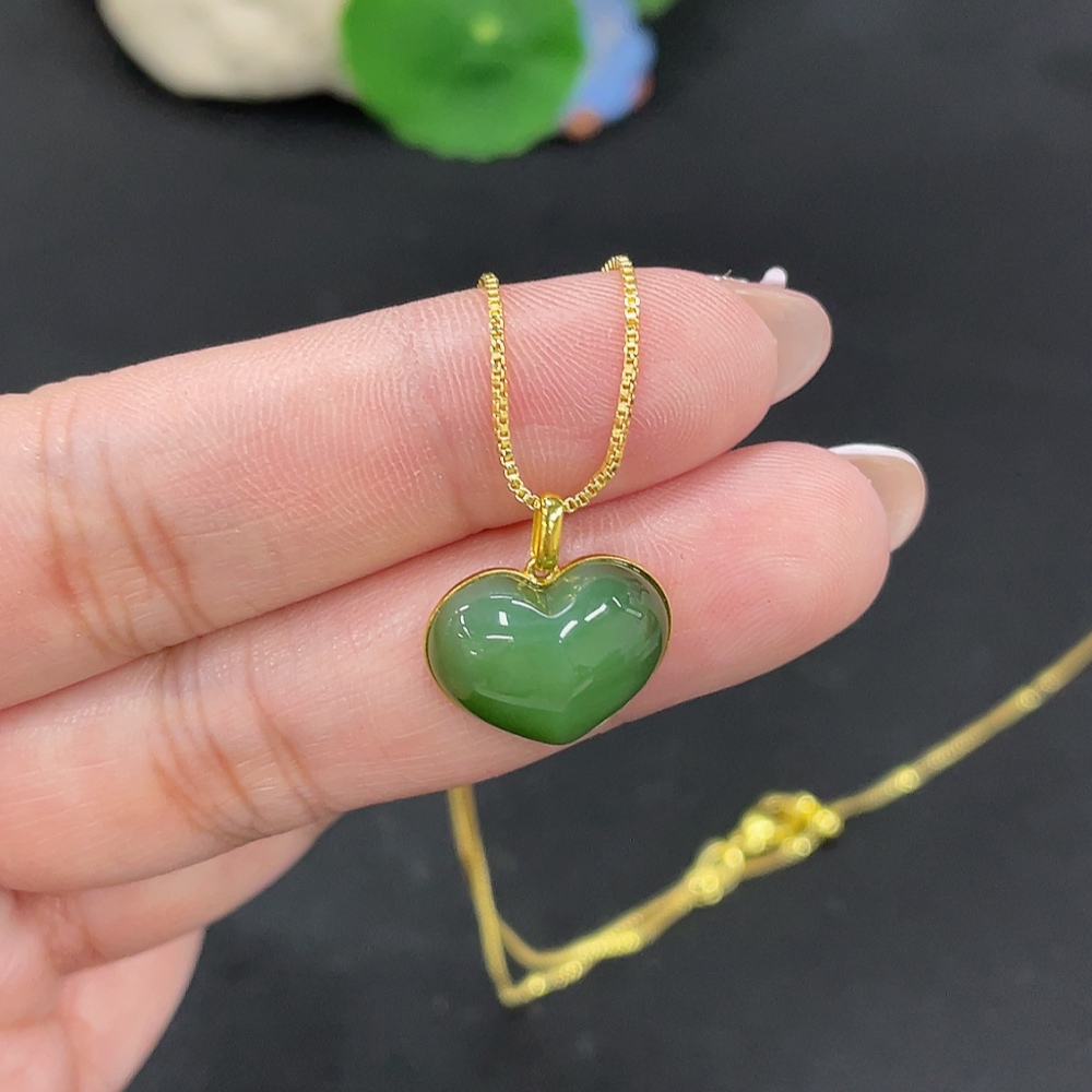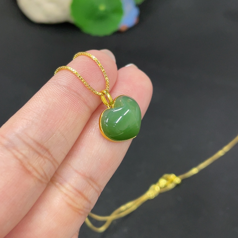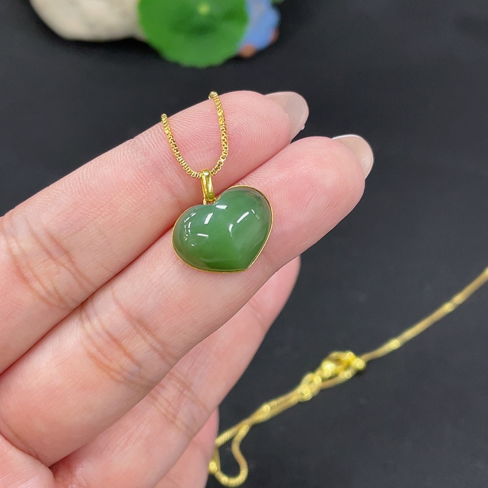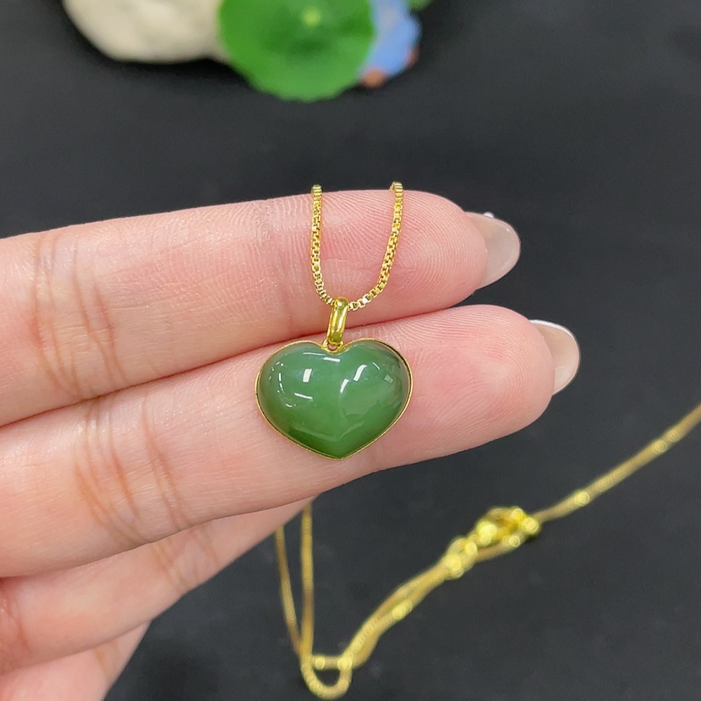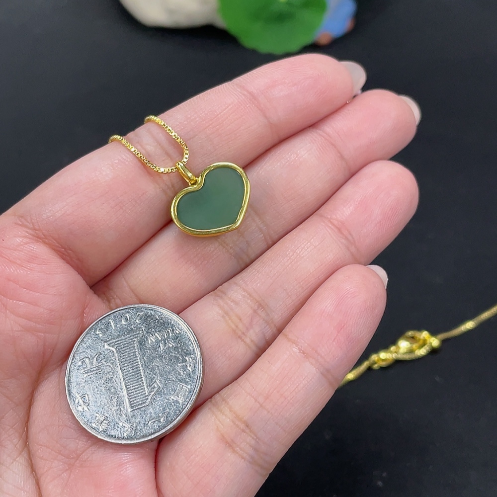 Hetian Jade Inlaid Heart 18k Gold Total Weight Approx. (Chain Excluded) 2g