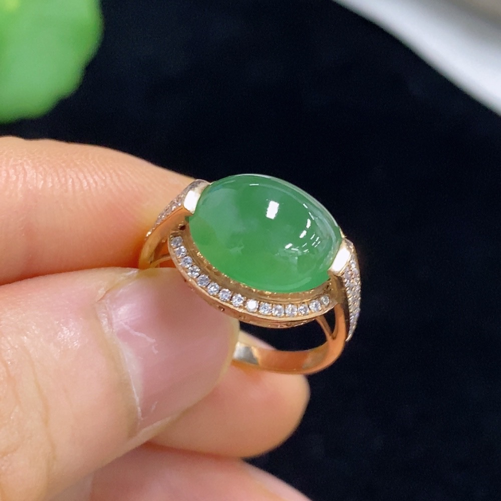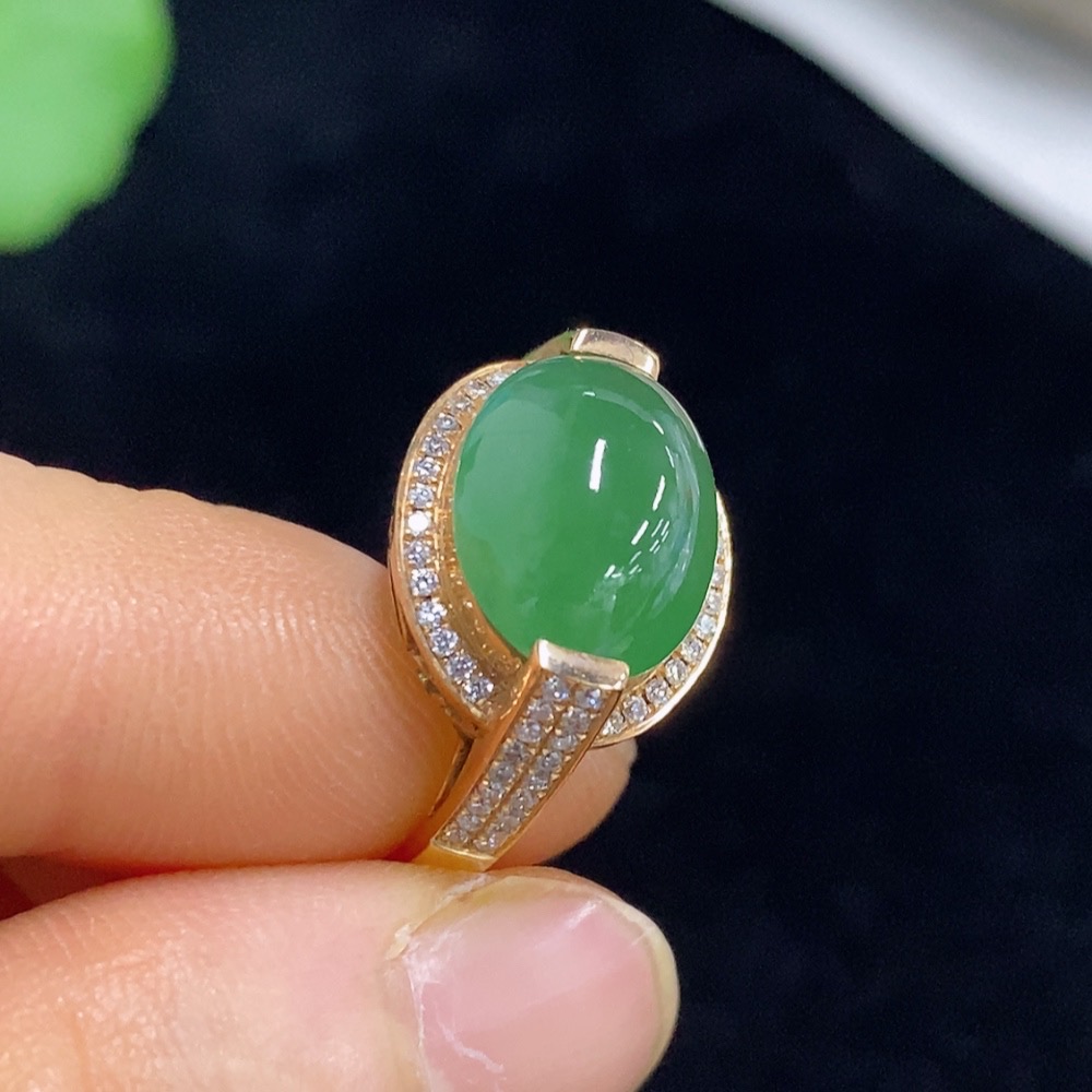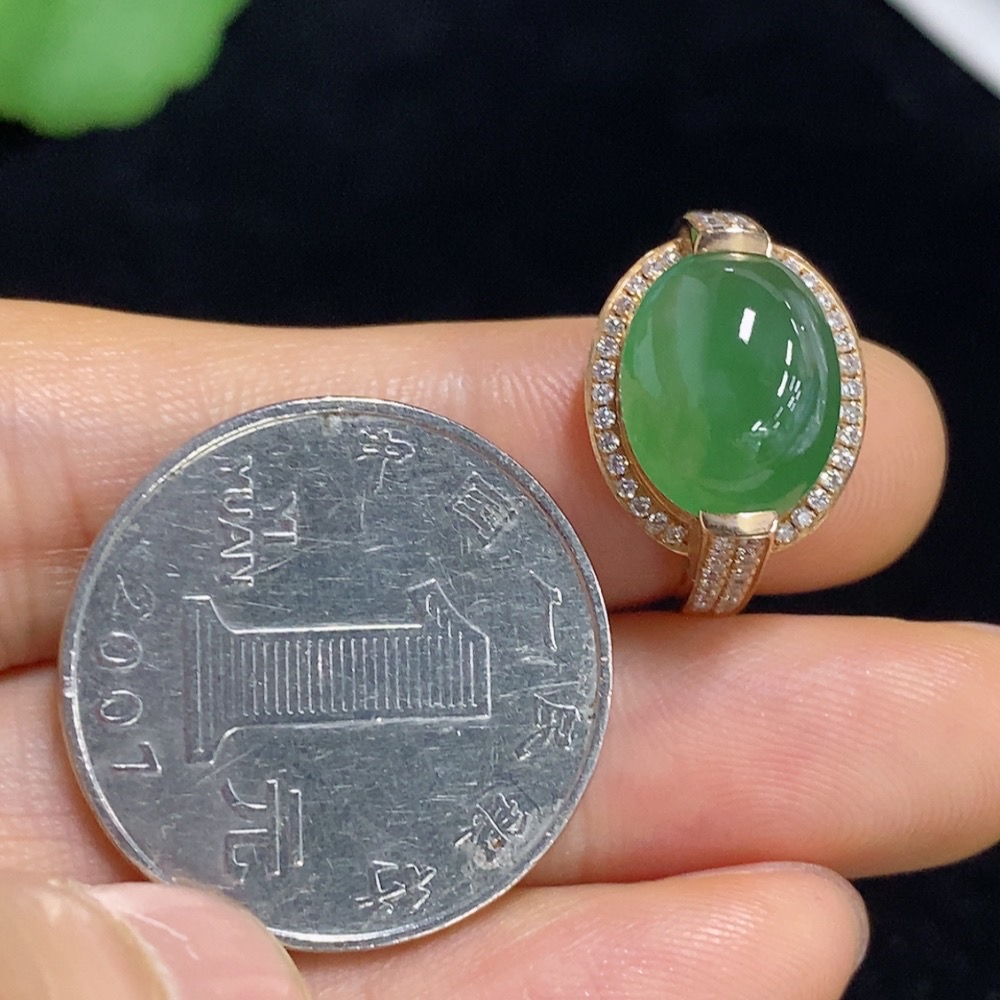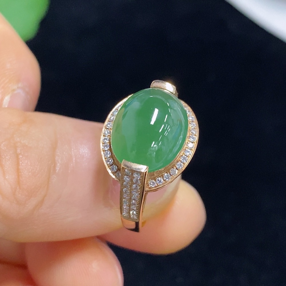 Jadeite Inlaid Ring 18k with Diamond Accents Size 13 Total Weight Approx. 4.45g