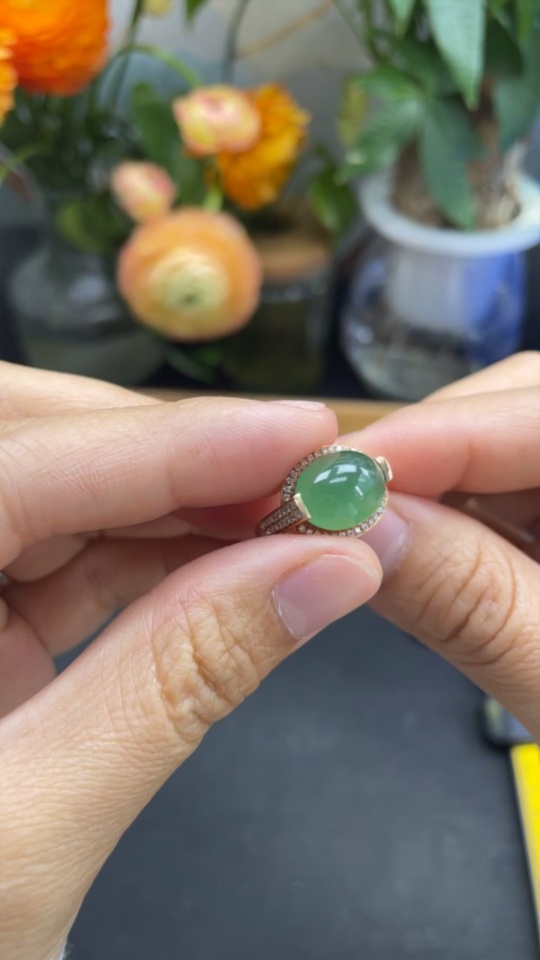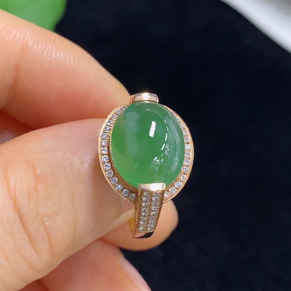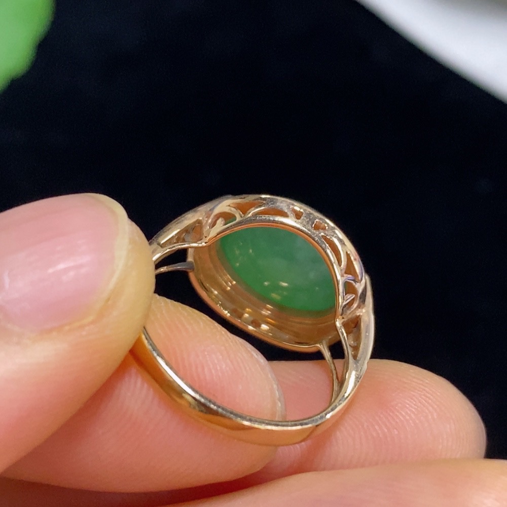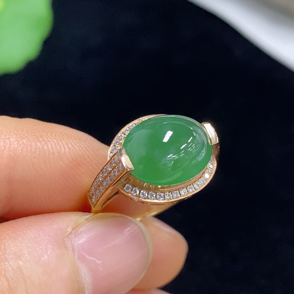 Jadeite Inlaid Ring 18k with Diamond Accents Size 13 Total Weight Approx. 4.45g