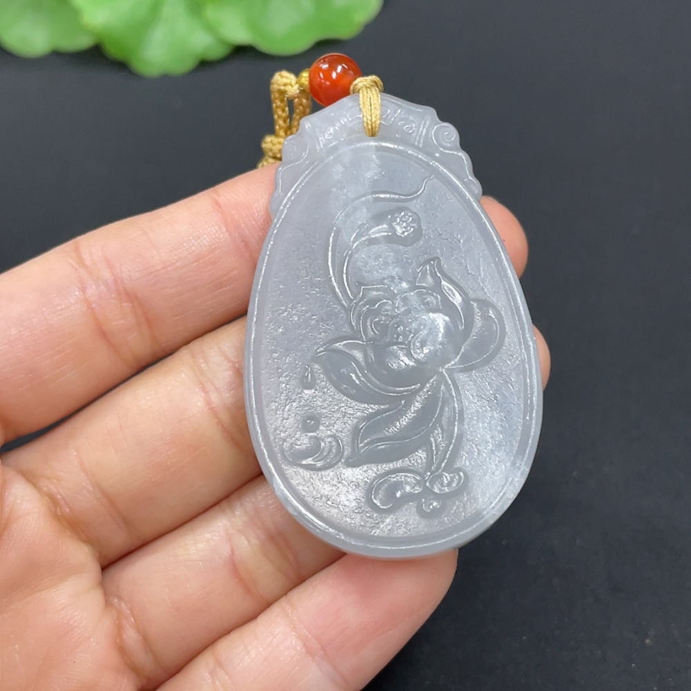 Hetian Jade Pendant Lotus Total Weight (with rope) Approx. 24.2g Matching Beads Not Hetian Jade