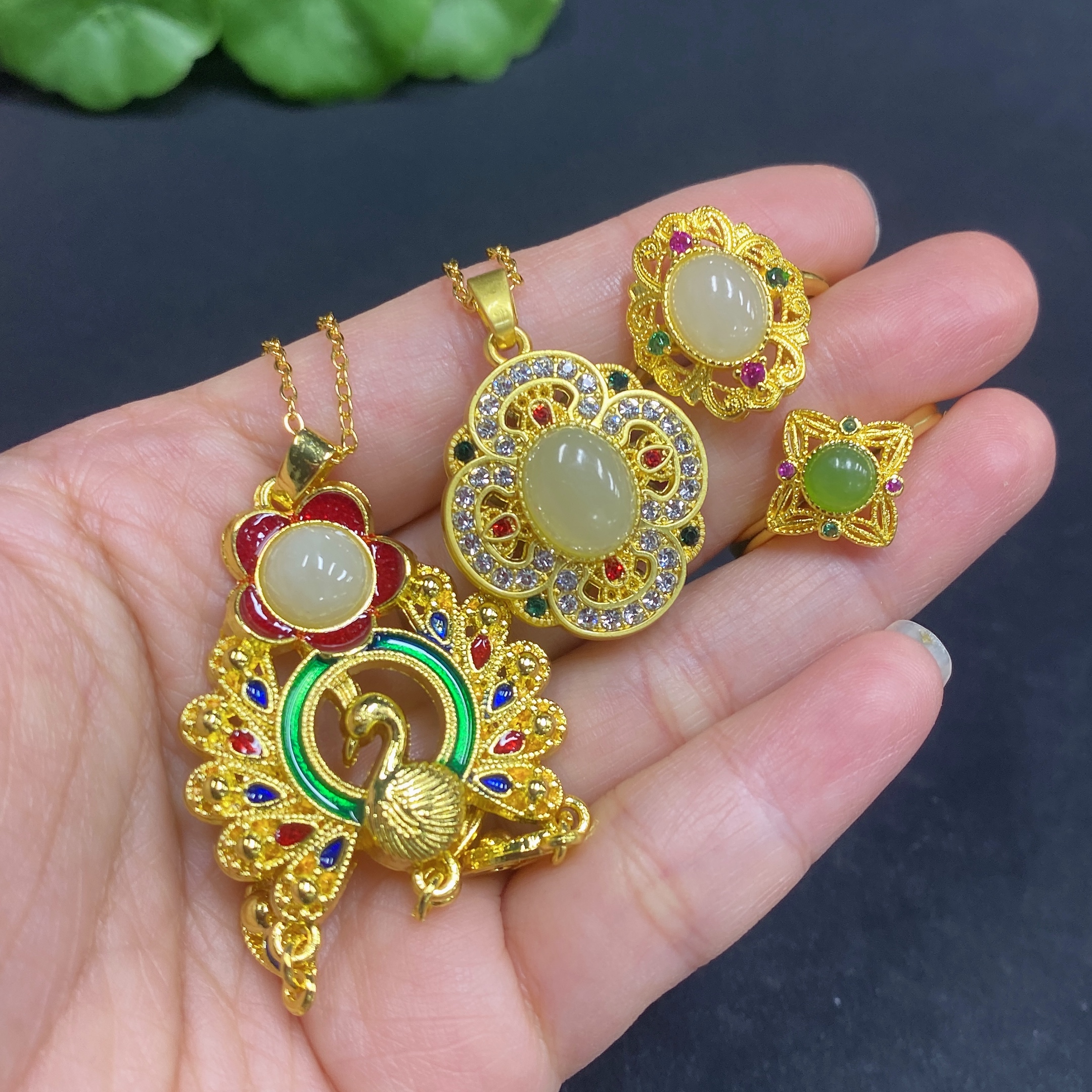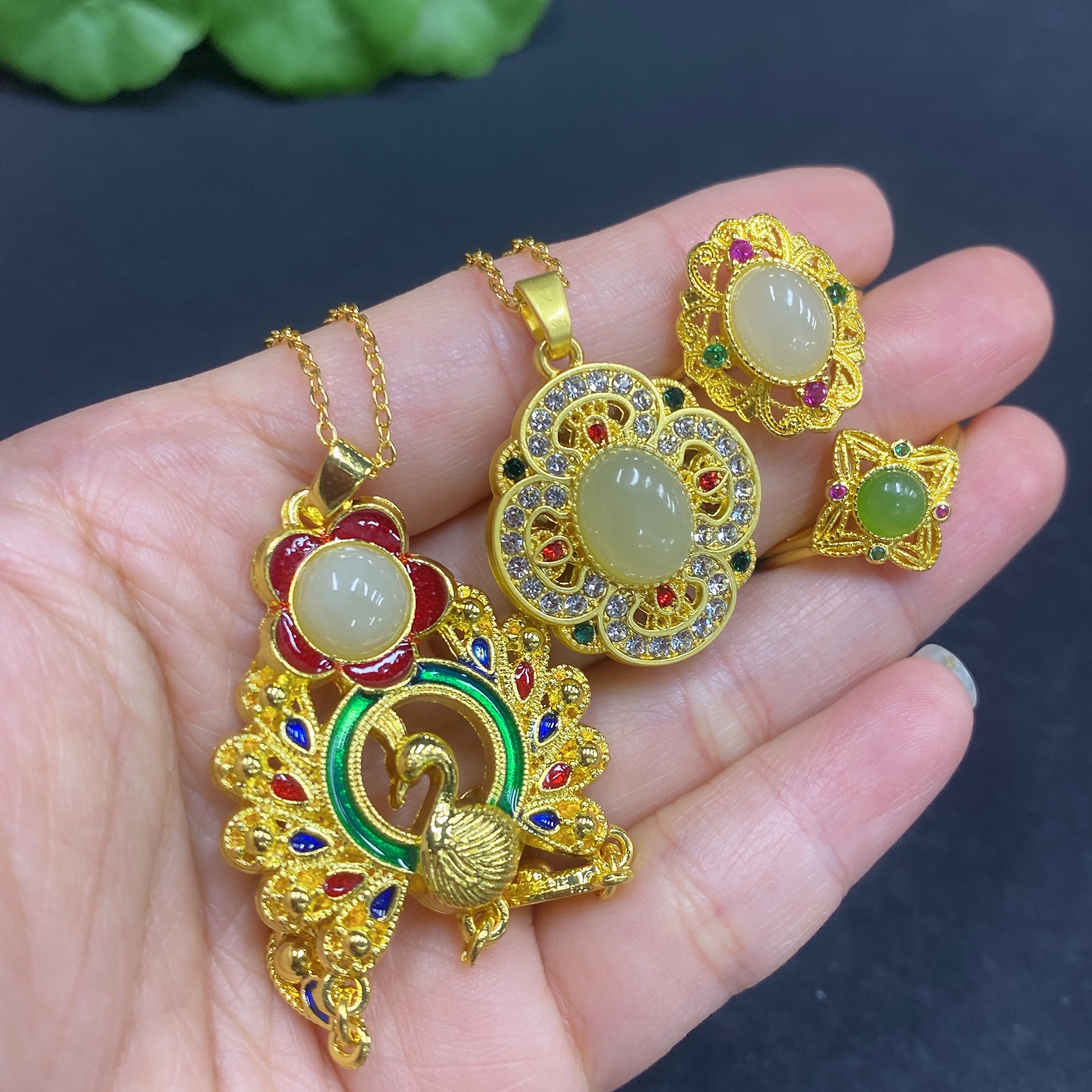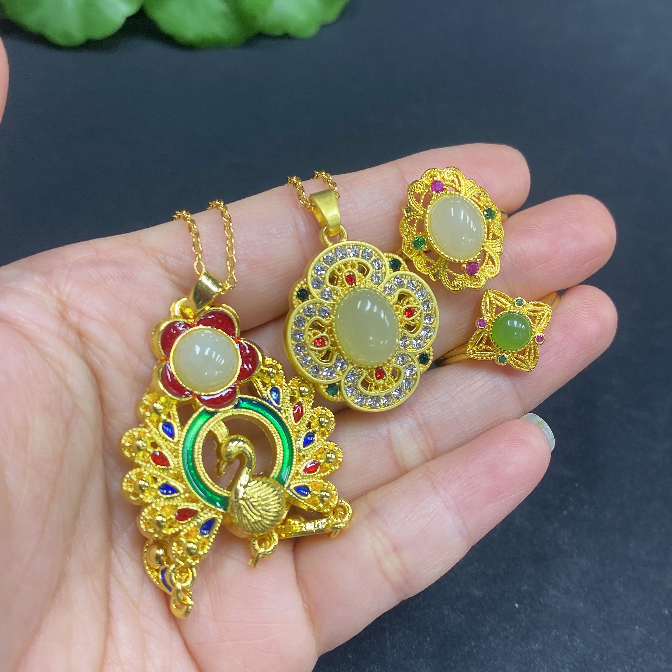 Hetian Jade Inlaid Pendant with Adjustable Ring, Non-Gold Inlay, Non-Gold Chain, Total Weight Approx. 21.5g (Including Chain)