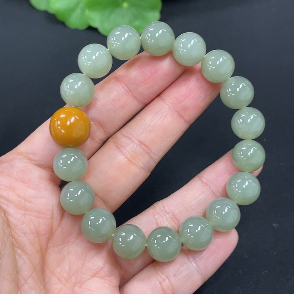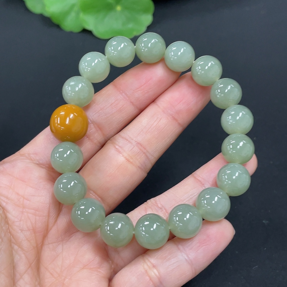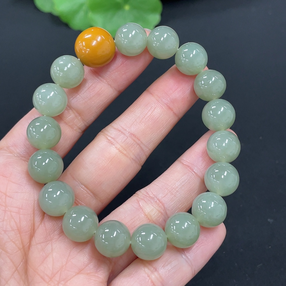 Hetian Jade Bracelet, approx. 9.9mm, total weight approx. 27.9g, with non-Hetian Jade beads