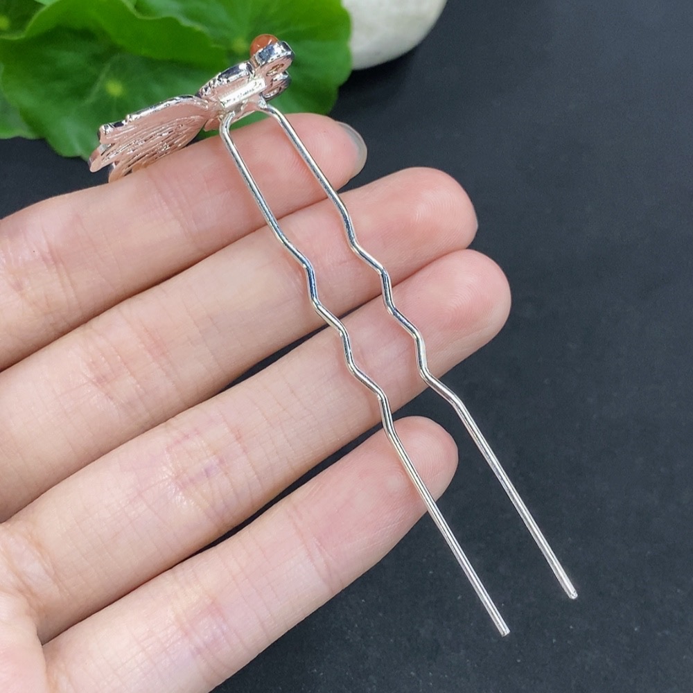 Jadeite cabochon inlaid hairpin, non-gold inlaid, total weight approx. 4.7g