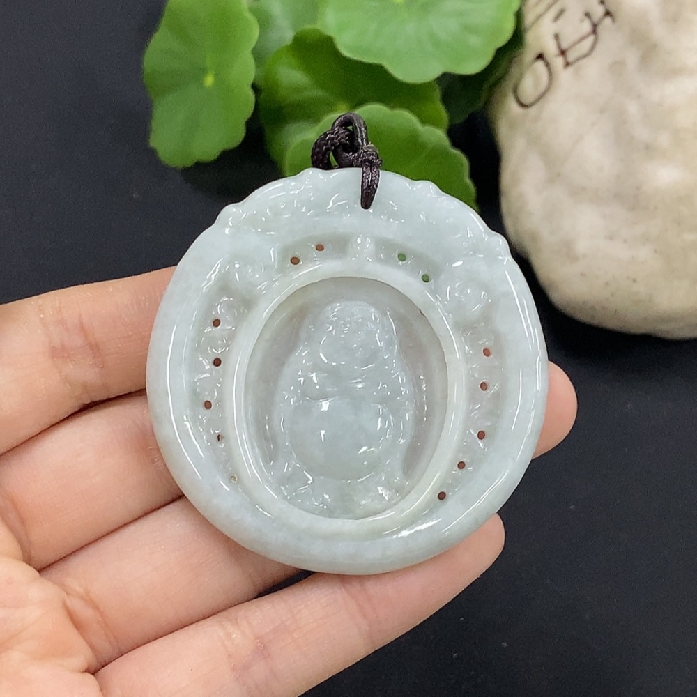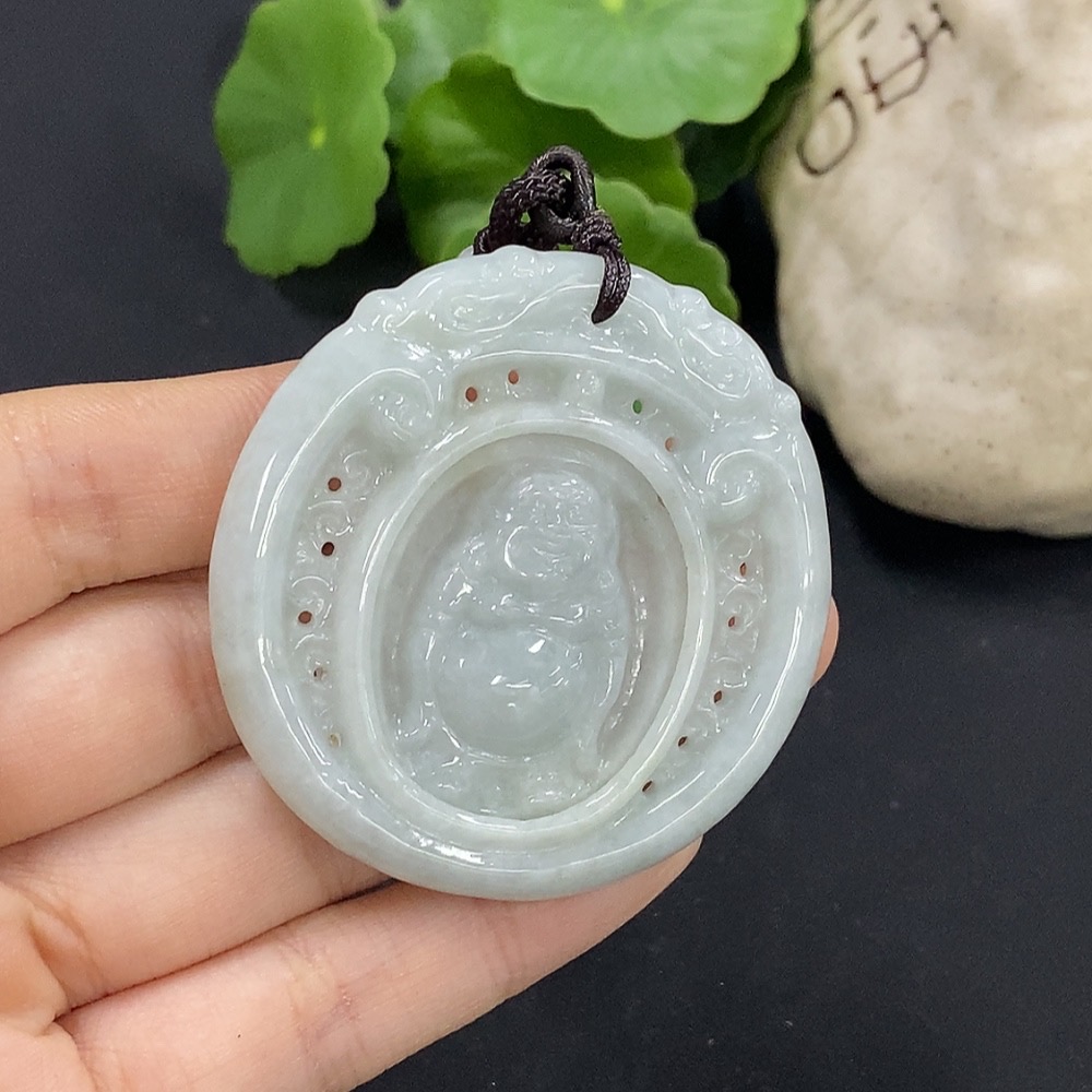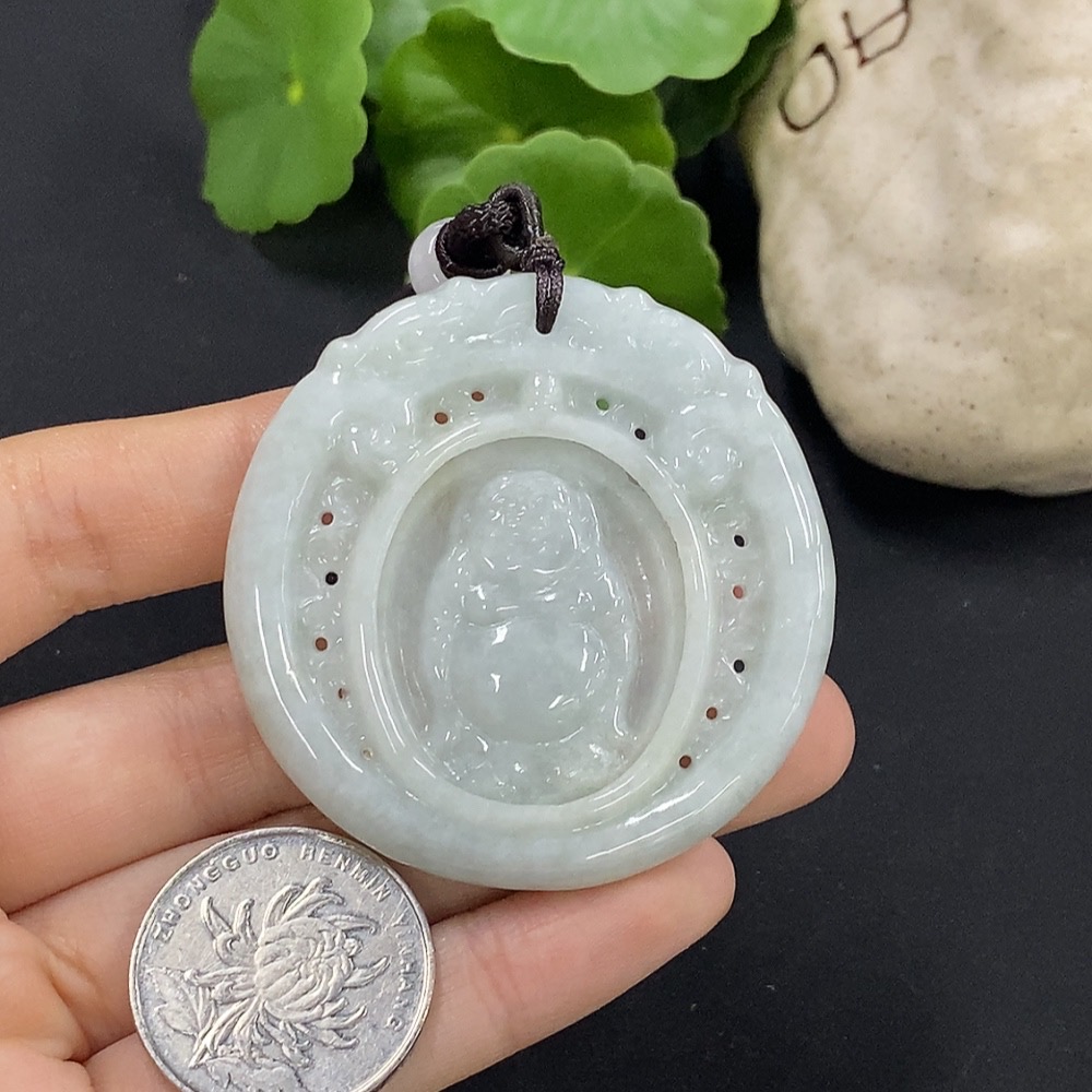 Jadeite Buddha Pendant with Non-Grade A Beads, Total Weight Approx. 29.7g