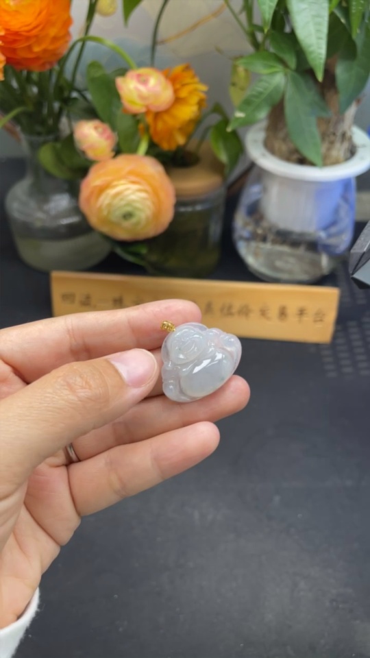 Jadeite Pendant Buddha 18k Total Weight Approx. 6.33g