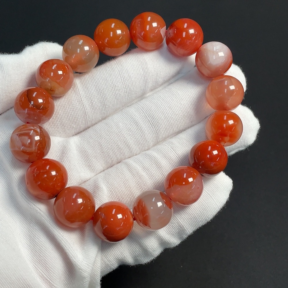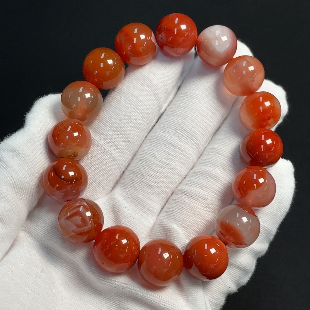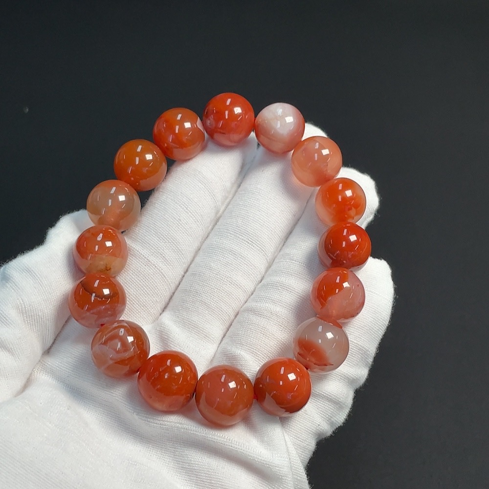 Red Agate Bracelet, approx. 13.6mm, total weight about 57.05g, organic matter visible