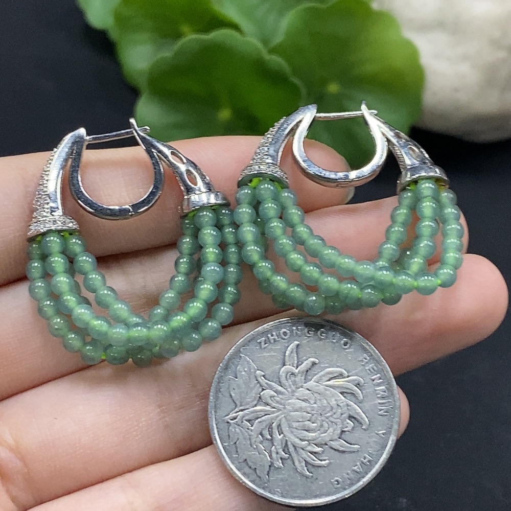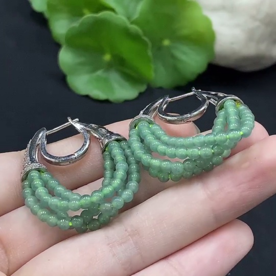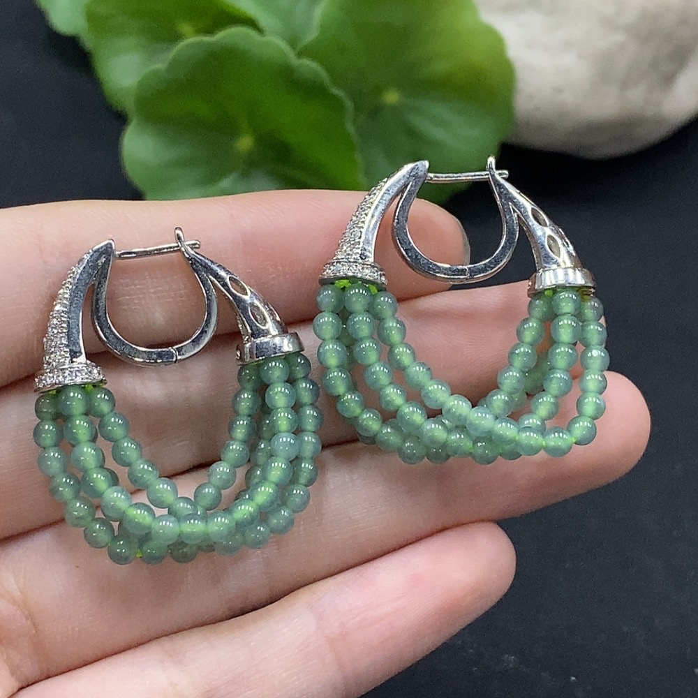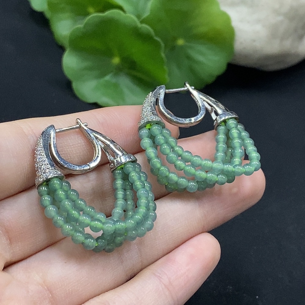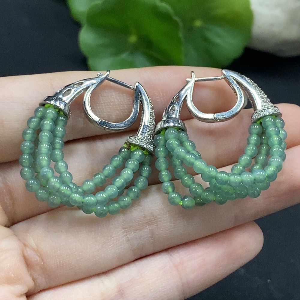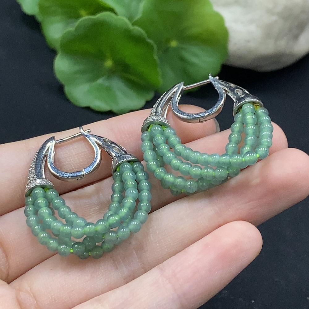 Jadeite Inlaid Earrings Non-Gold Inlaid Total Weight Approx.10.5g