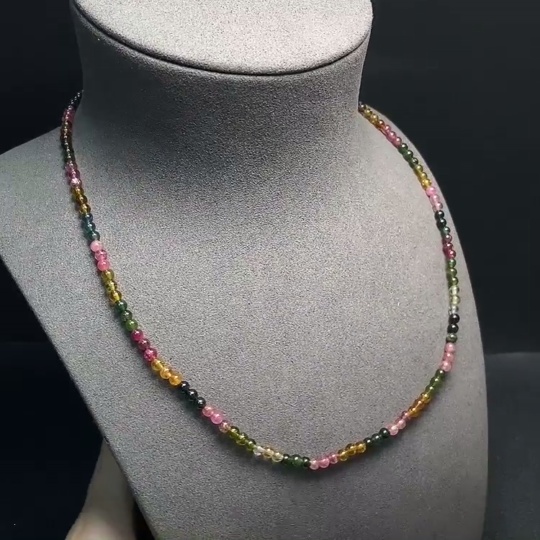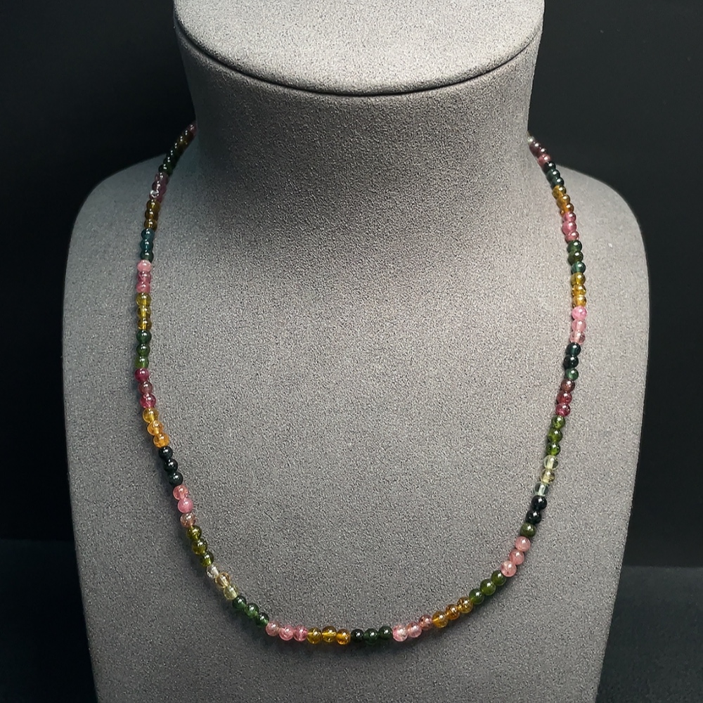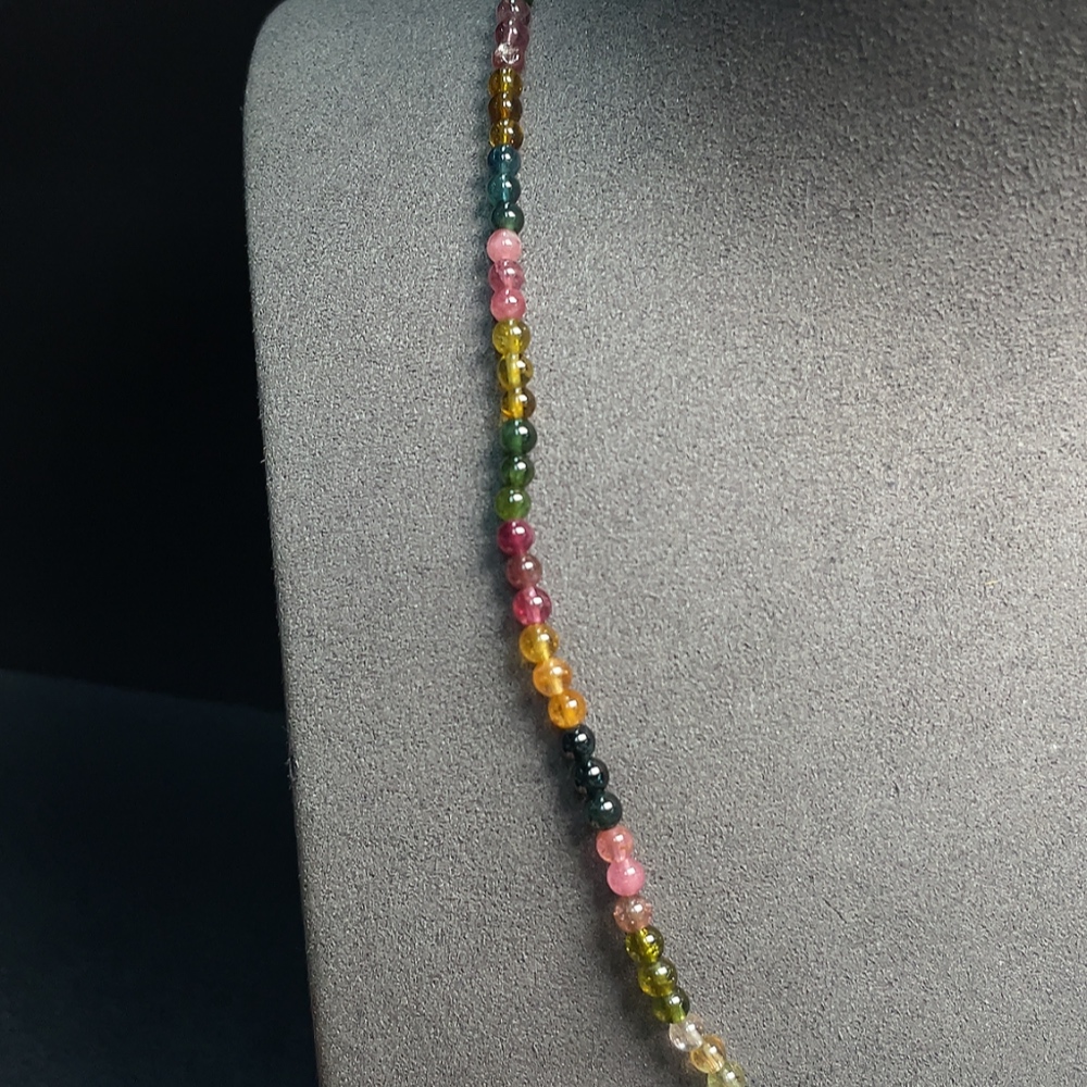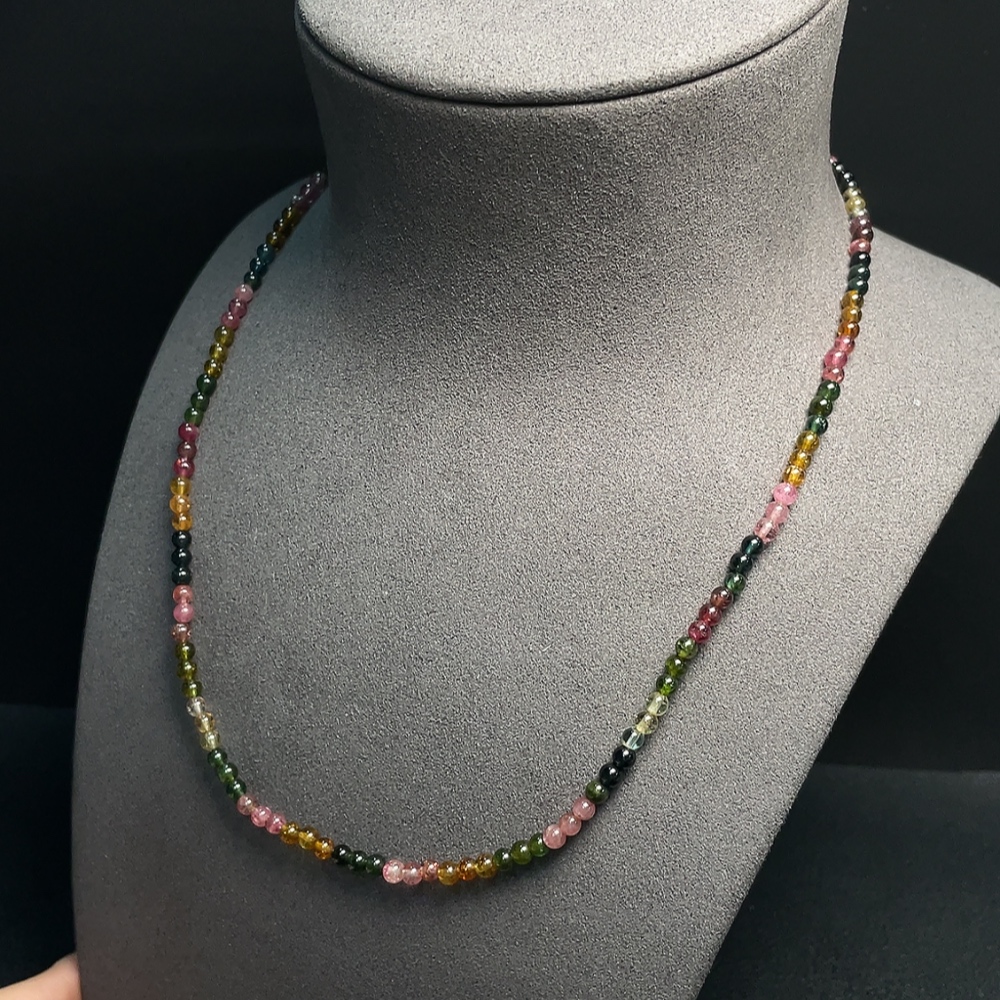 Tourmaline bead necklace, non-metal, visible organic matter, total weight approx. 13.25g, bead size approx. 4mm