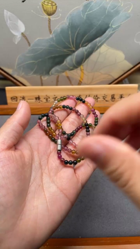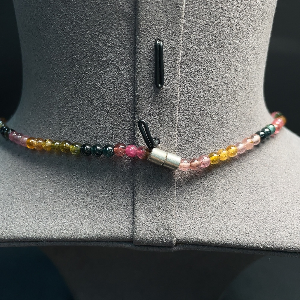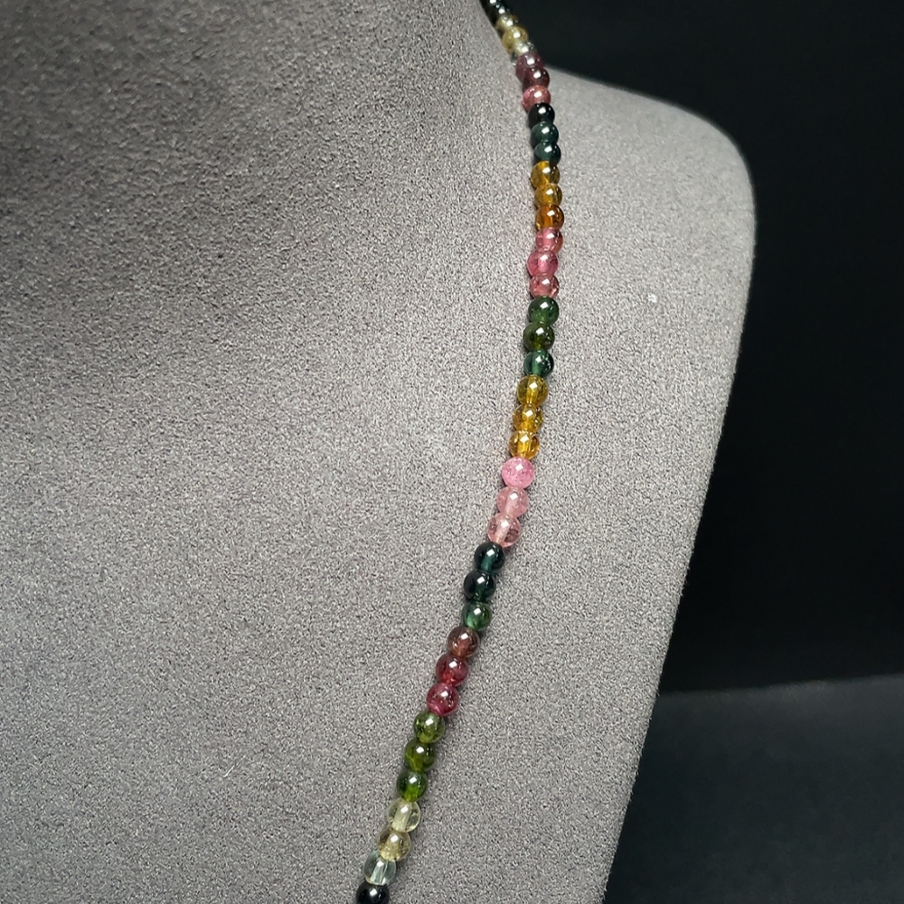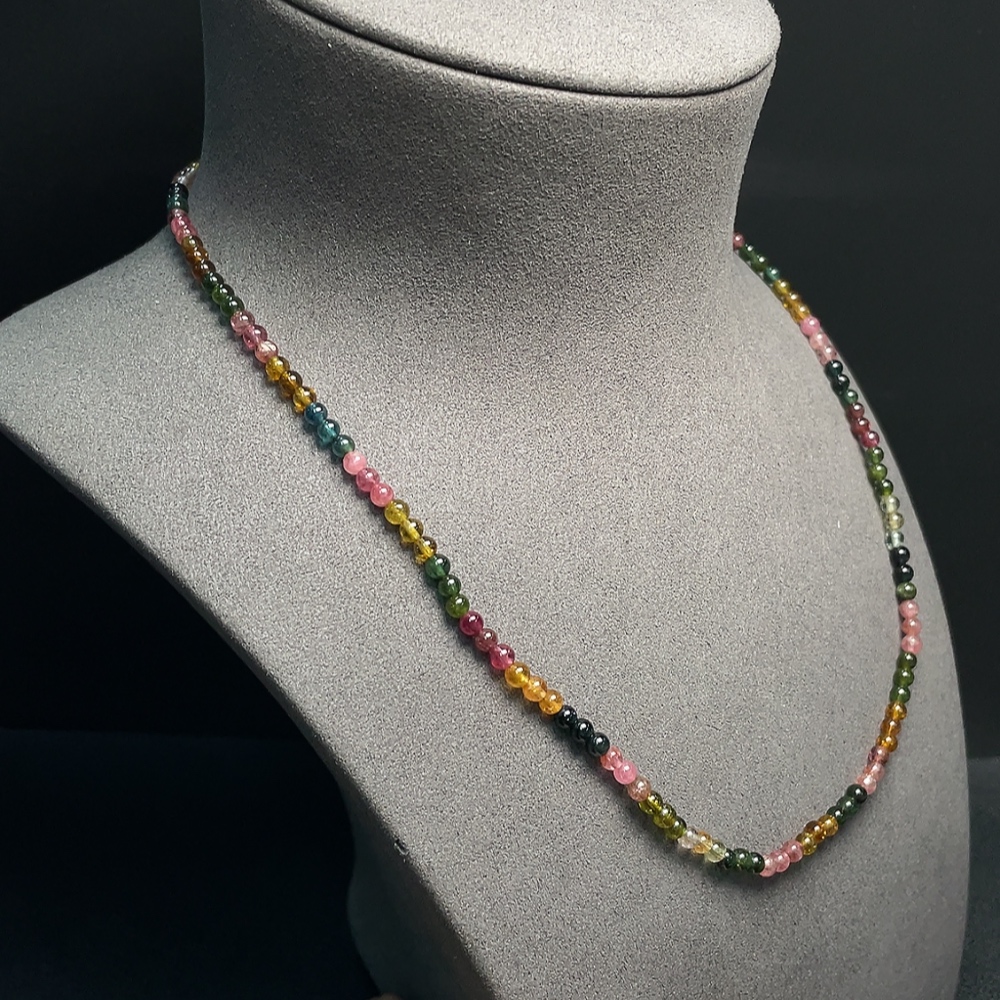 Tourmaline bead necklace, non-metal, visible organic matter, total weight approx. 13.25g, bead size approx. 4mm