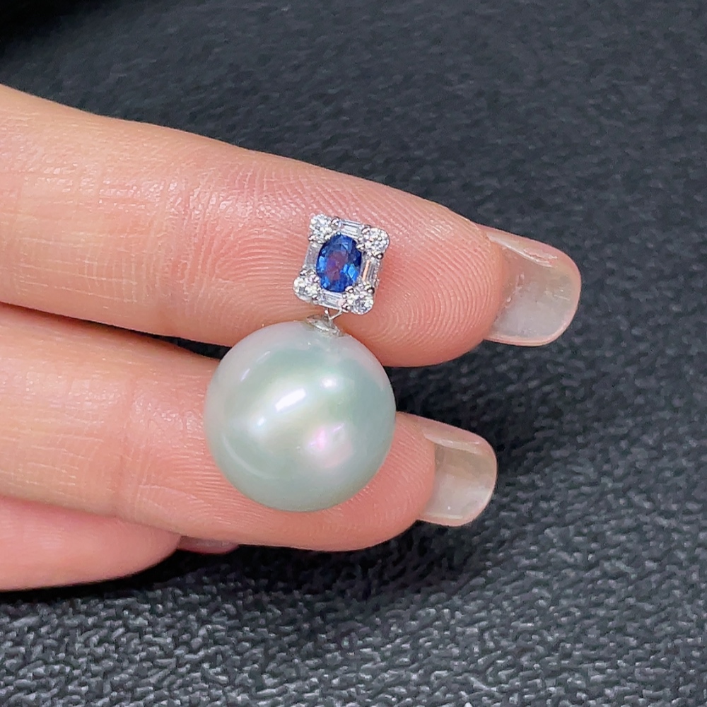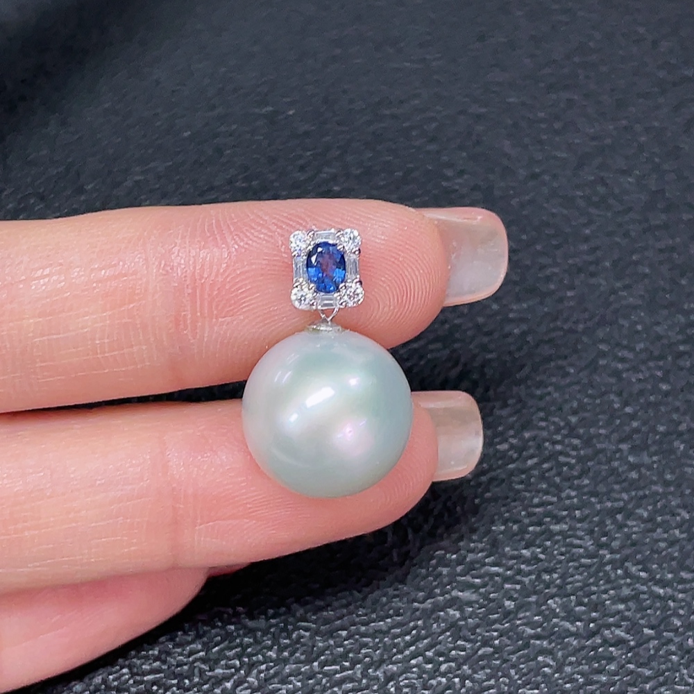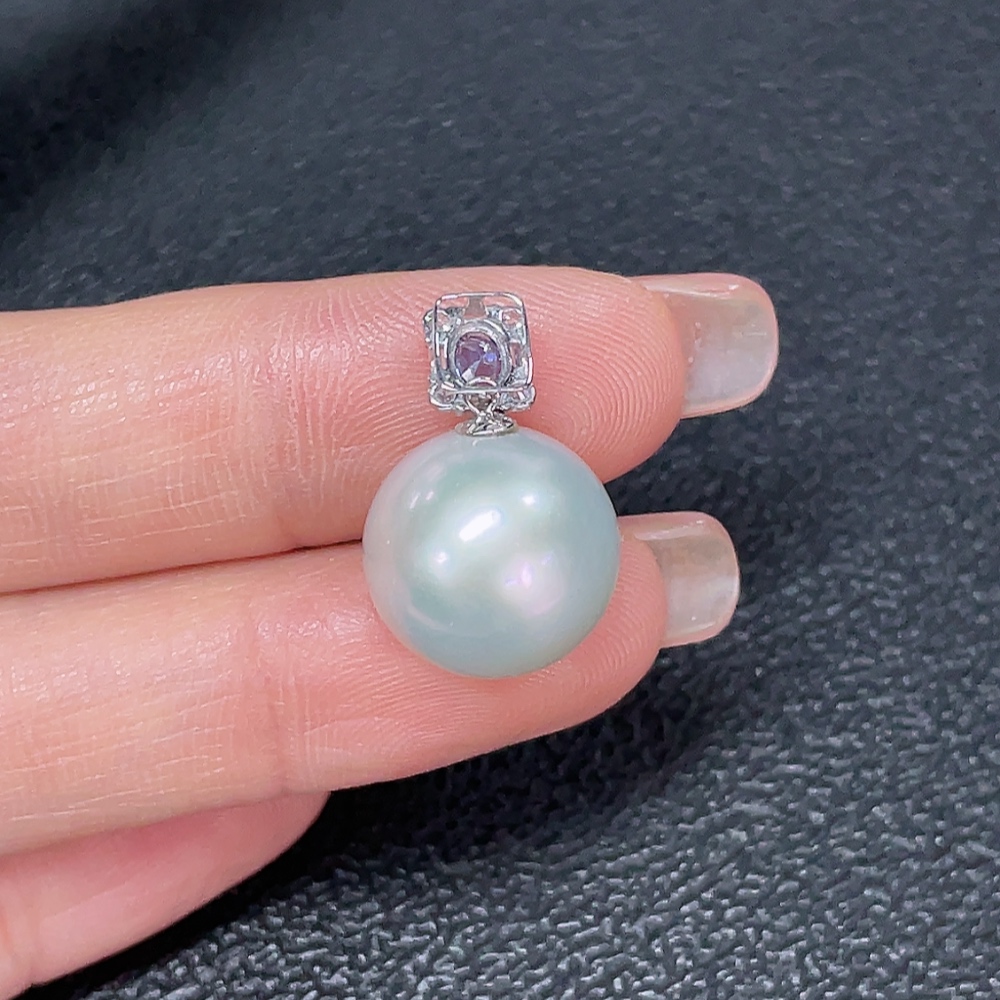 18K Pearl Pendant with Non-Natural, Non-Diamond Accent Stones, Total Weight Approx. 3.81g, Size Around 13.3mm