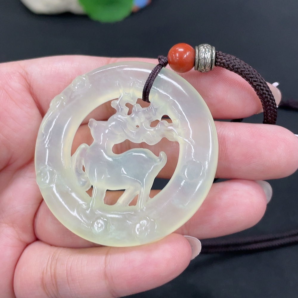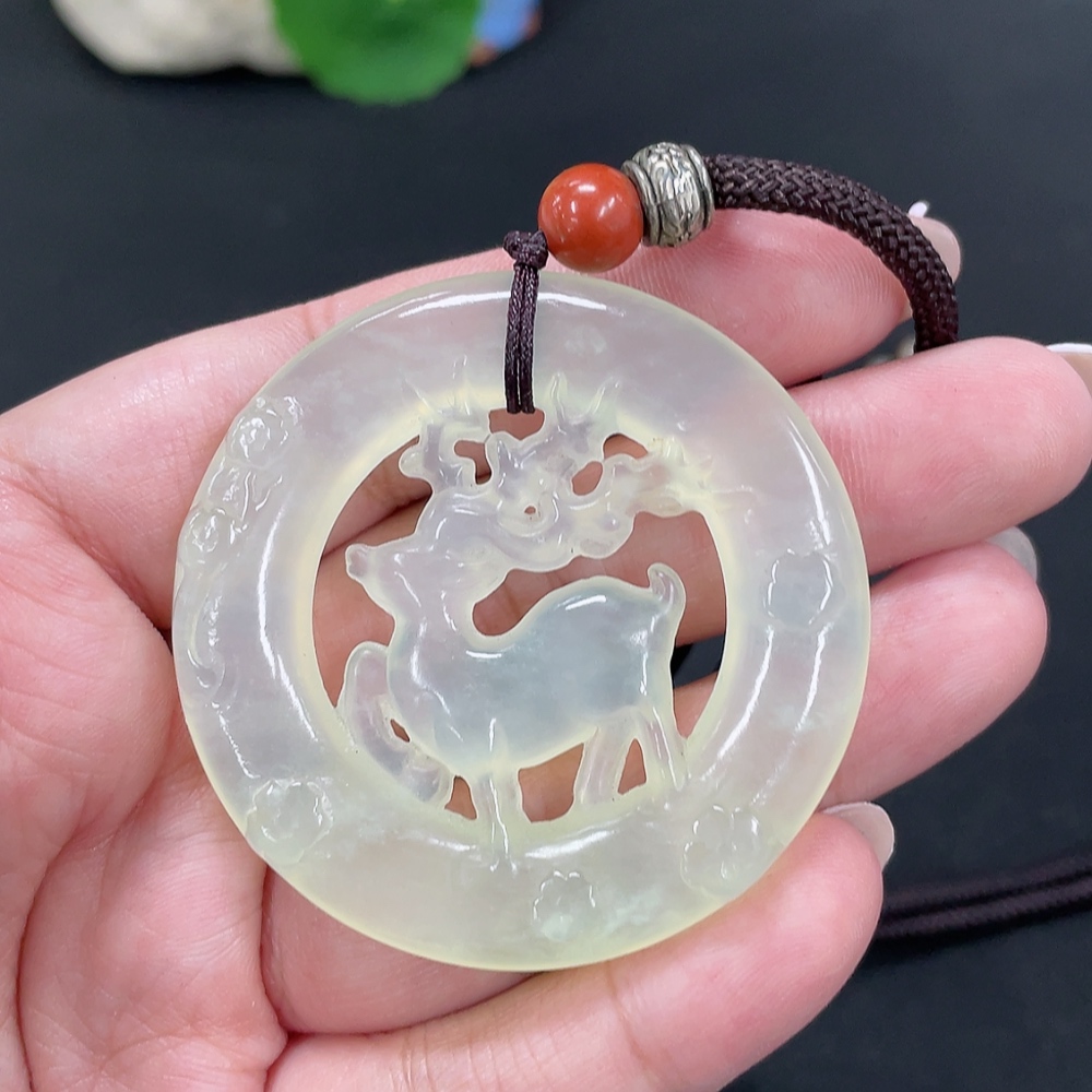 Xiuyu (Serpentine Jade) Pendant Sheep Plaque