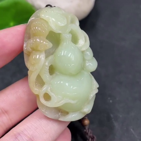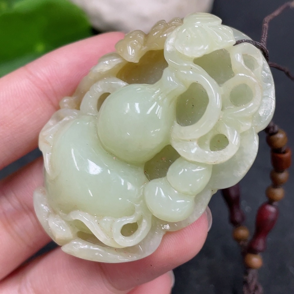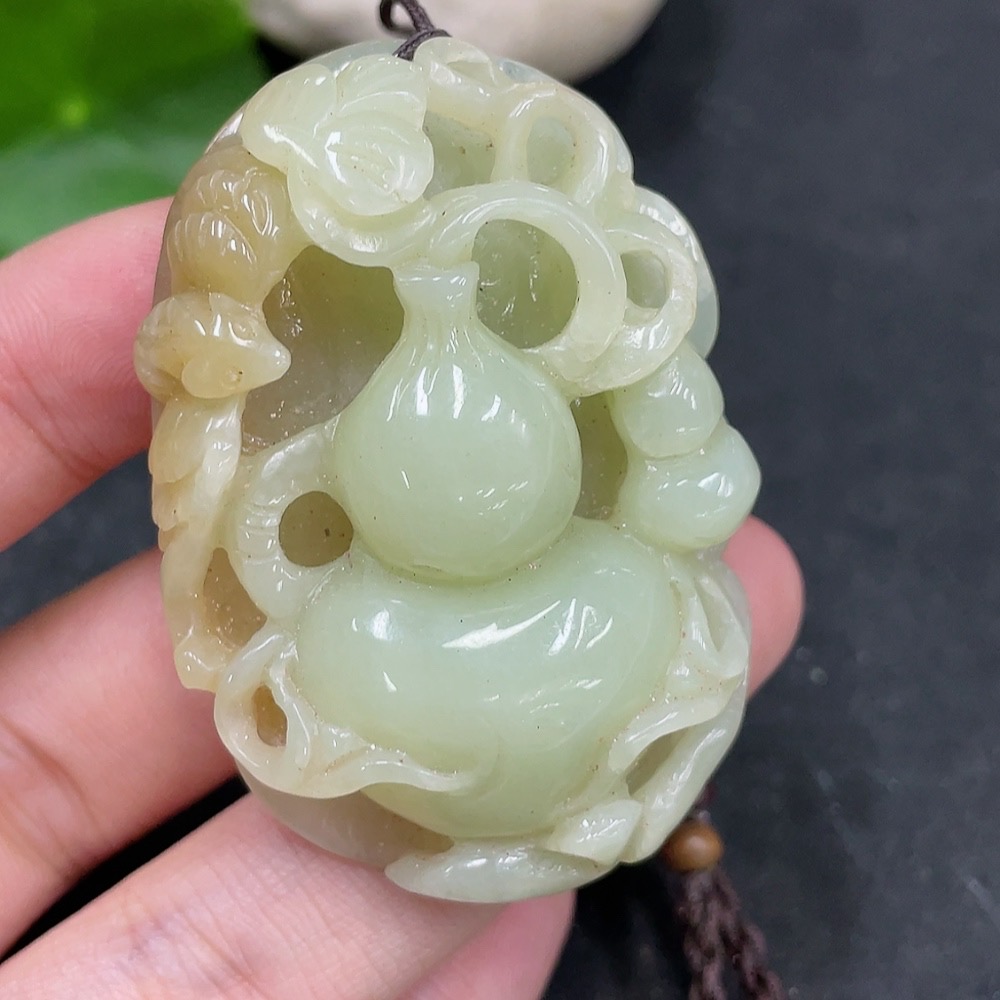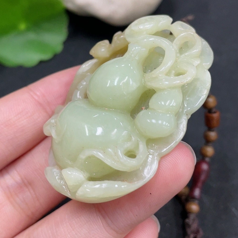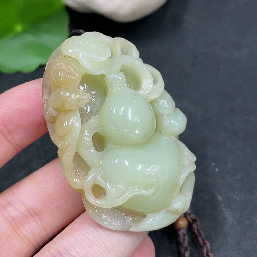 Hetian Jade Pendant Gourd Total Weight (with rope) 35.6g
