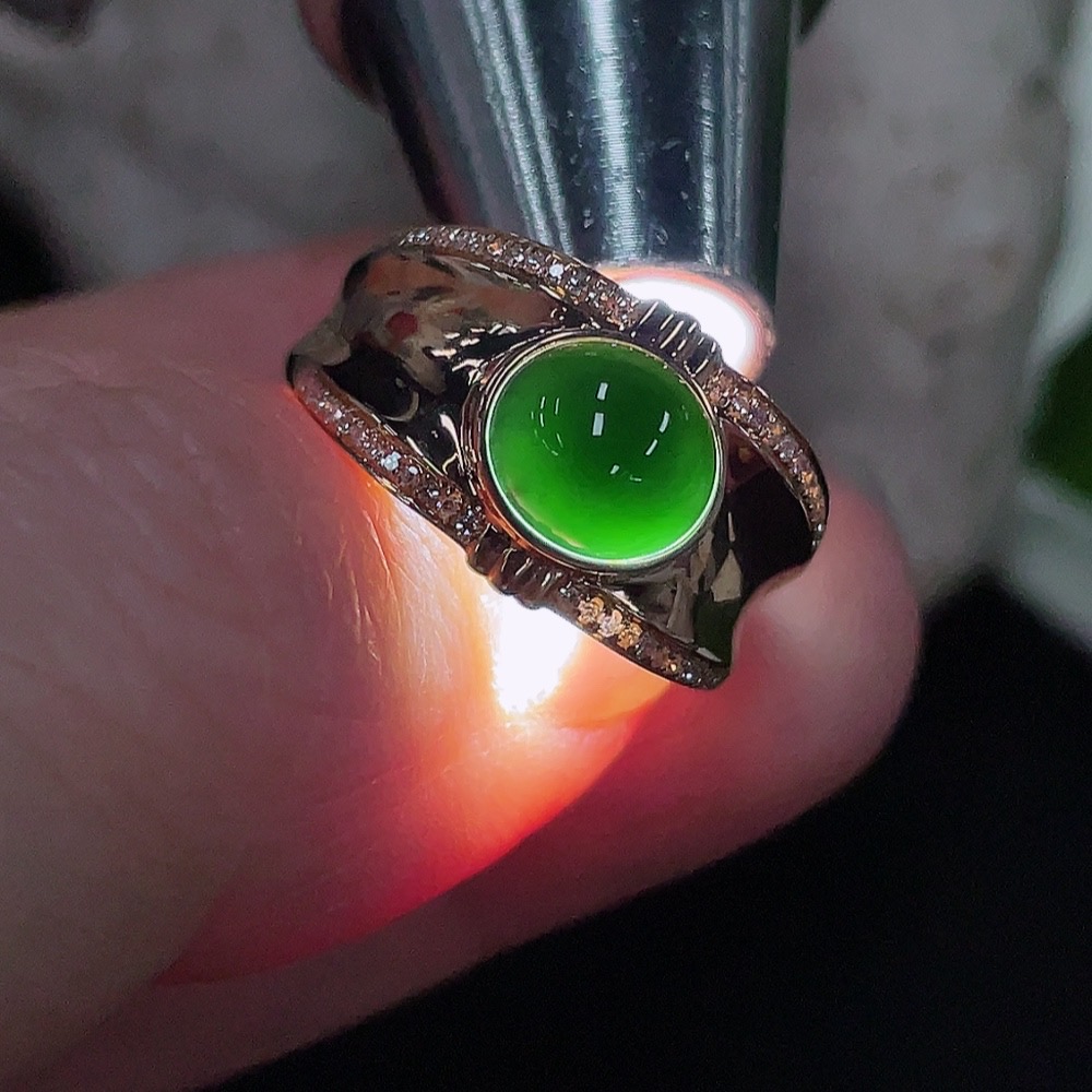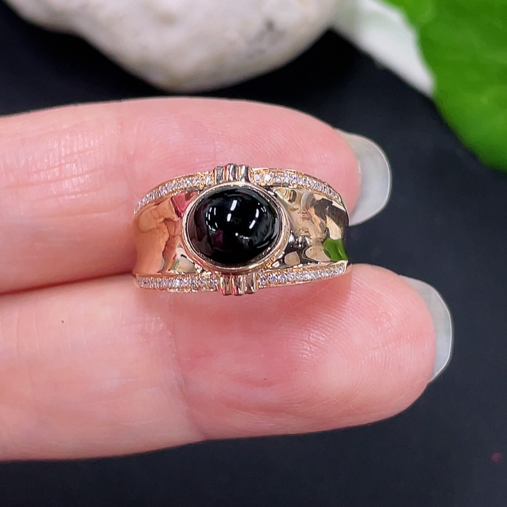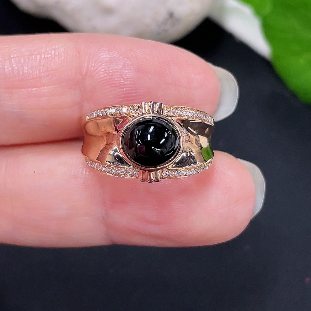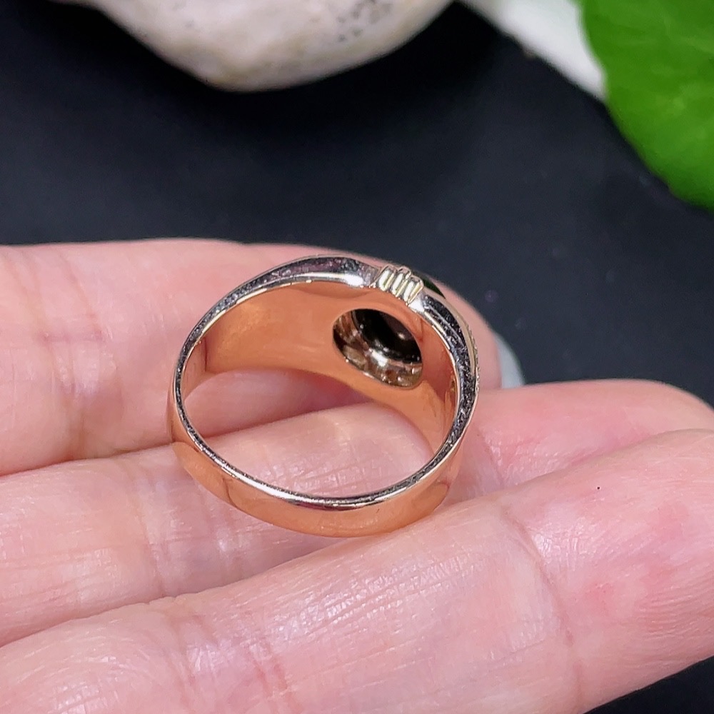 Jadeite Cabochon Ring with 18K Gold and Diamond Accents, Size 13, Total Weight Approx. 3.65g