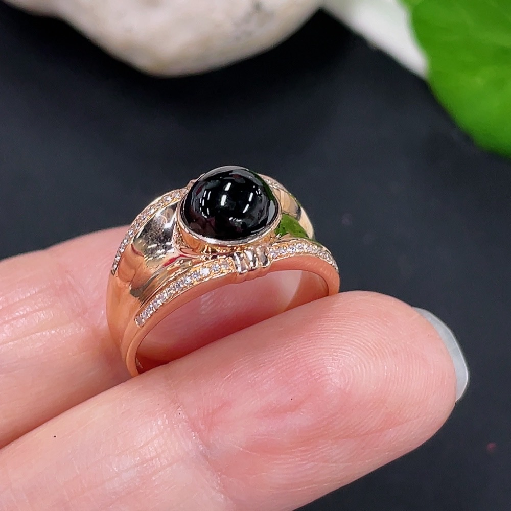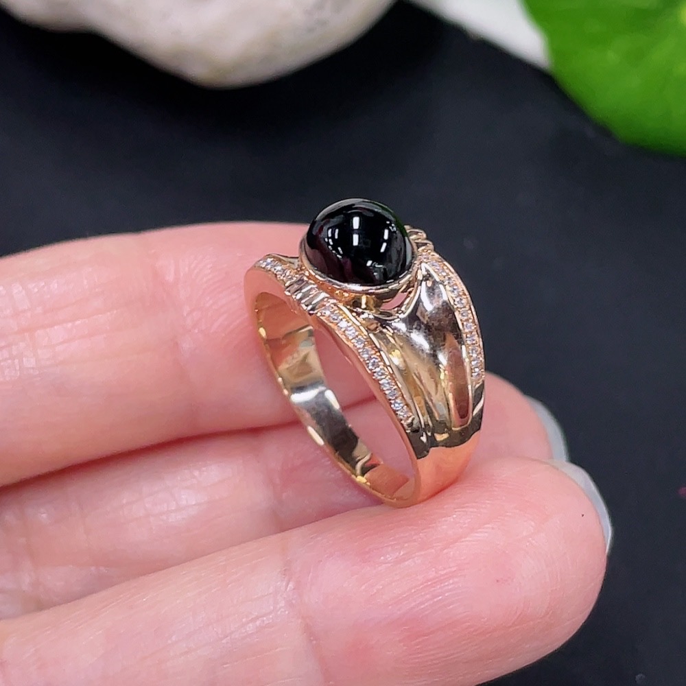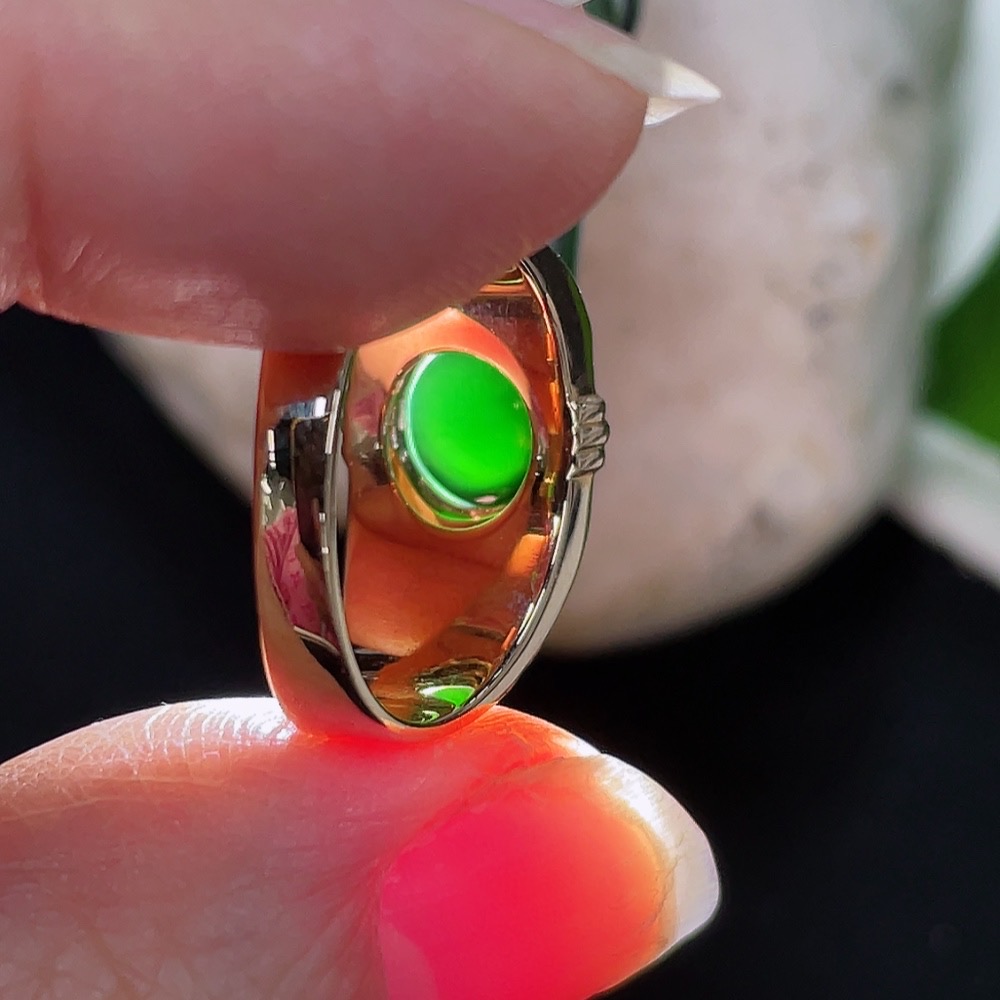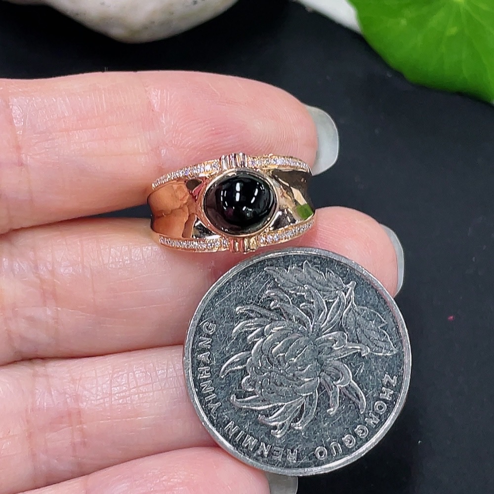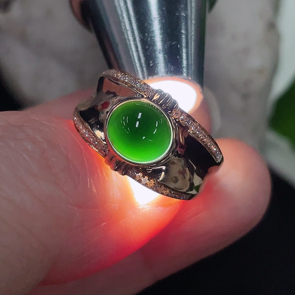 Jadeite Cabochon Ring with 18K Gold and Diamond Accents, Size 13, Total Weight Approx. 3.65g