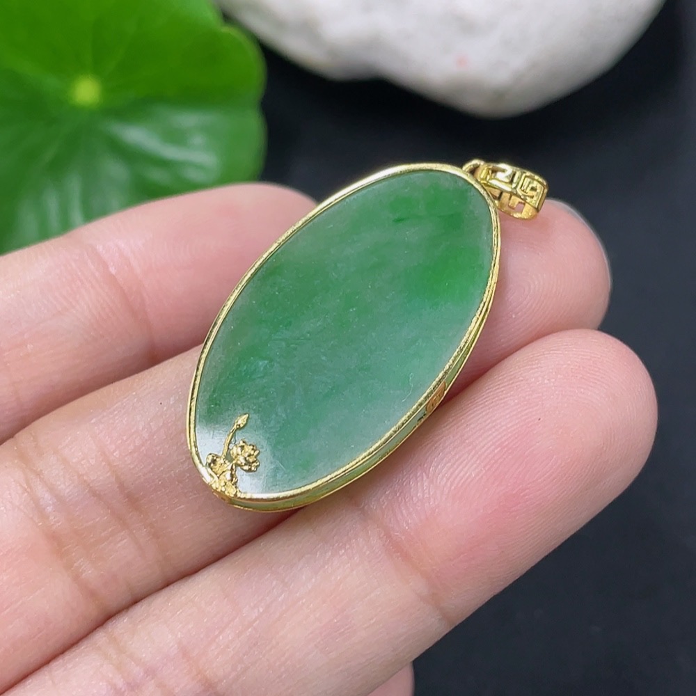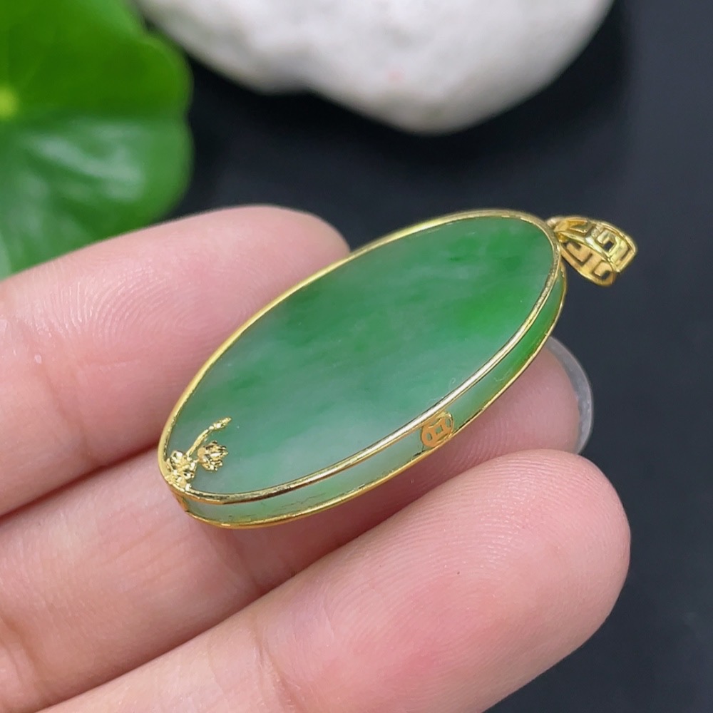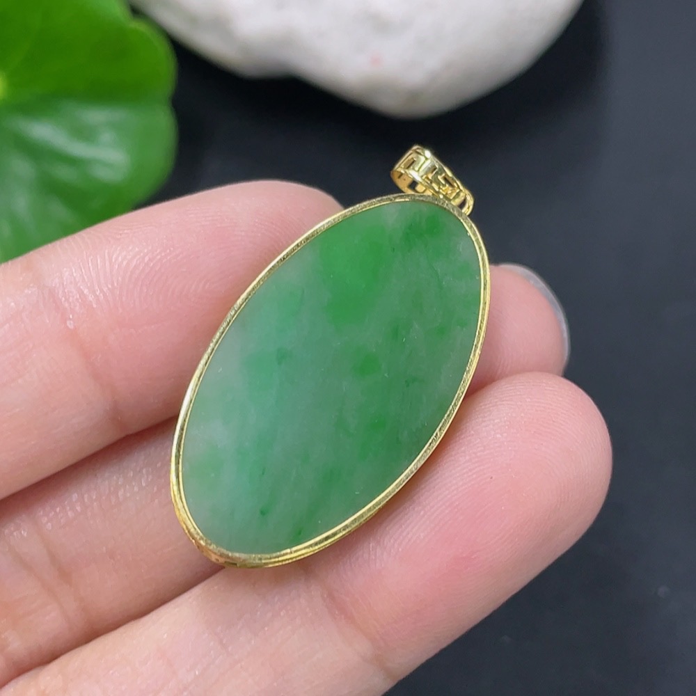 Jadeite Plain Pendant with 18K Gold, Total Weight Approx. 3.1g