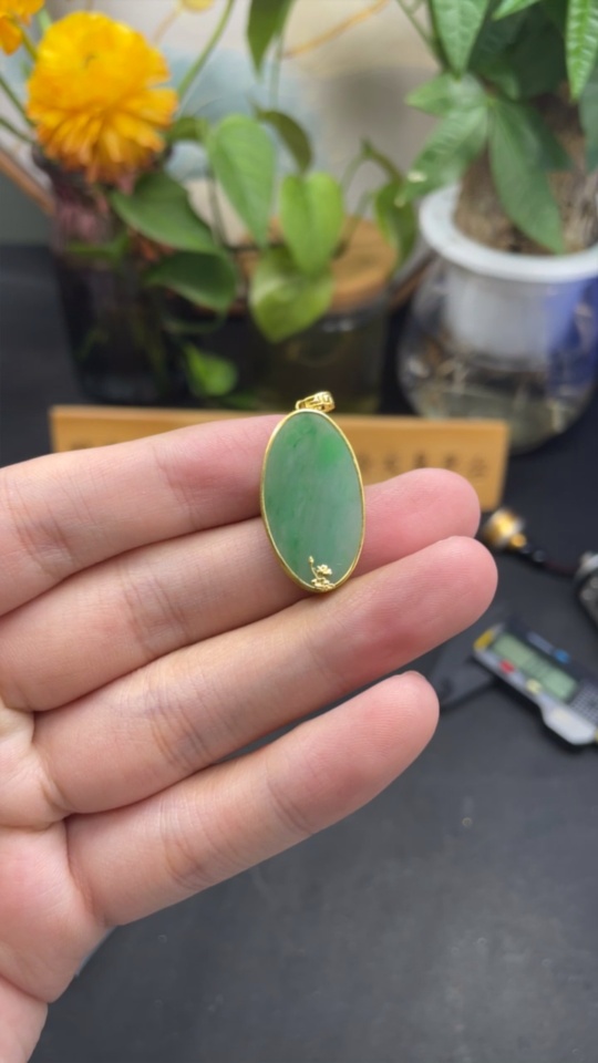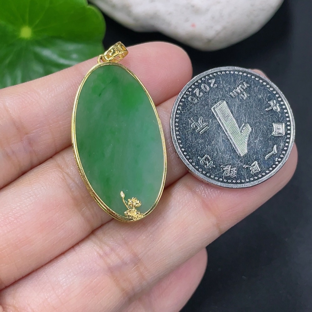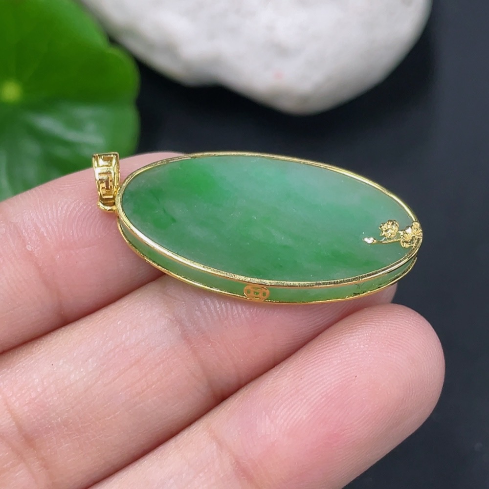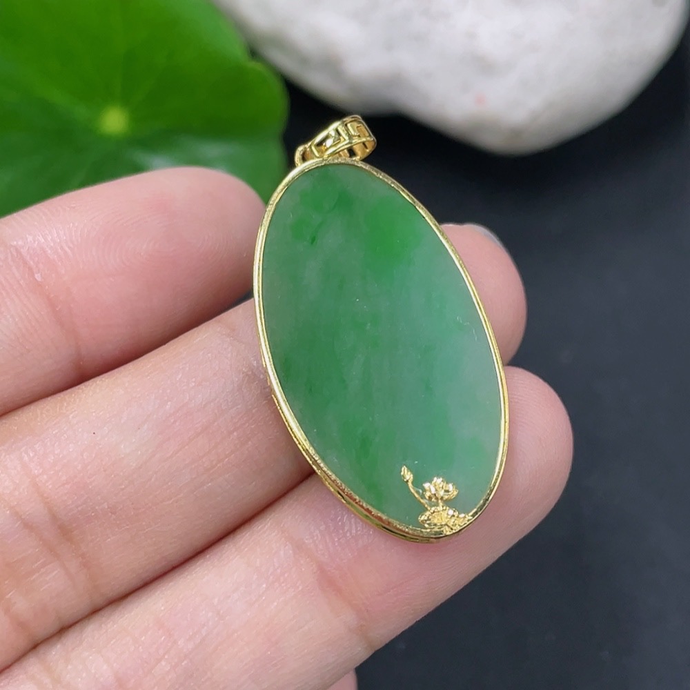 Jadeite Plain Pendant with 18K Gold, Total Weight Approx. 3.1g