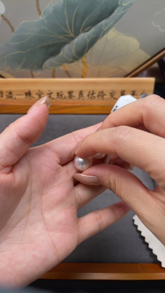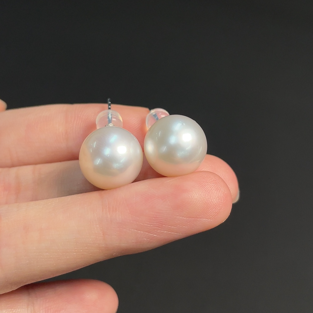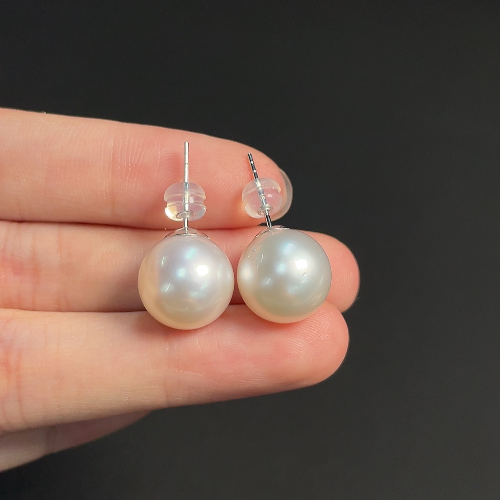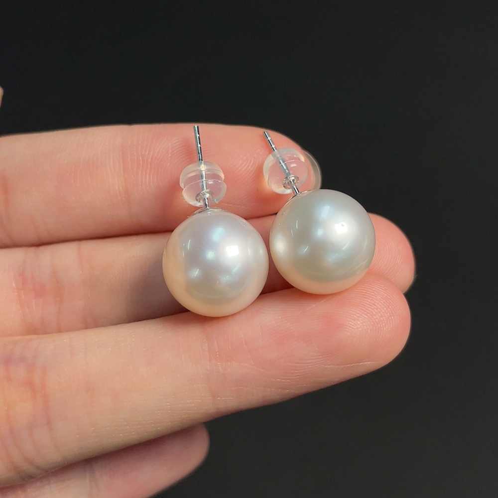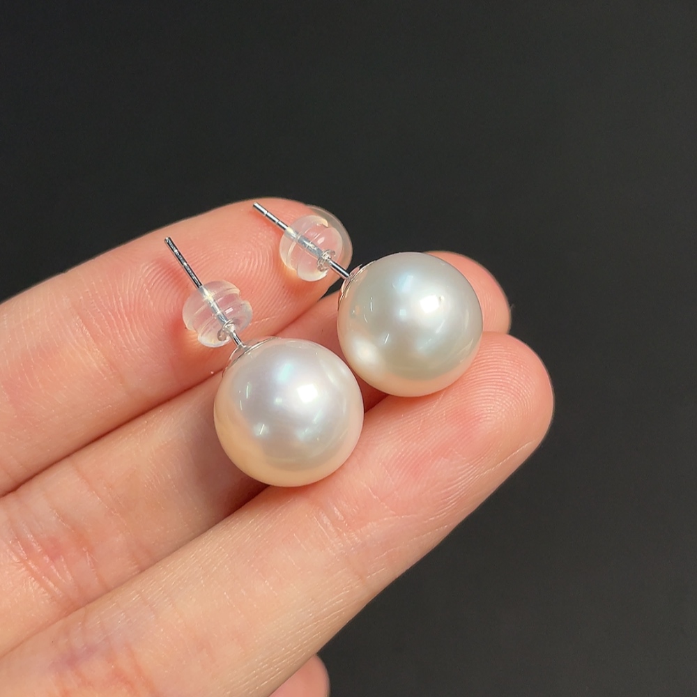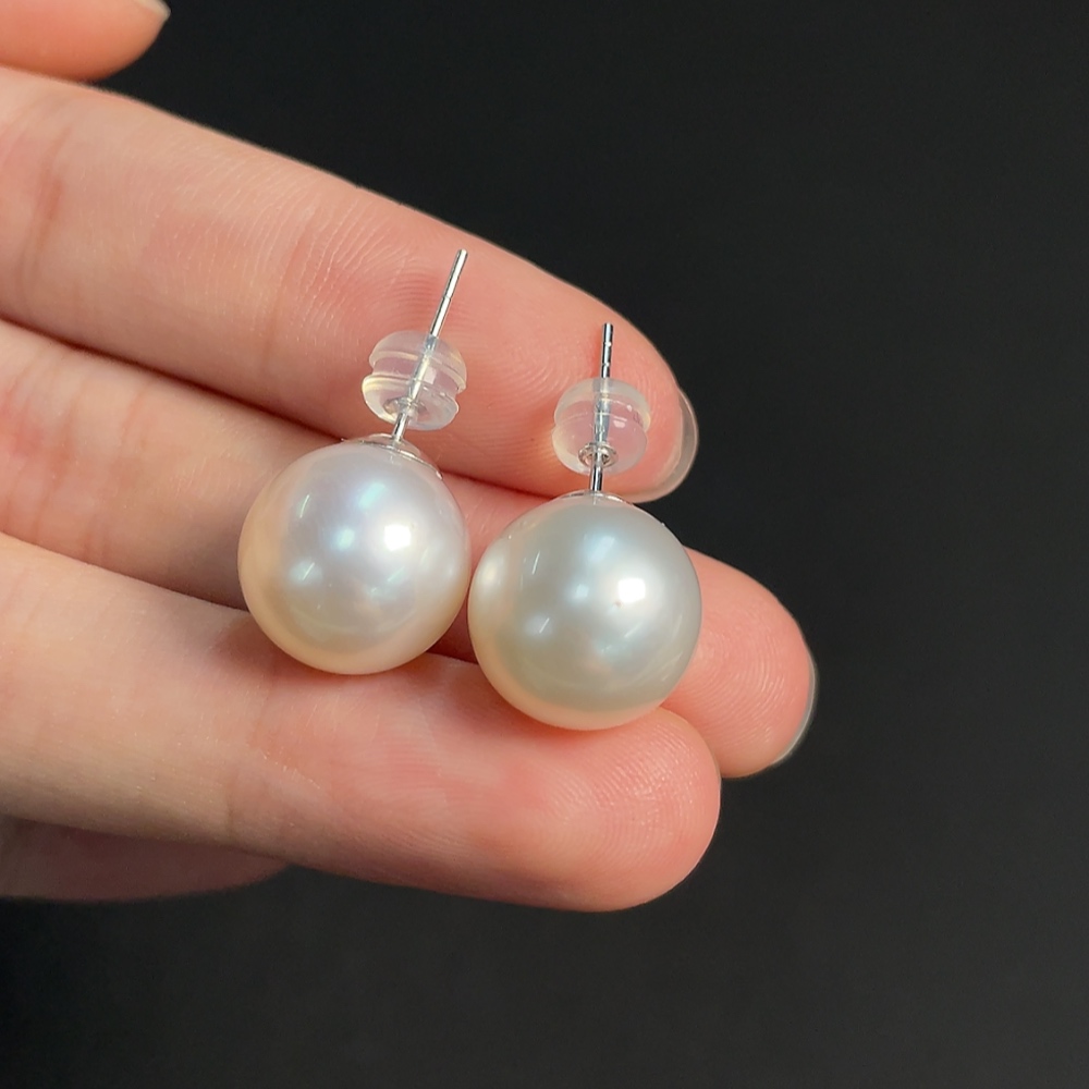 18k seawater pearl earrings, total weight approximately 6.23g, size about 12.3mm