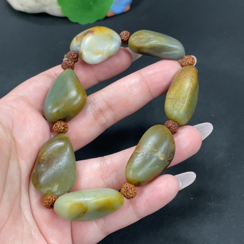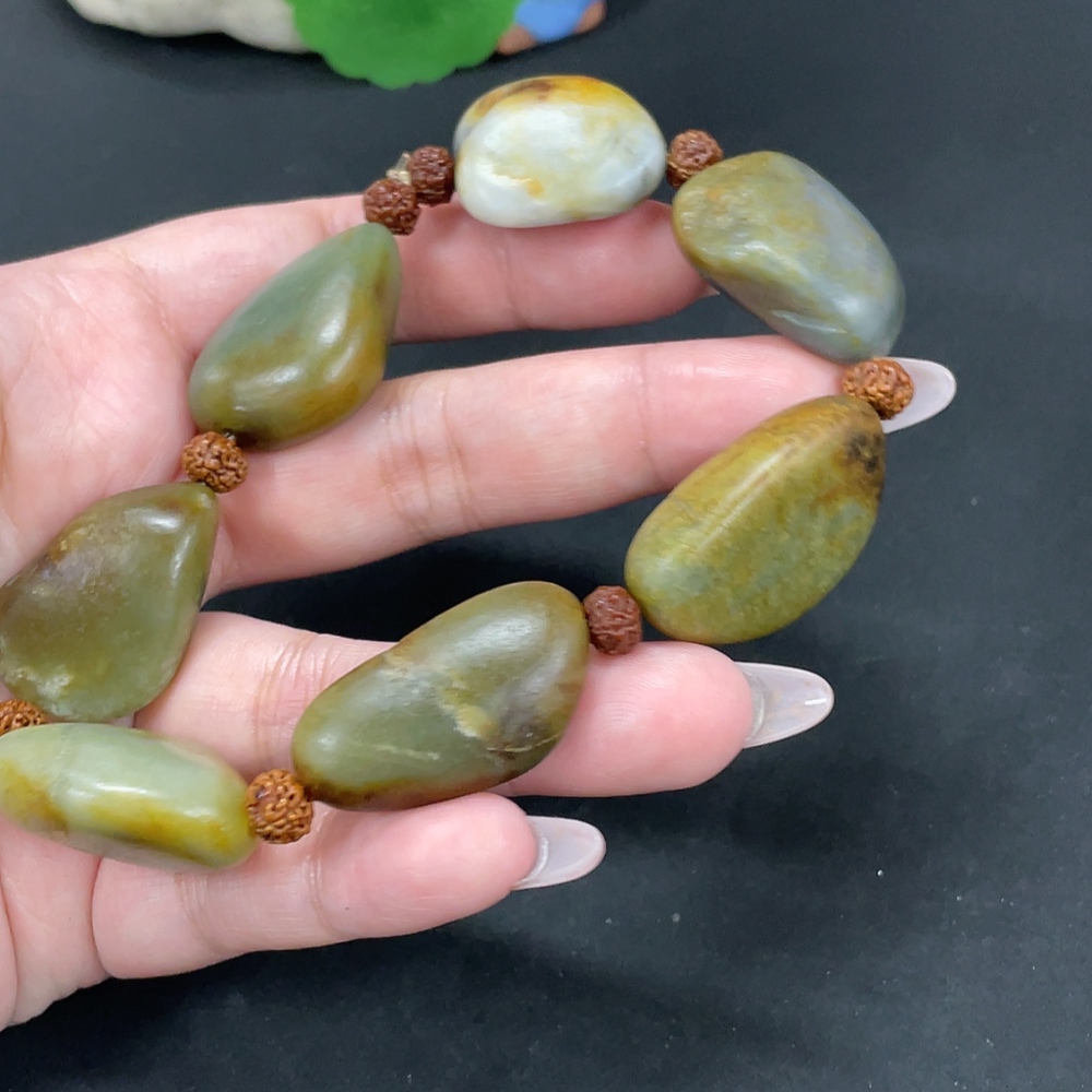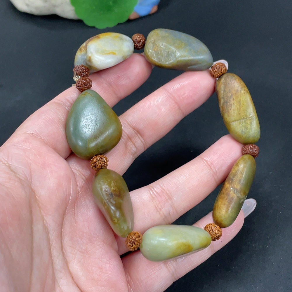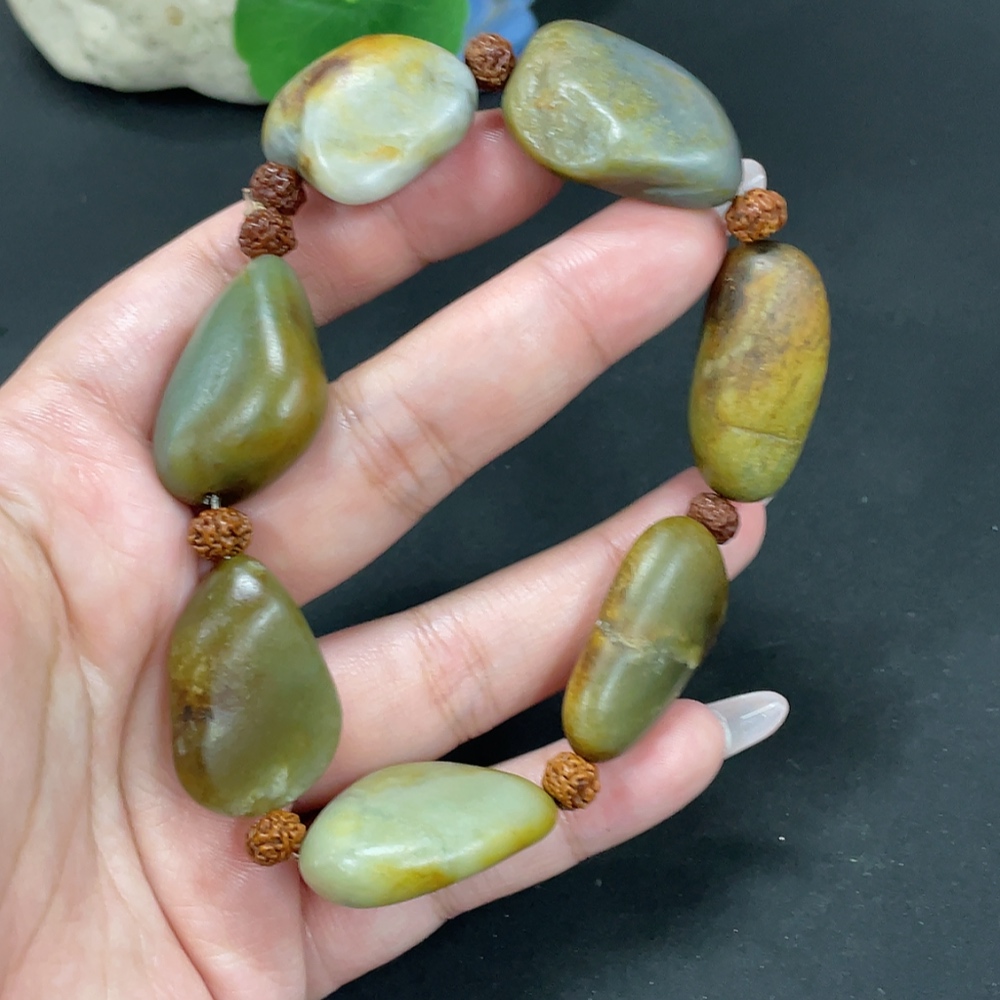 Hetian Jade Bracelet, Undetermined Skin Color Origin, Contains Other Mineral Components, Non-Hetian Jade Beads Included, Total Weight Approximately 82g