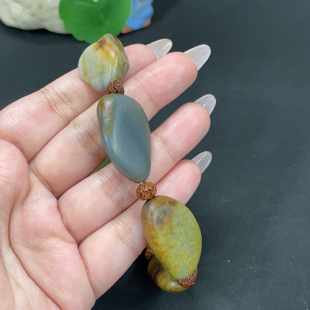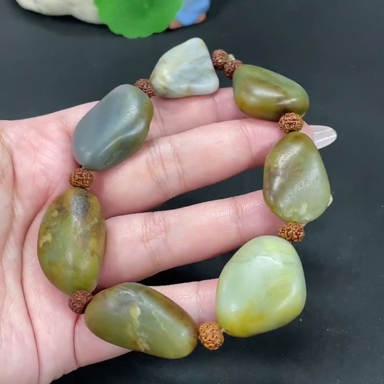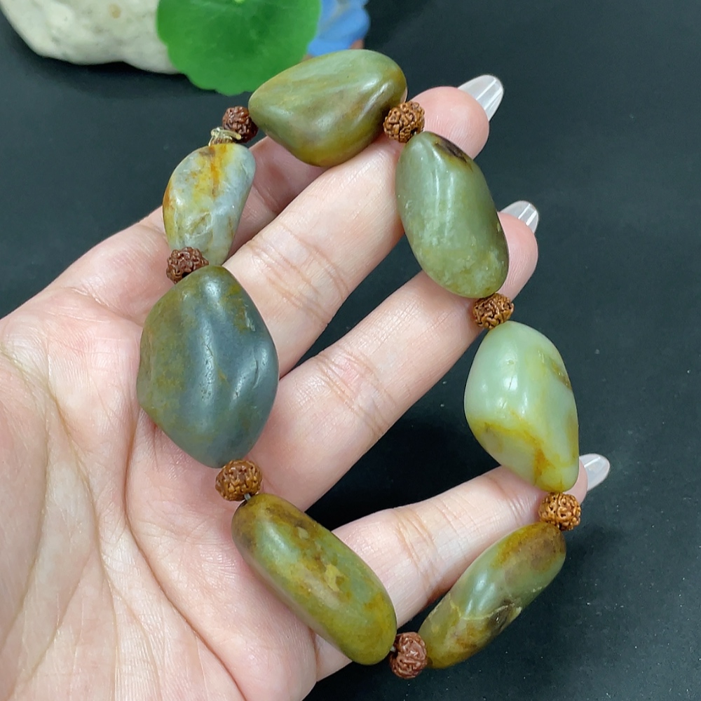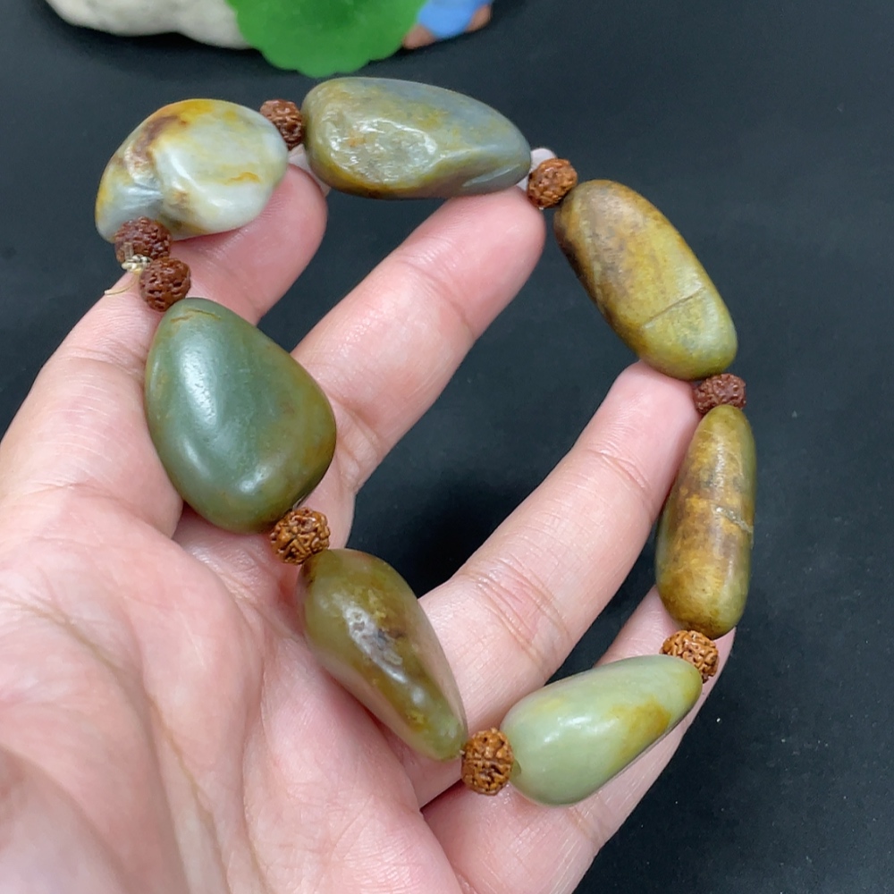 Hetian Jade Bracelet, Undetermined Skin Color Origin, Contains Other Mineral Components, Non-Hetian Jade Beads Included, Total Weight Approximately 82g