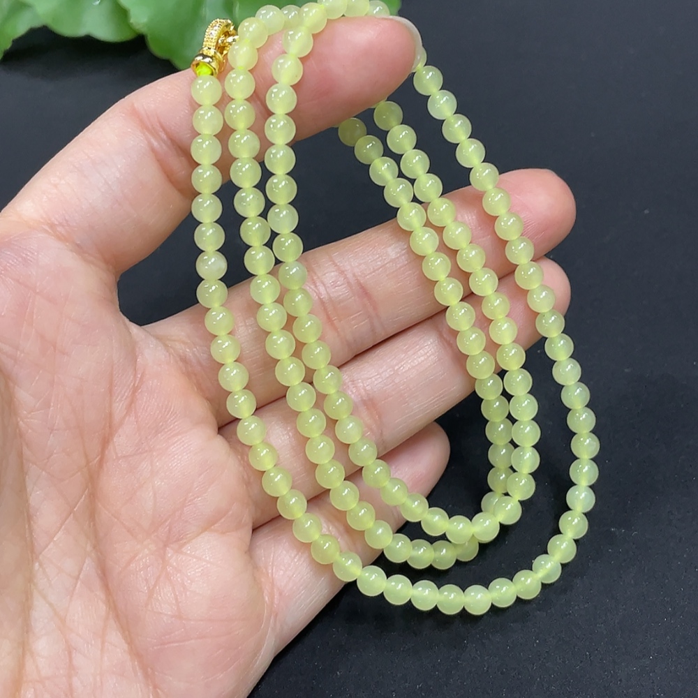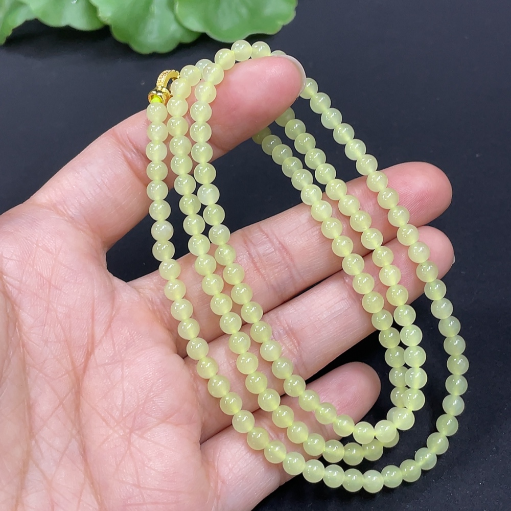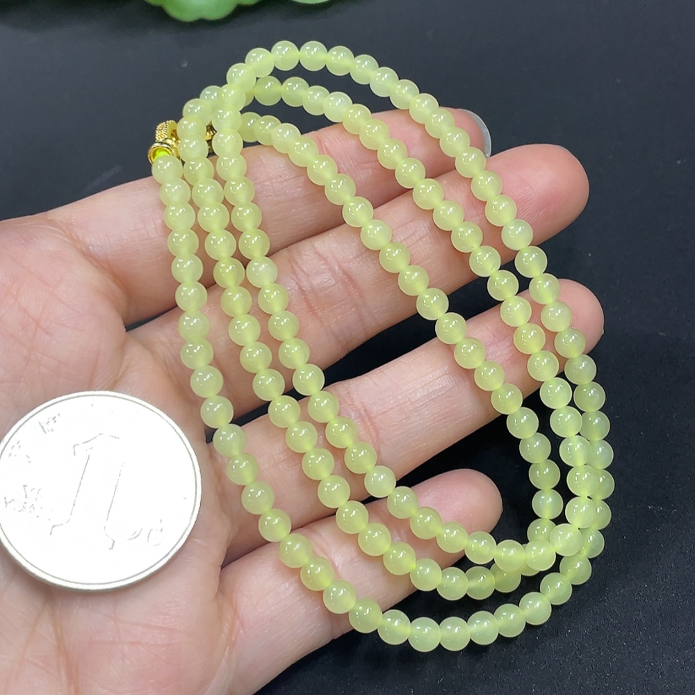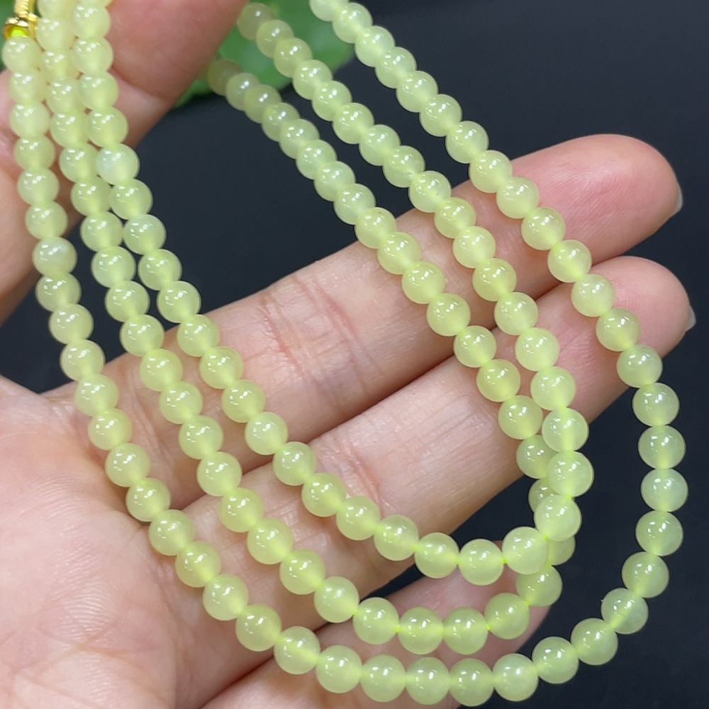 Hetian Jade Bead Necklace Approx. 3.8mm Non-Gold-Inlaid Total Weight Approx. 15g