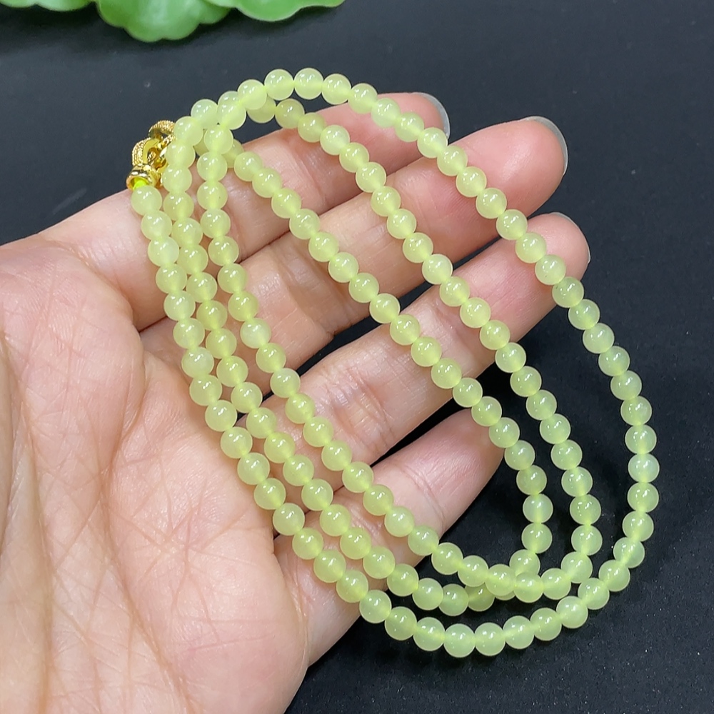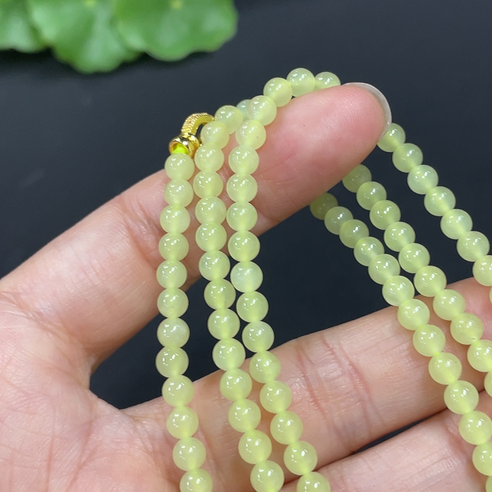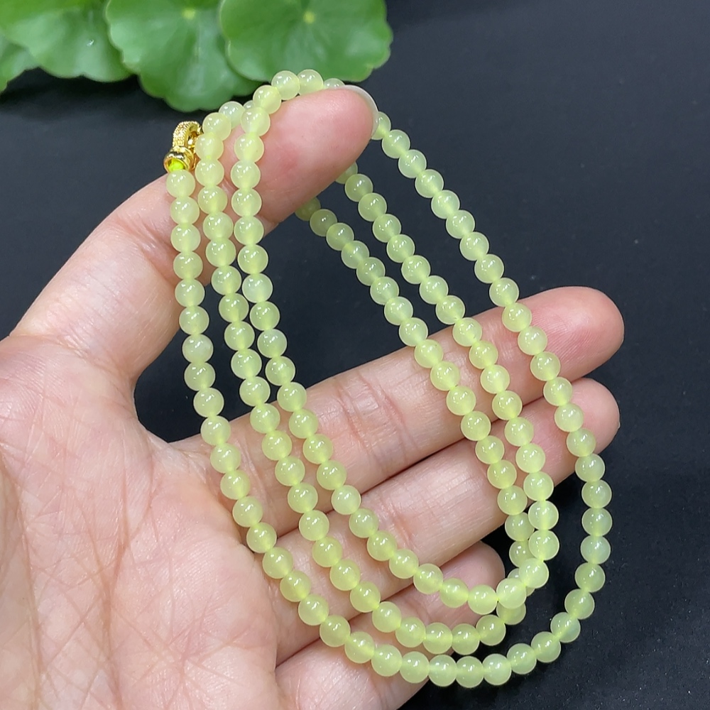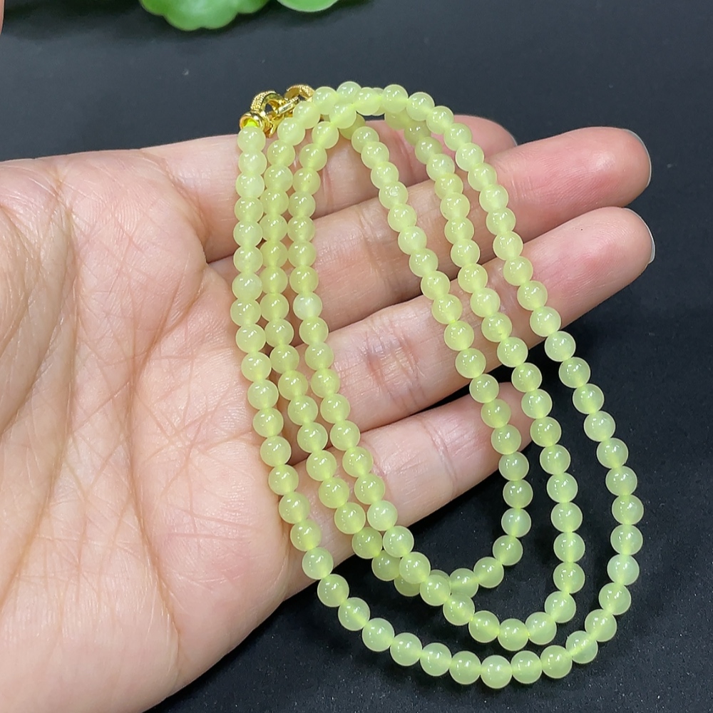 Hetian Jade Bead Necklace Approx. 3.8mm Non-Gold-Inlaid Total Weight Approx. 15g