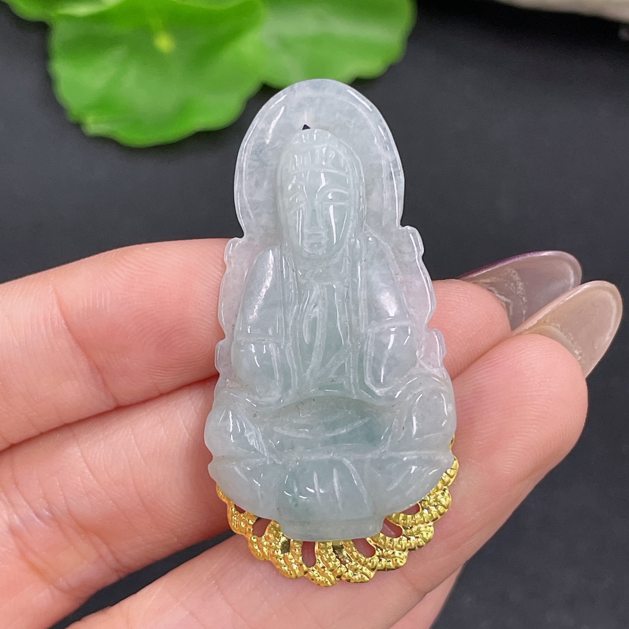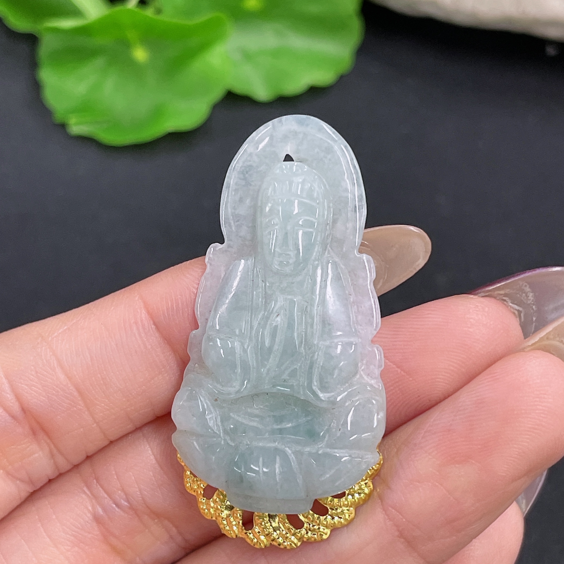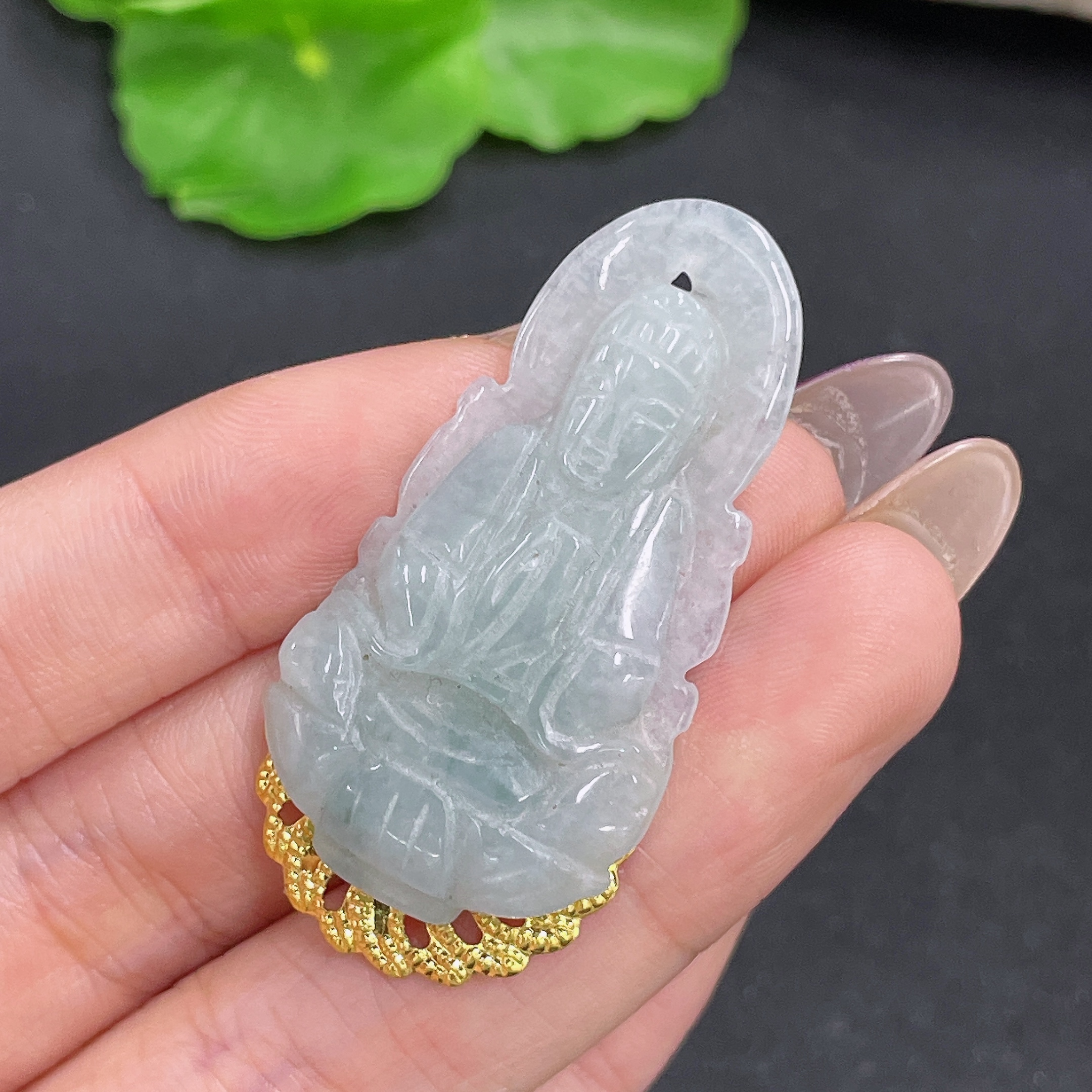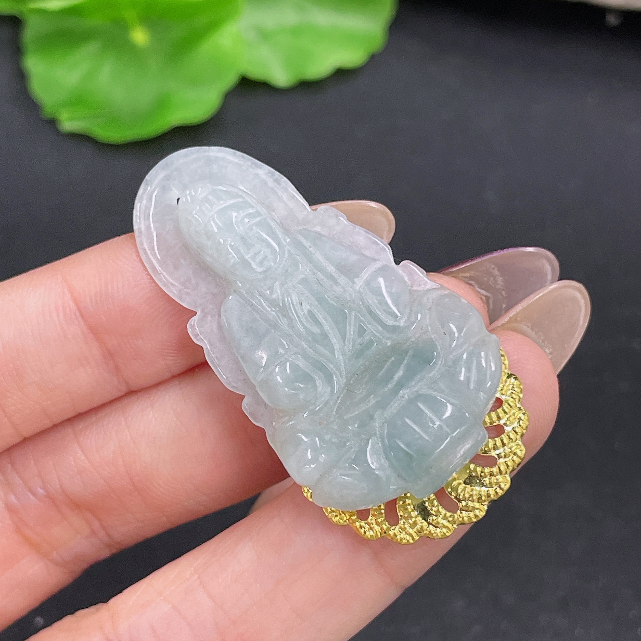 Jadeite Guanyin Pendant Total Weight Approx. 8g (Non-Gold Inlaid)
