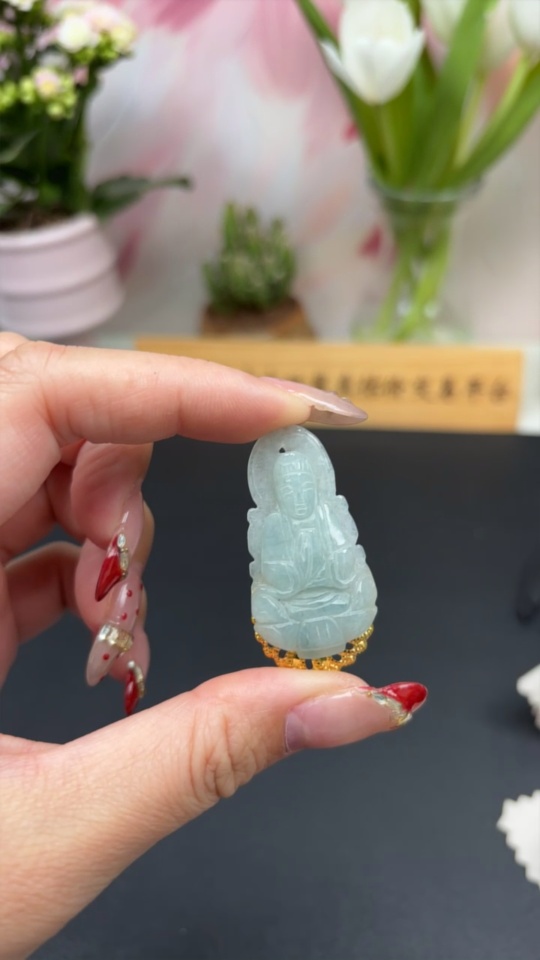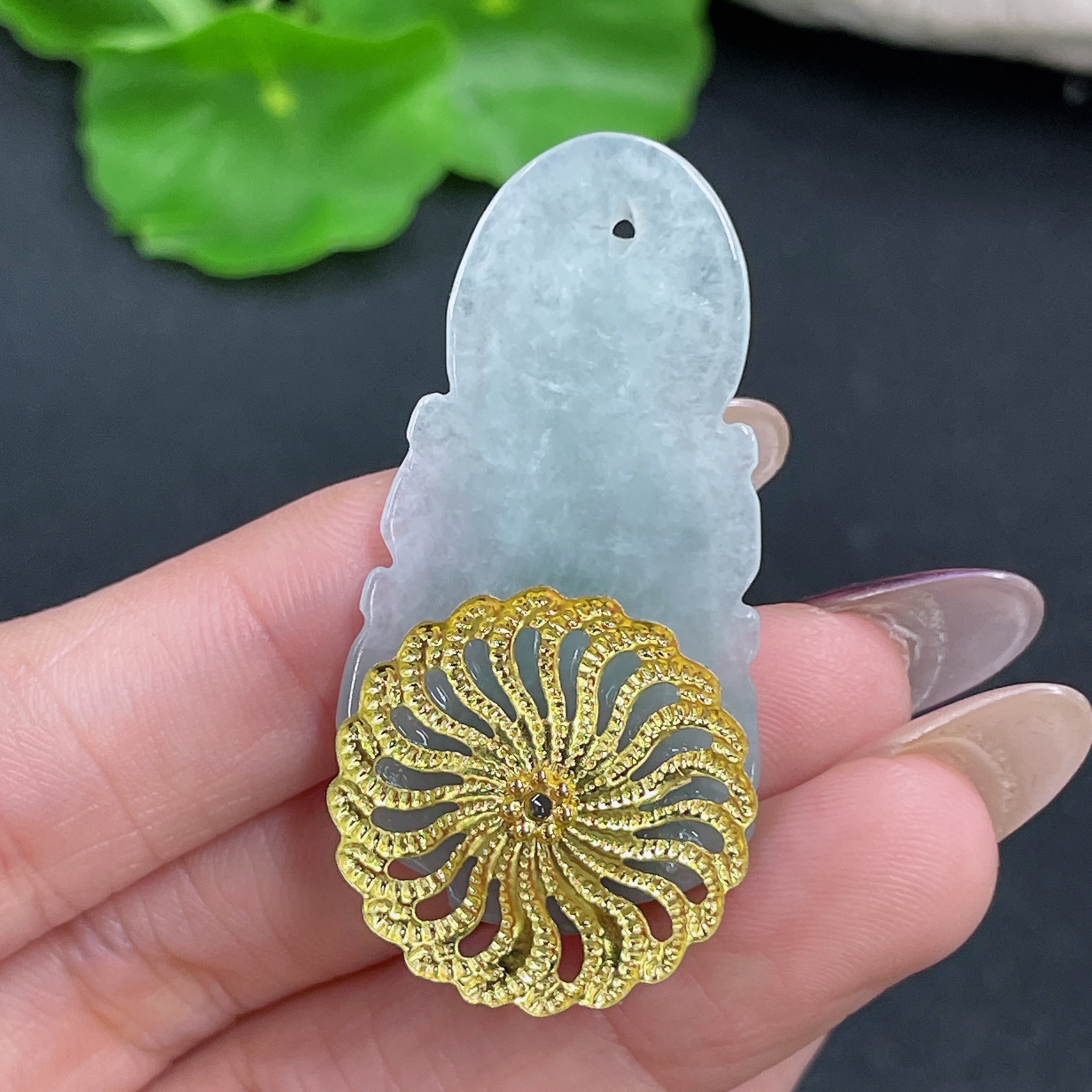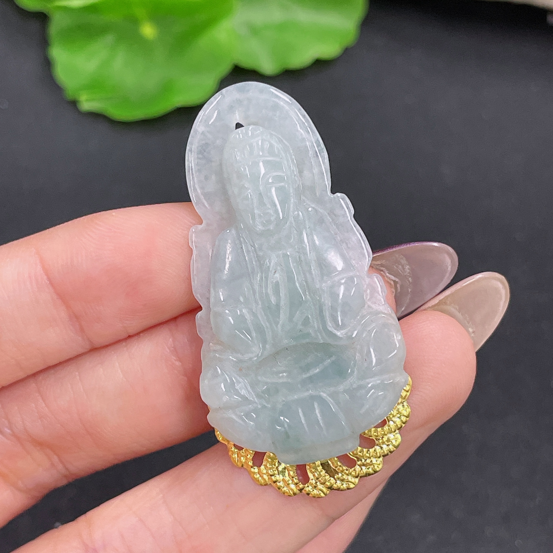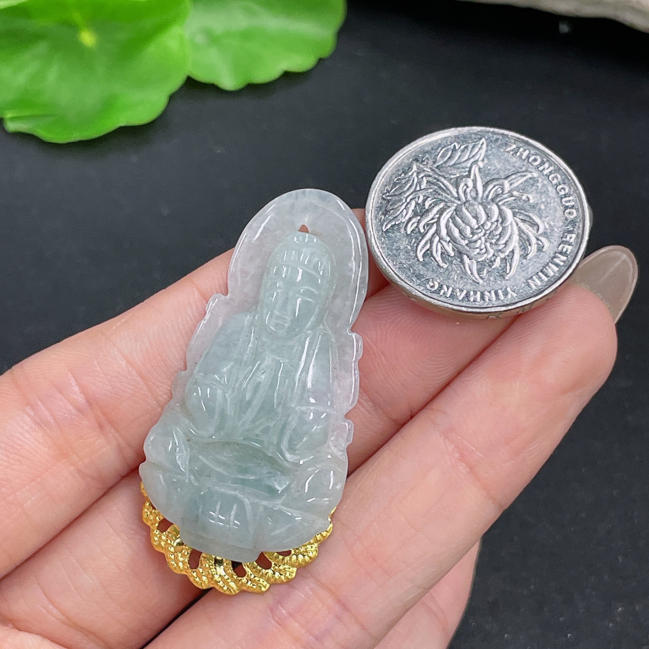 Jadeite Guanyin Pendant Total Weight Approx. 8g (Non-Gold Inlaid)