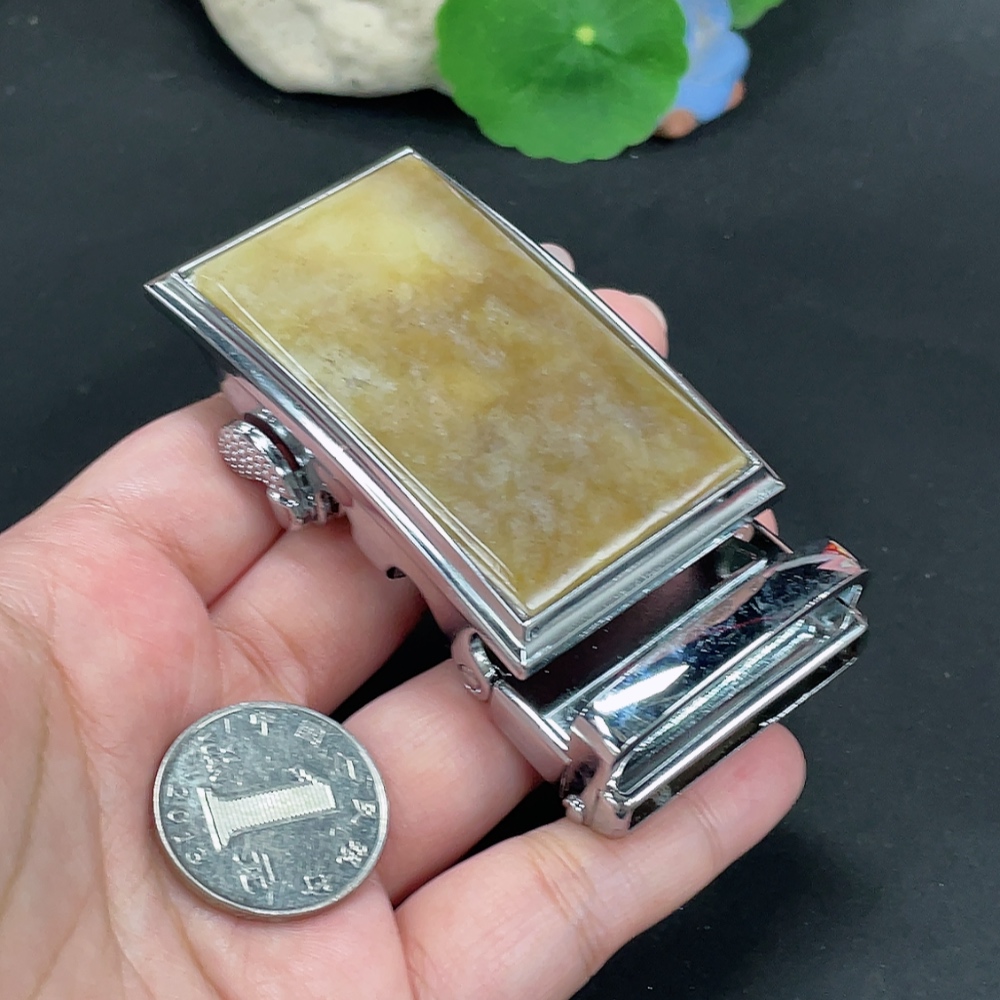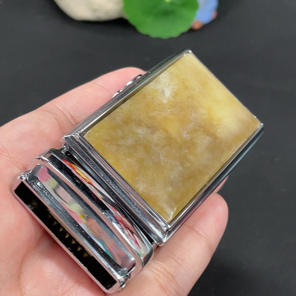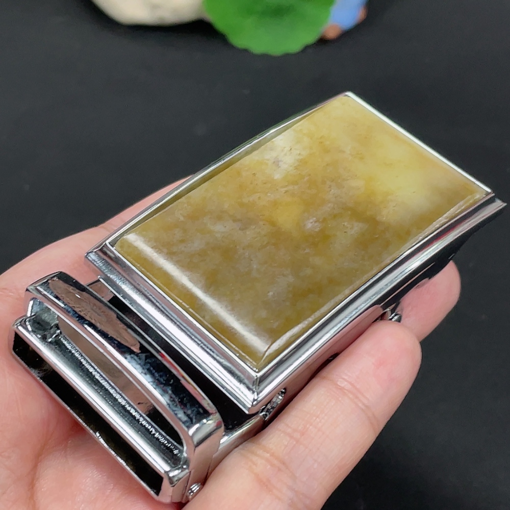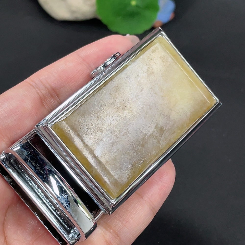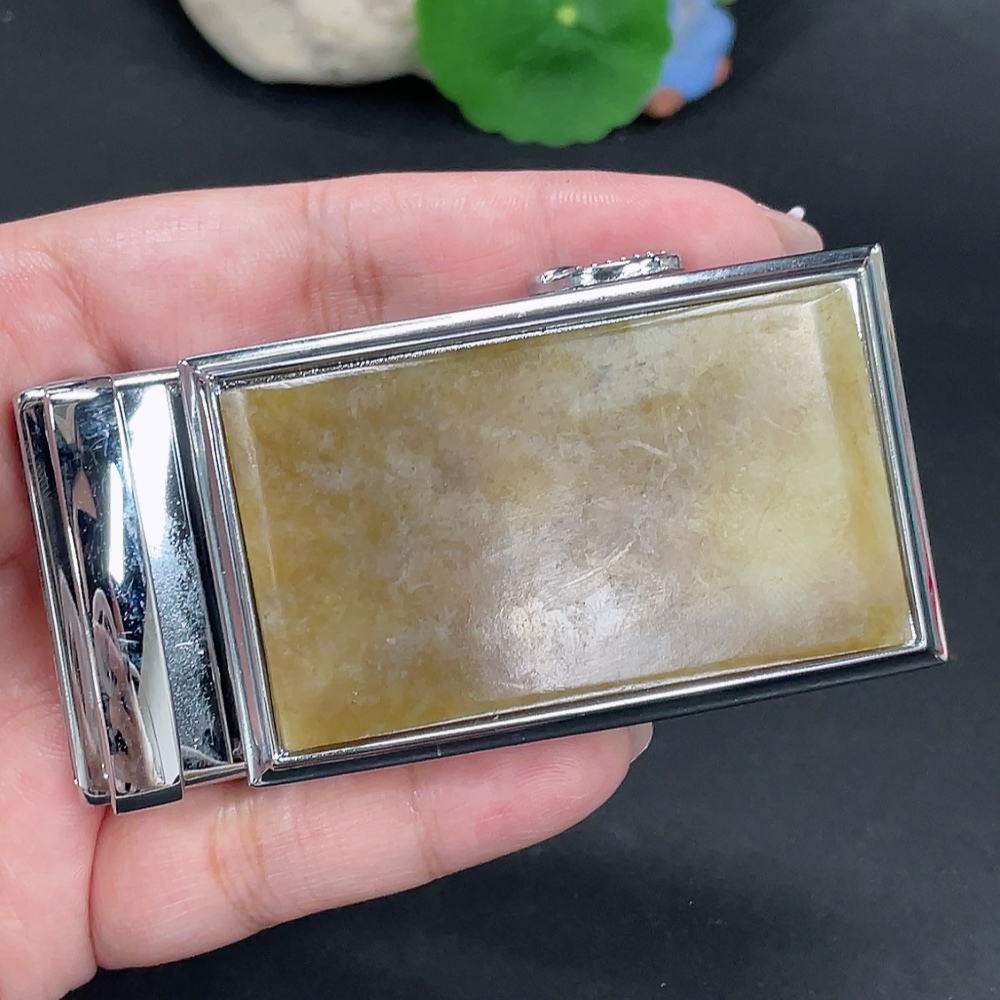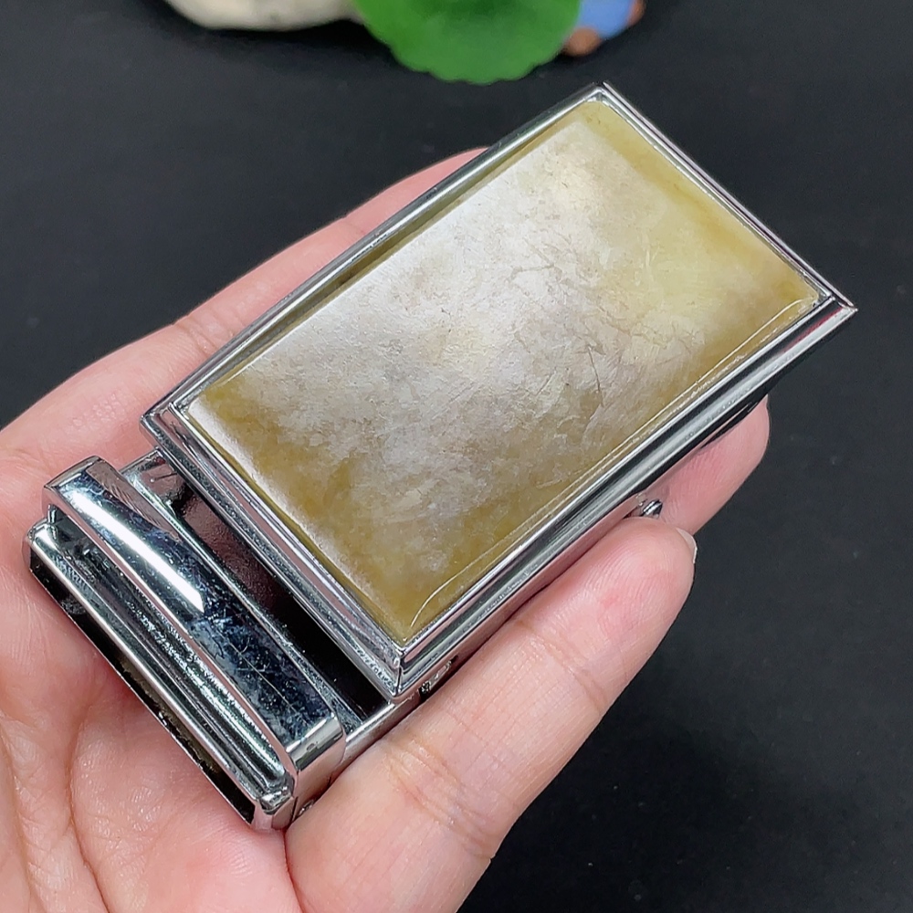 Hetian Jade Belt Buckle Non-Gold Inlaid Total Weight Approx. 109.3g