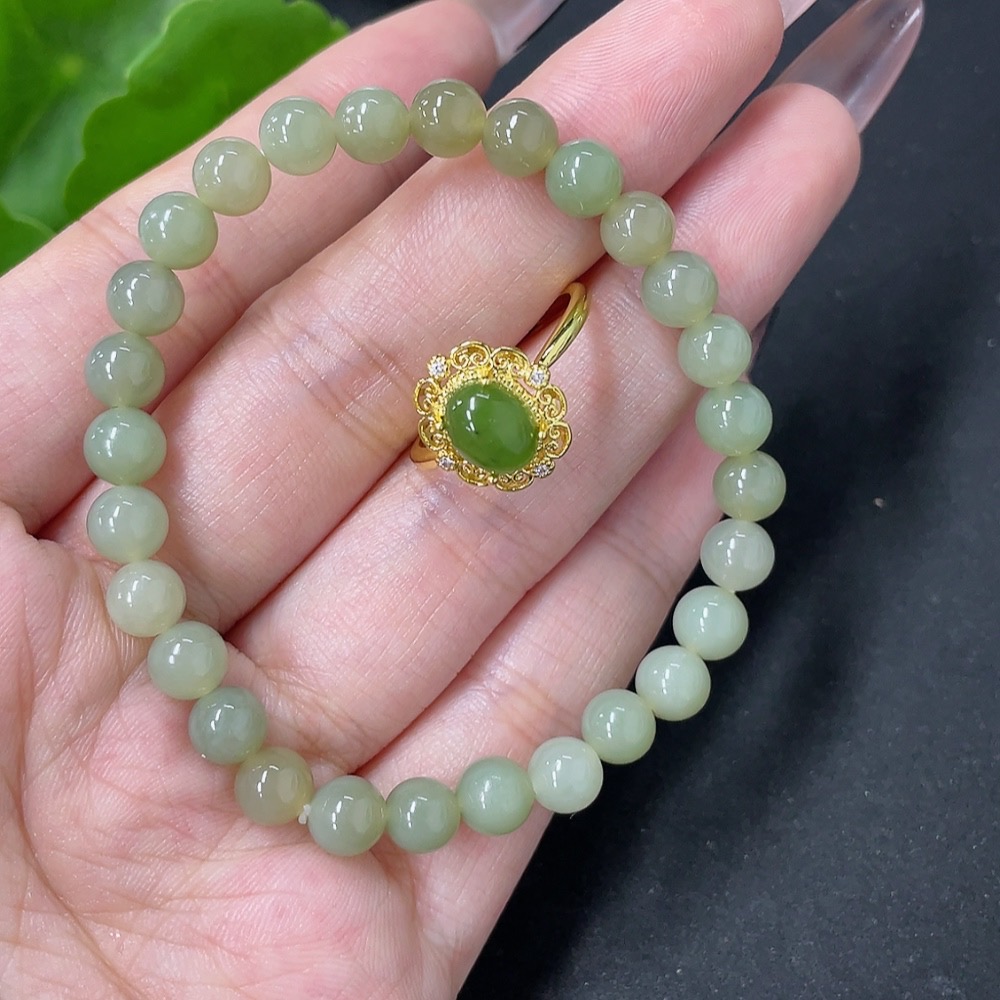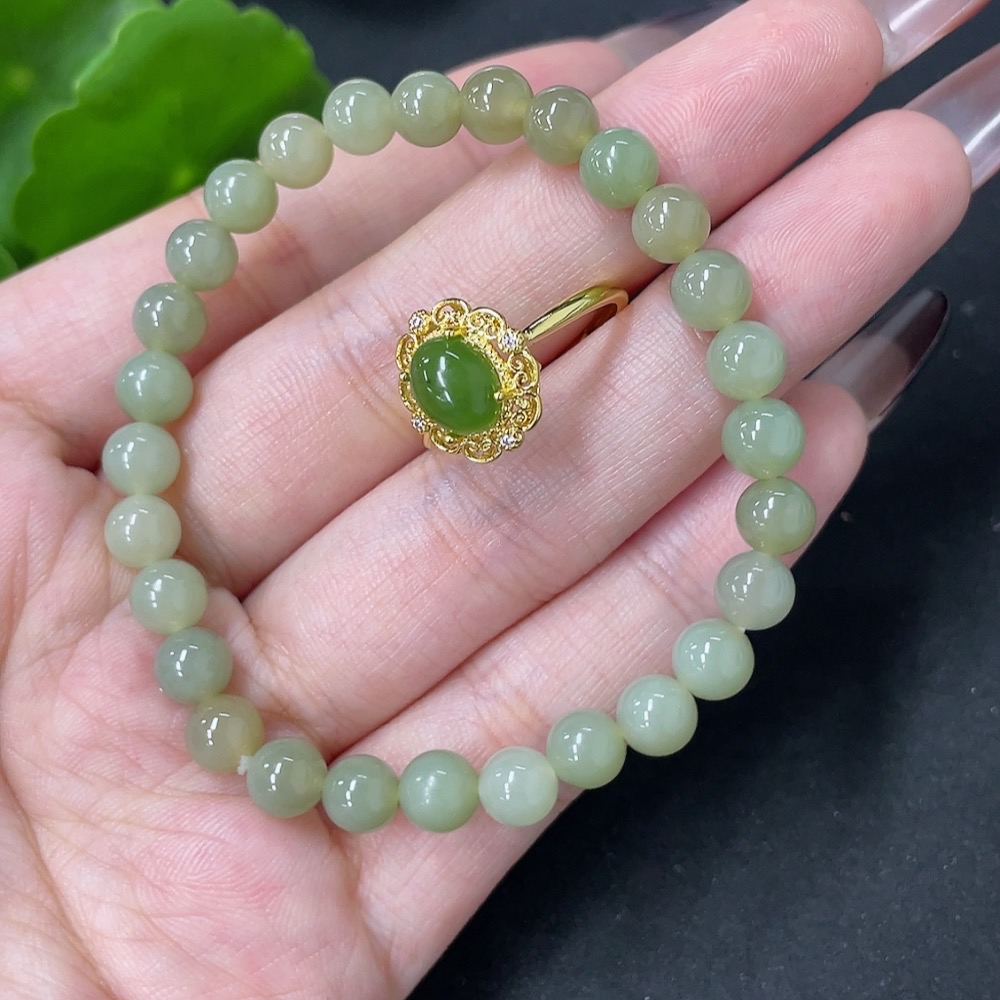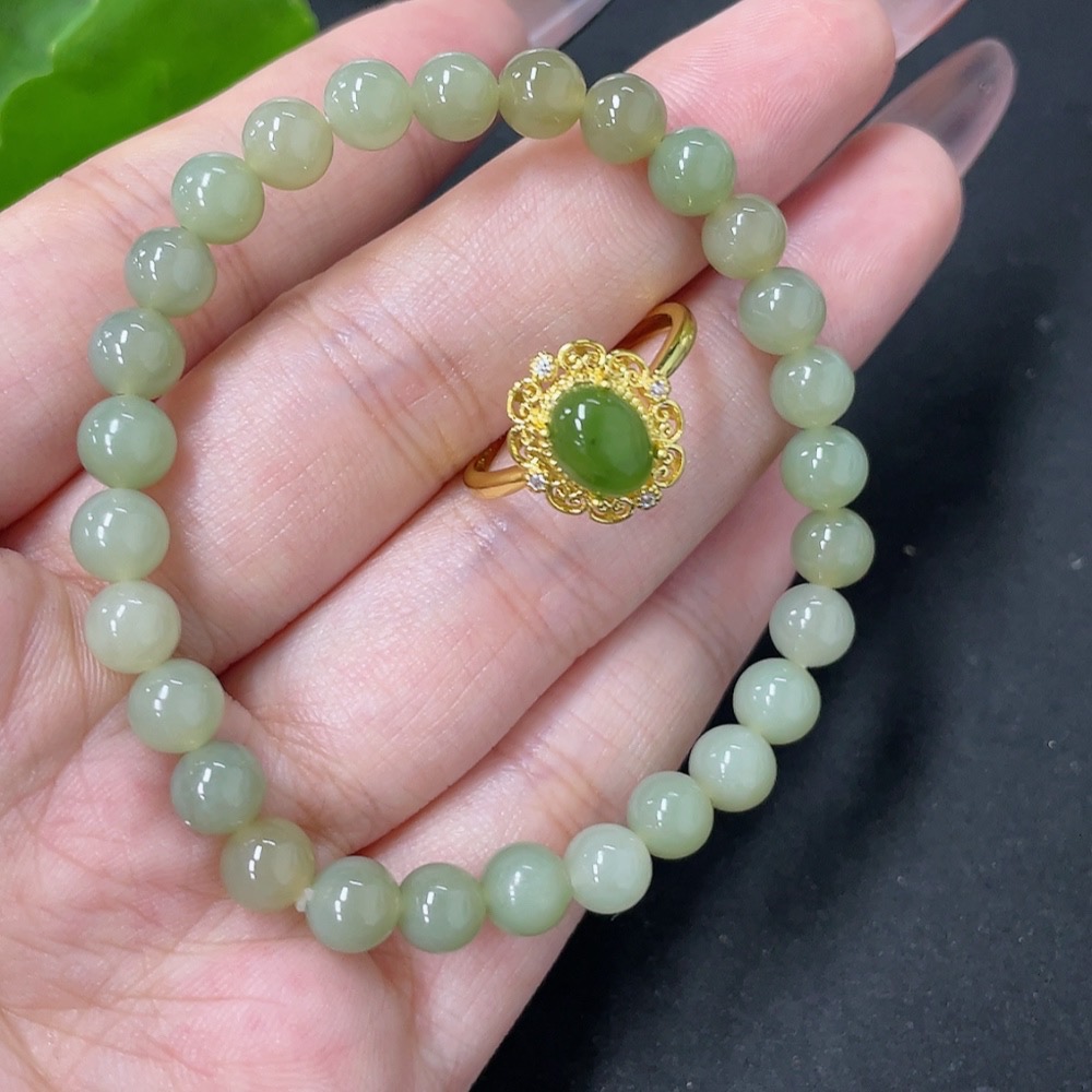 Hetian Jade Bracelet + Adjustable Ring with Inlay Non-Gold Total Weight Approx. 11.1g