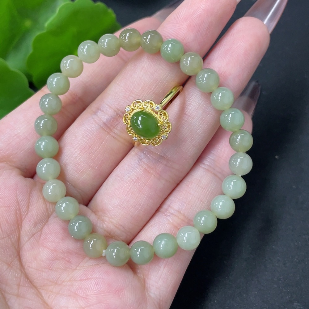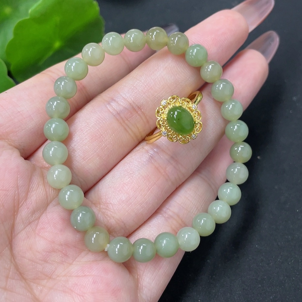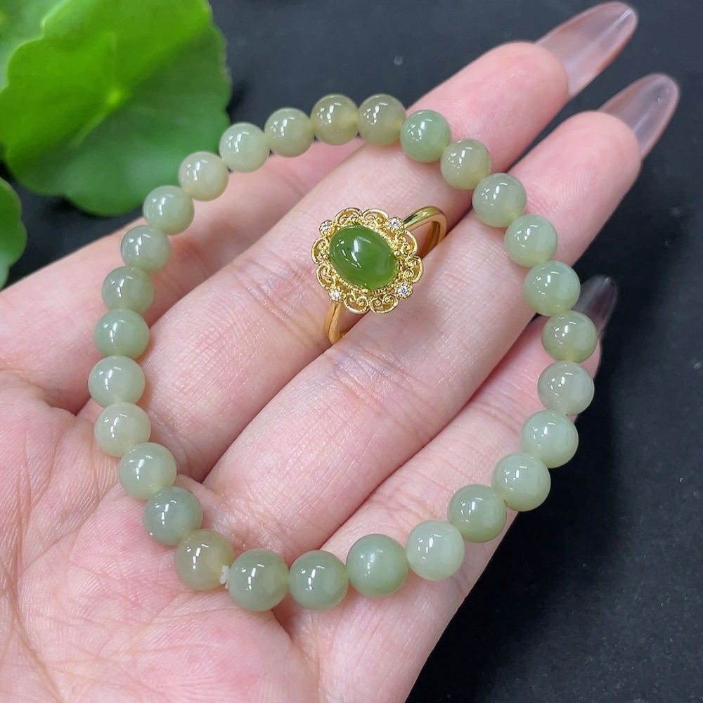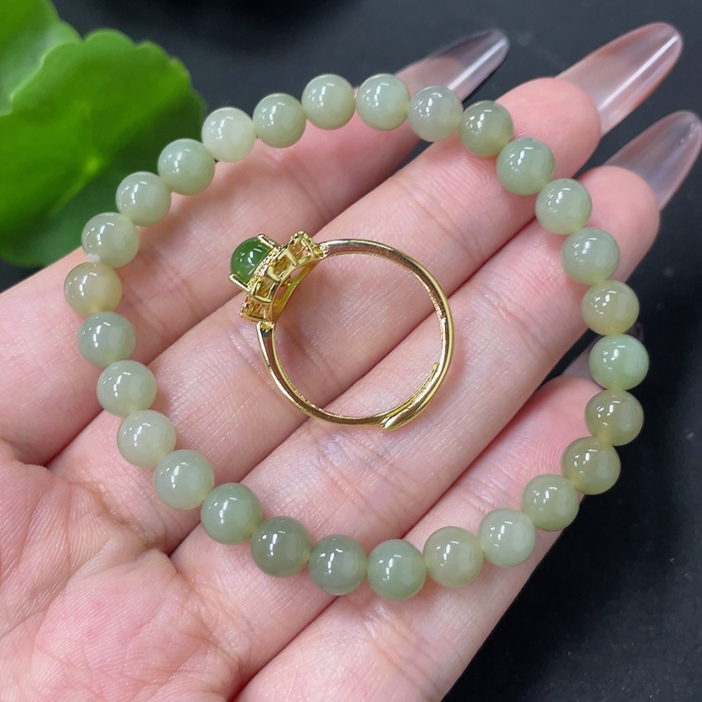 Hetian Jade Bracelet + Adjustable Ring with Inlay Non-Gold Total Weight Approx. 11.1g