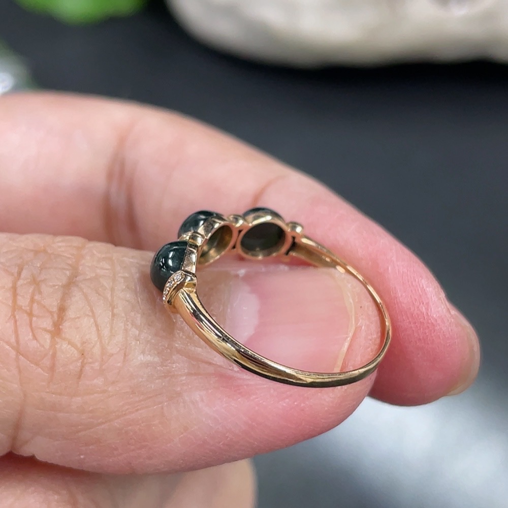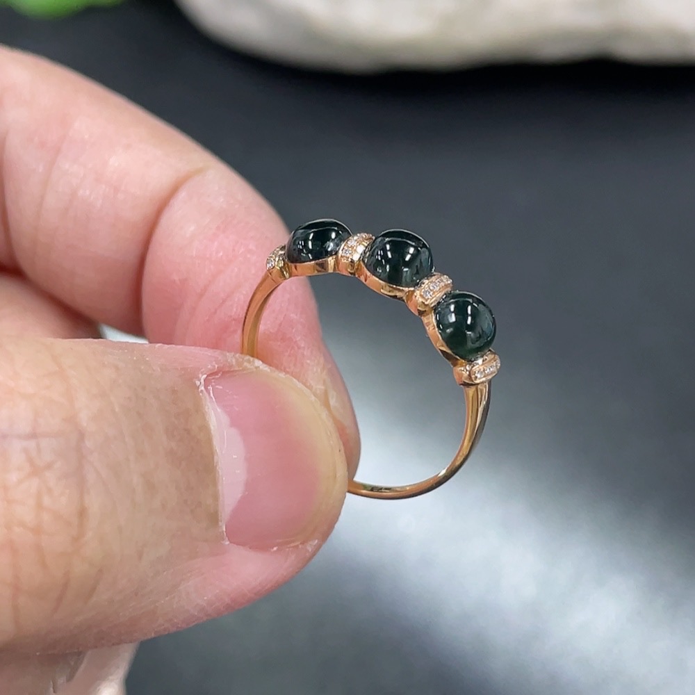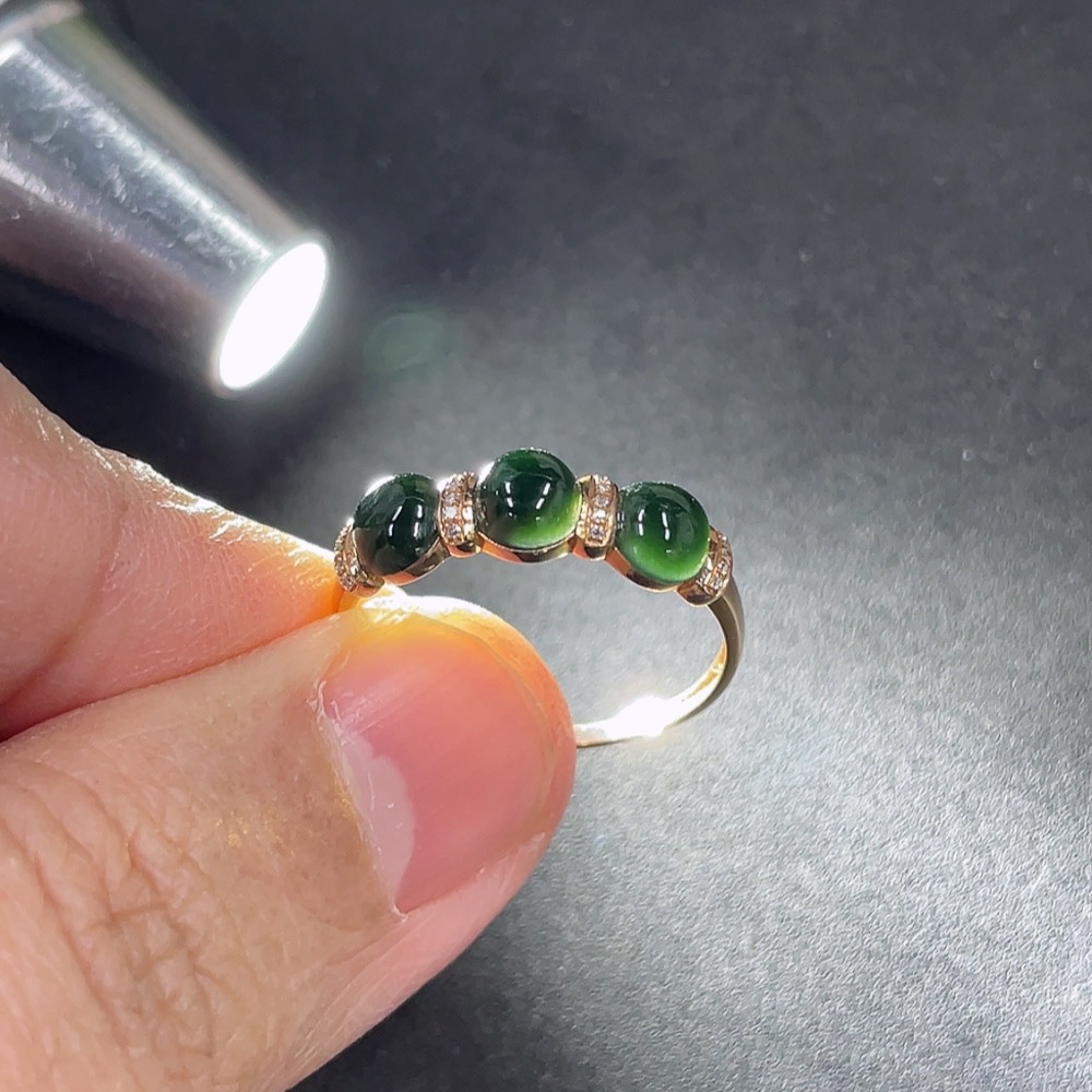 Jadeite Cabochon Ring Mounted with Approximately 72% Au Content, Accented with Diamonds, Size 13.5, Total Weight Approximately 1.3g