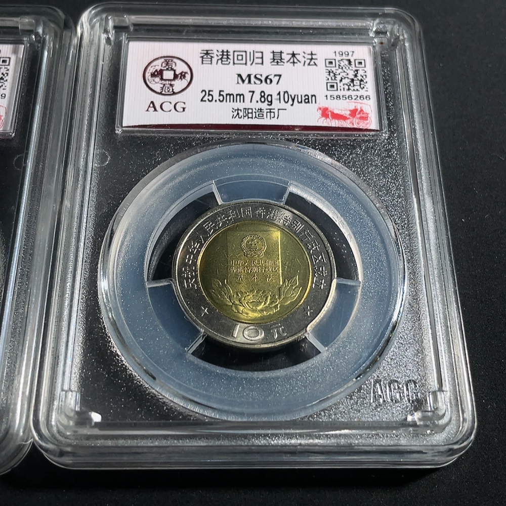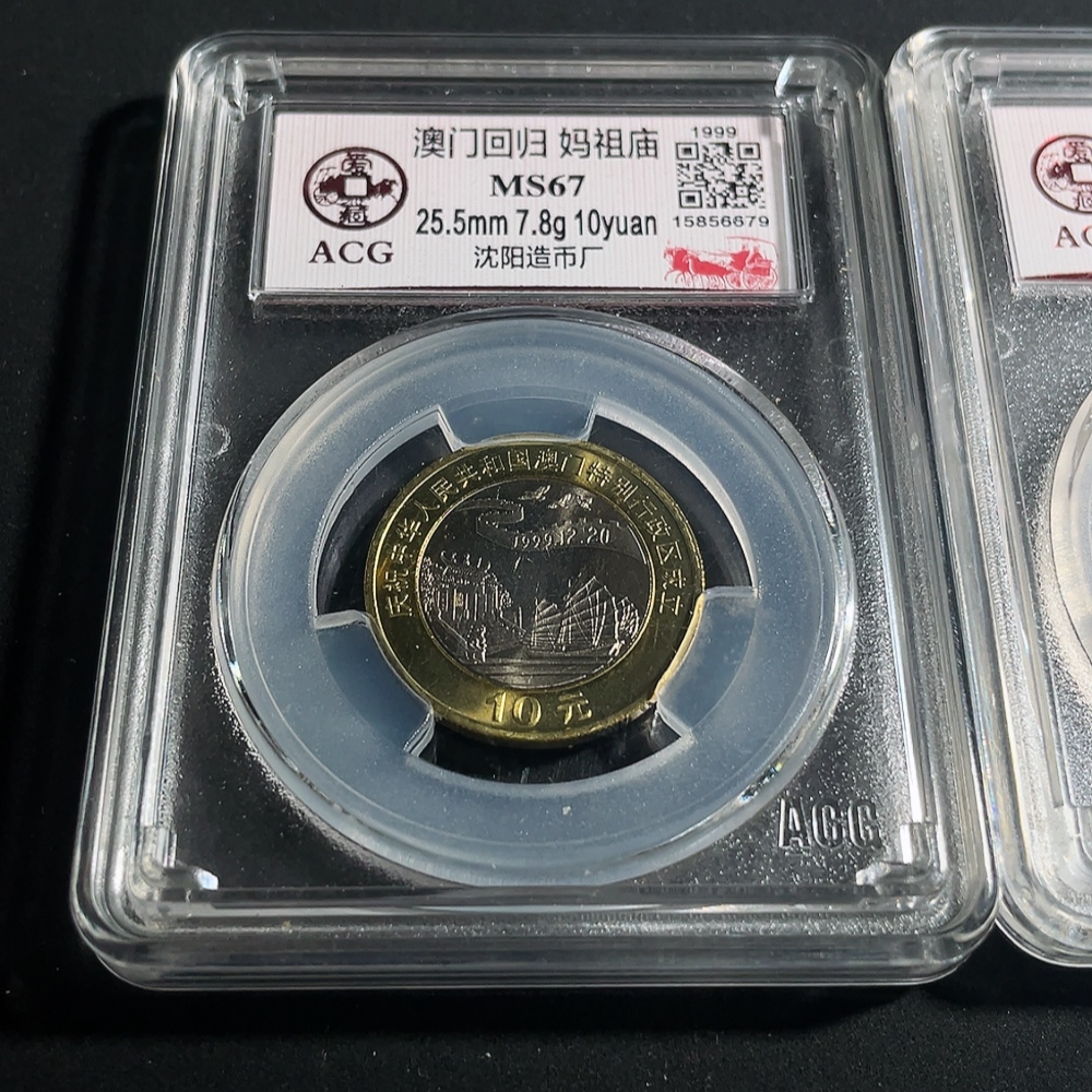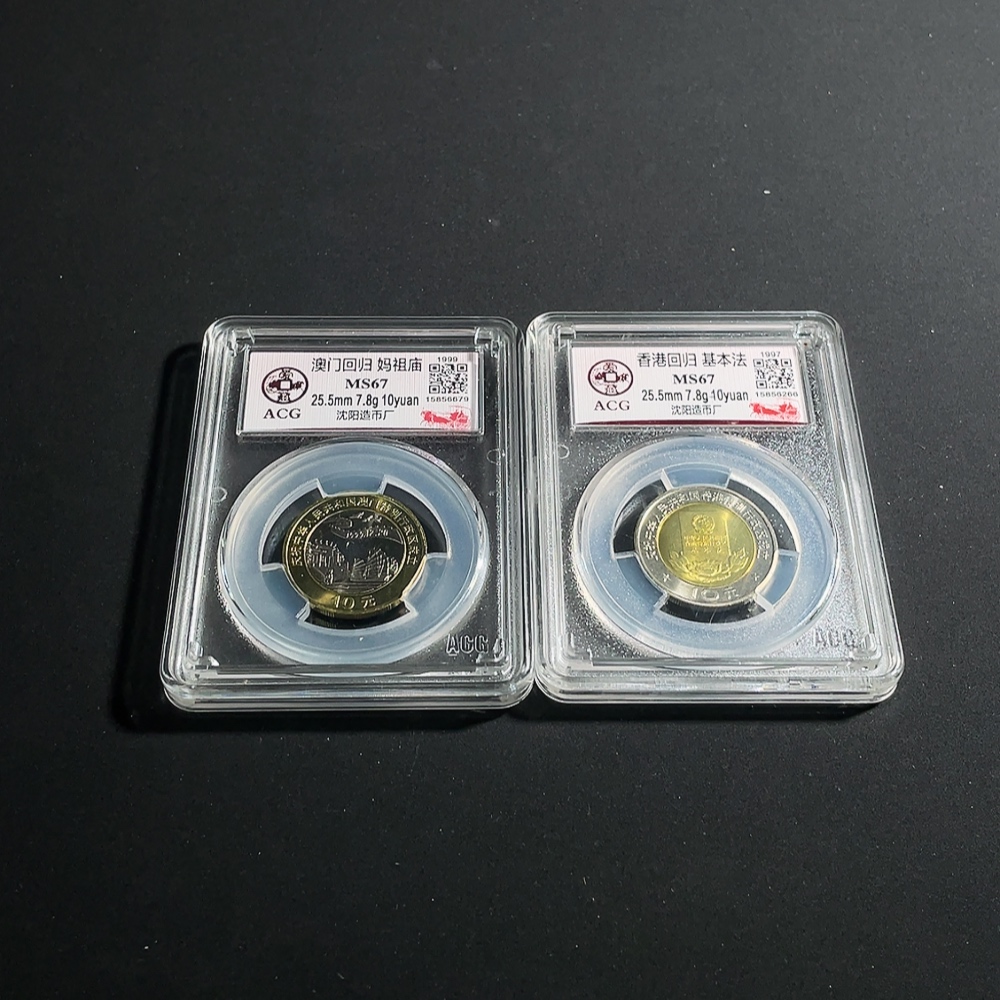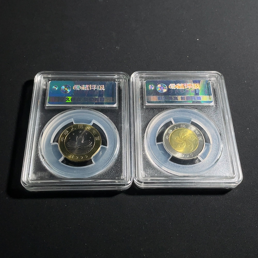 the two commemorative coins for Macau's return and Hong Kong's return
