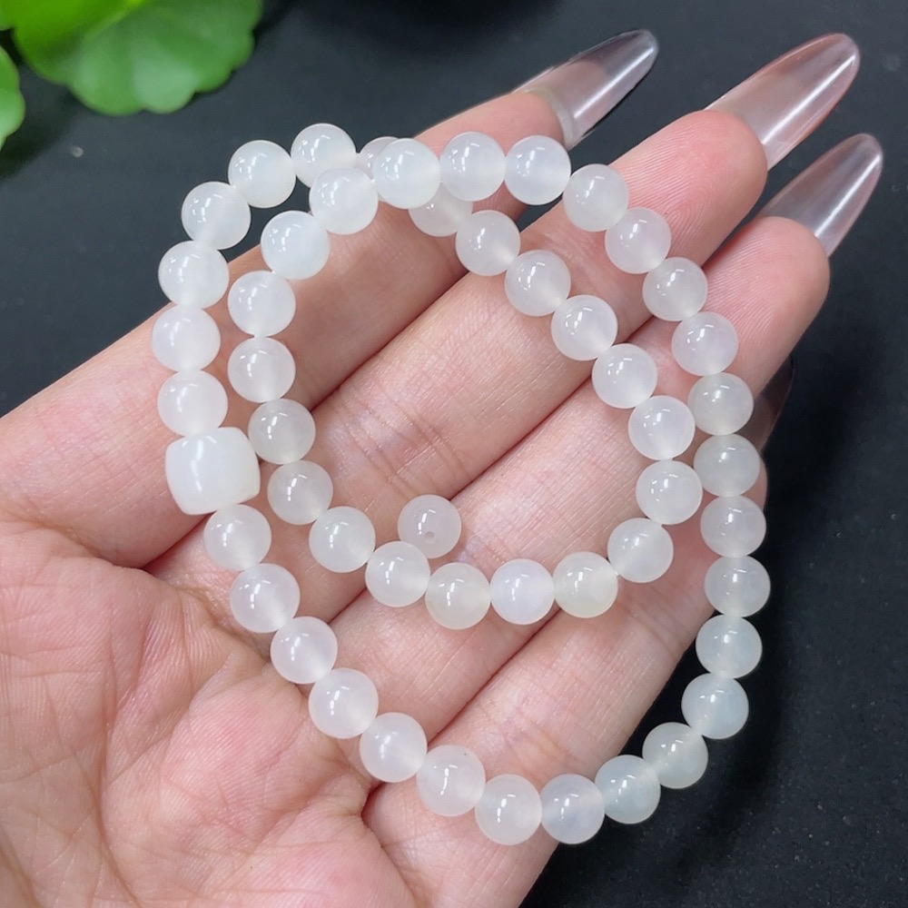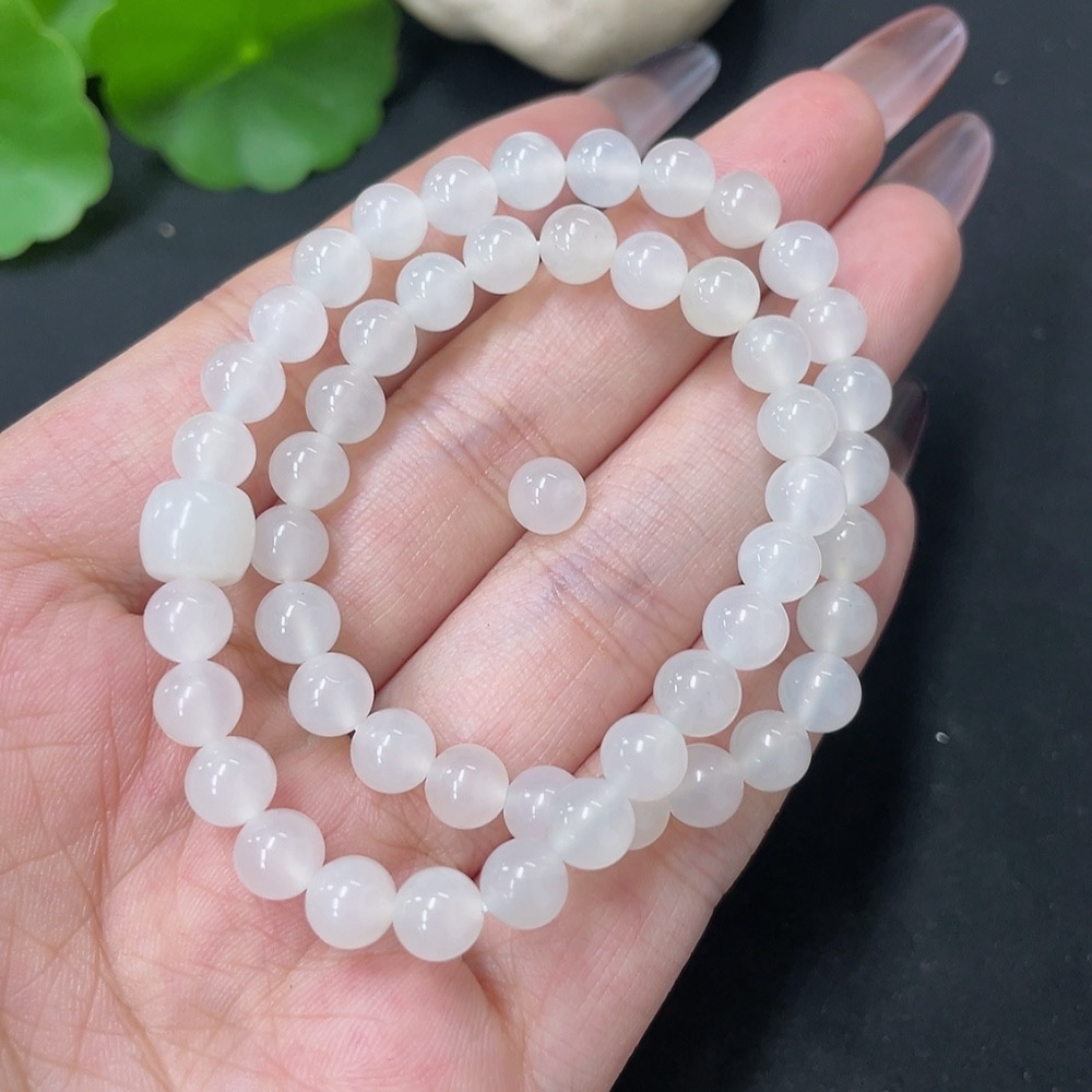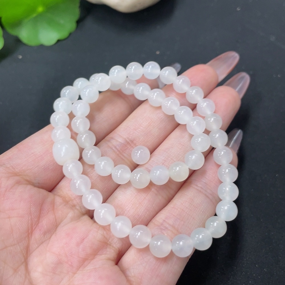Hetian Jade Bead Necklace, Approx. 6mm, Total Weight Approx. 17.6g