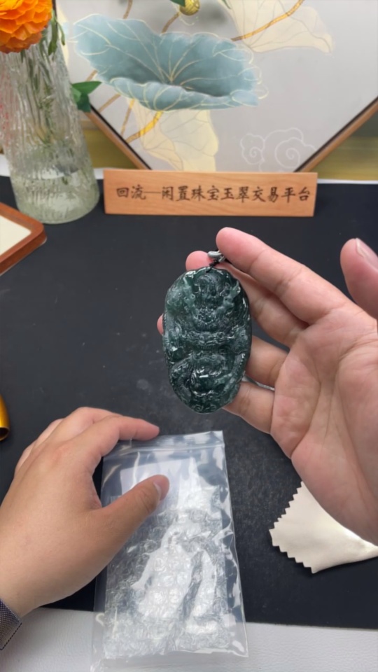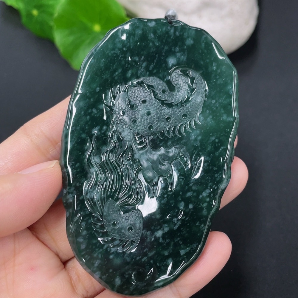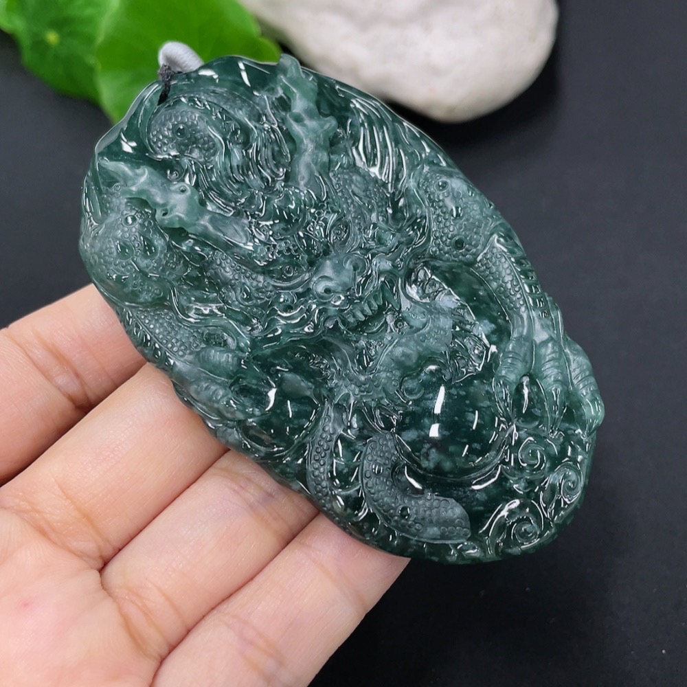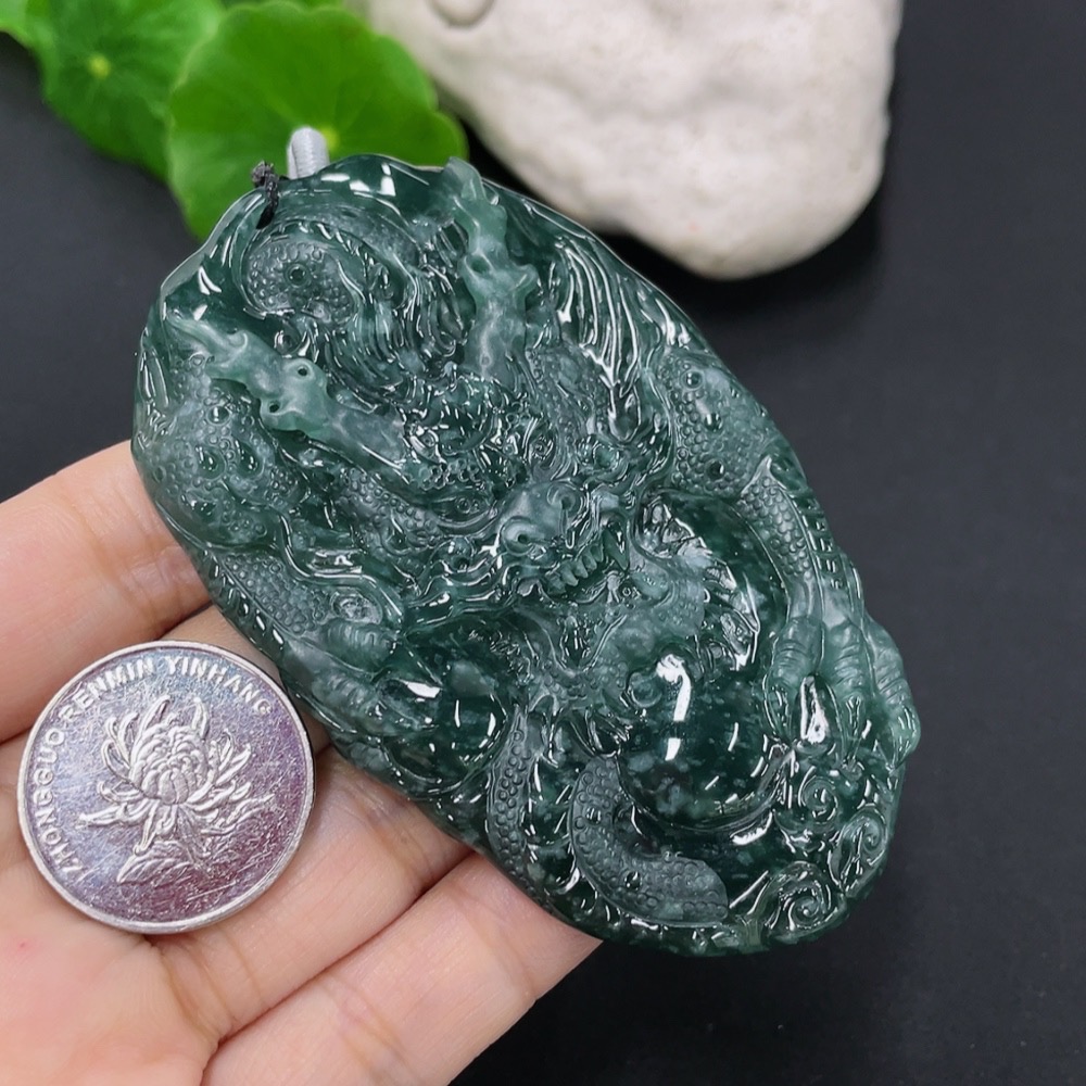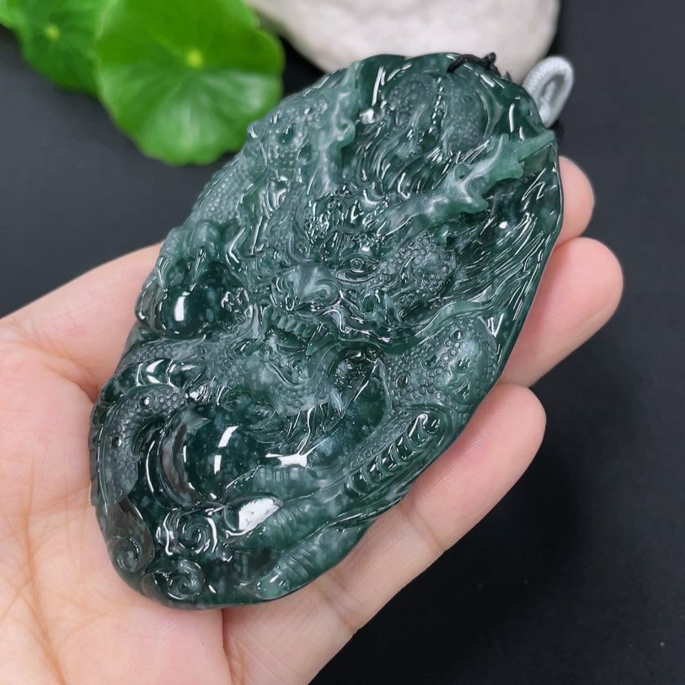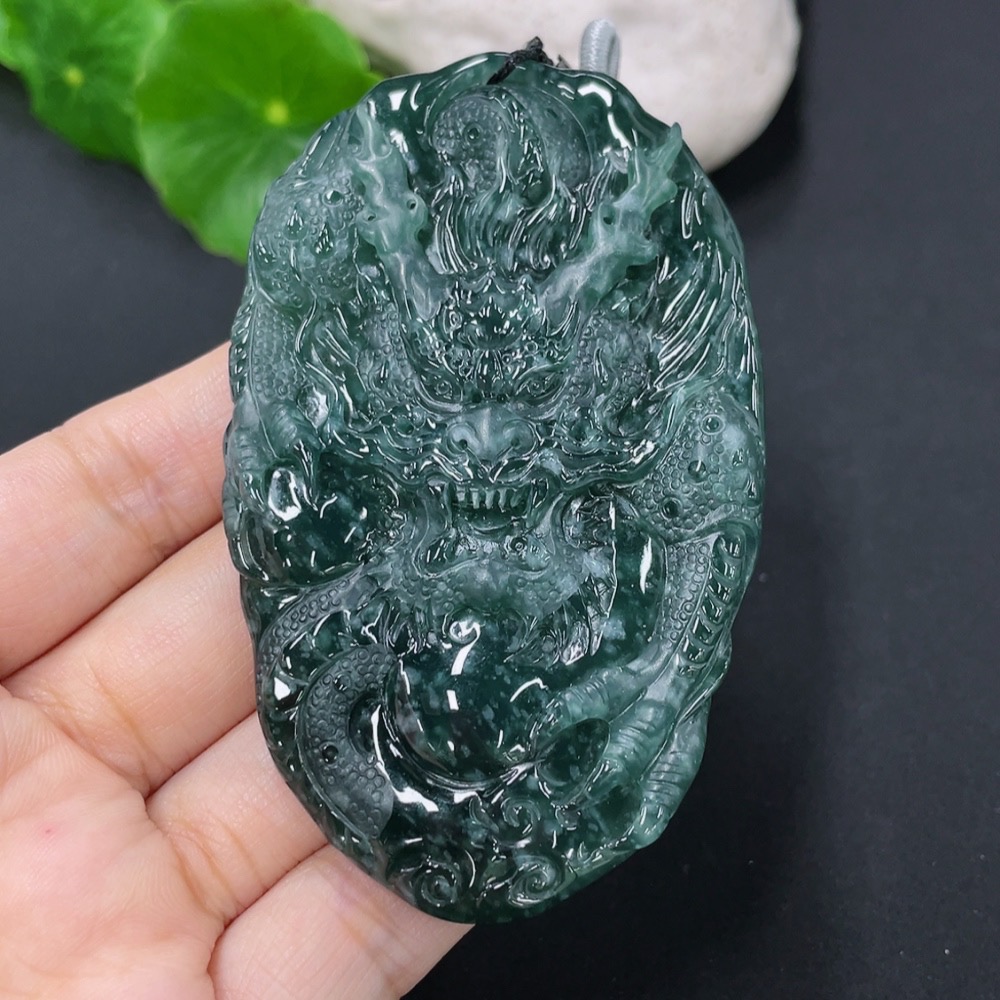 Jadeite Pendant Dragon Plaque Total Weight Including Rope 57.59g
