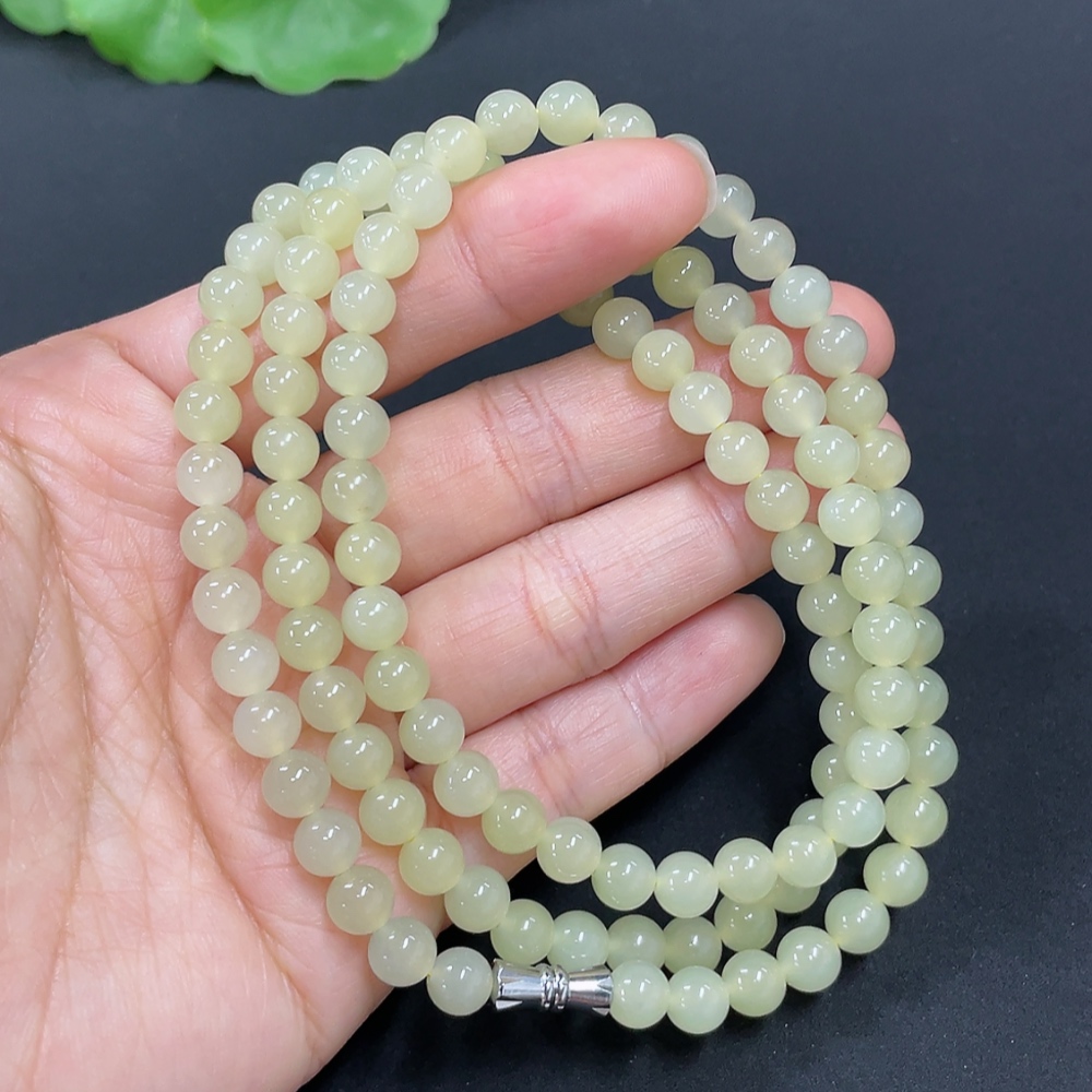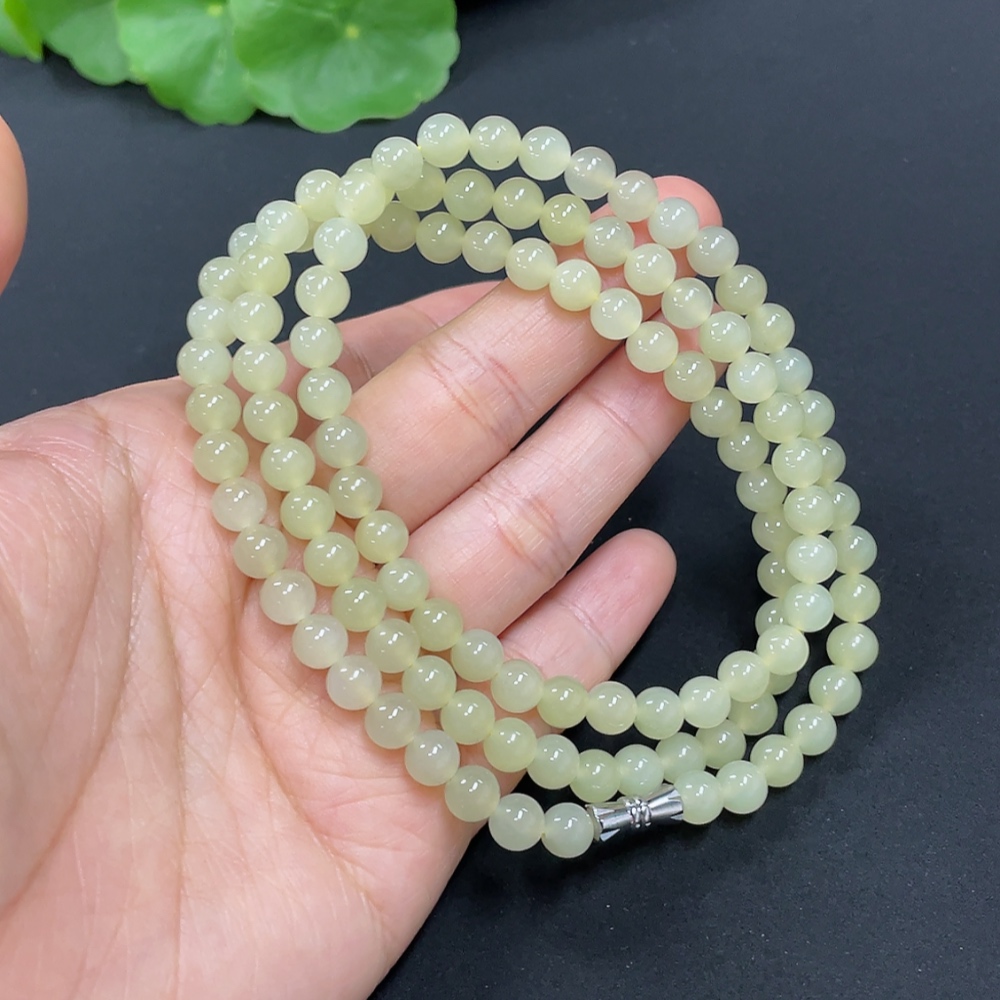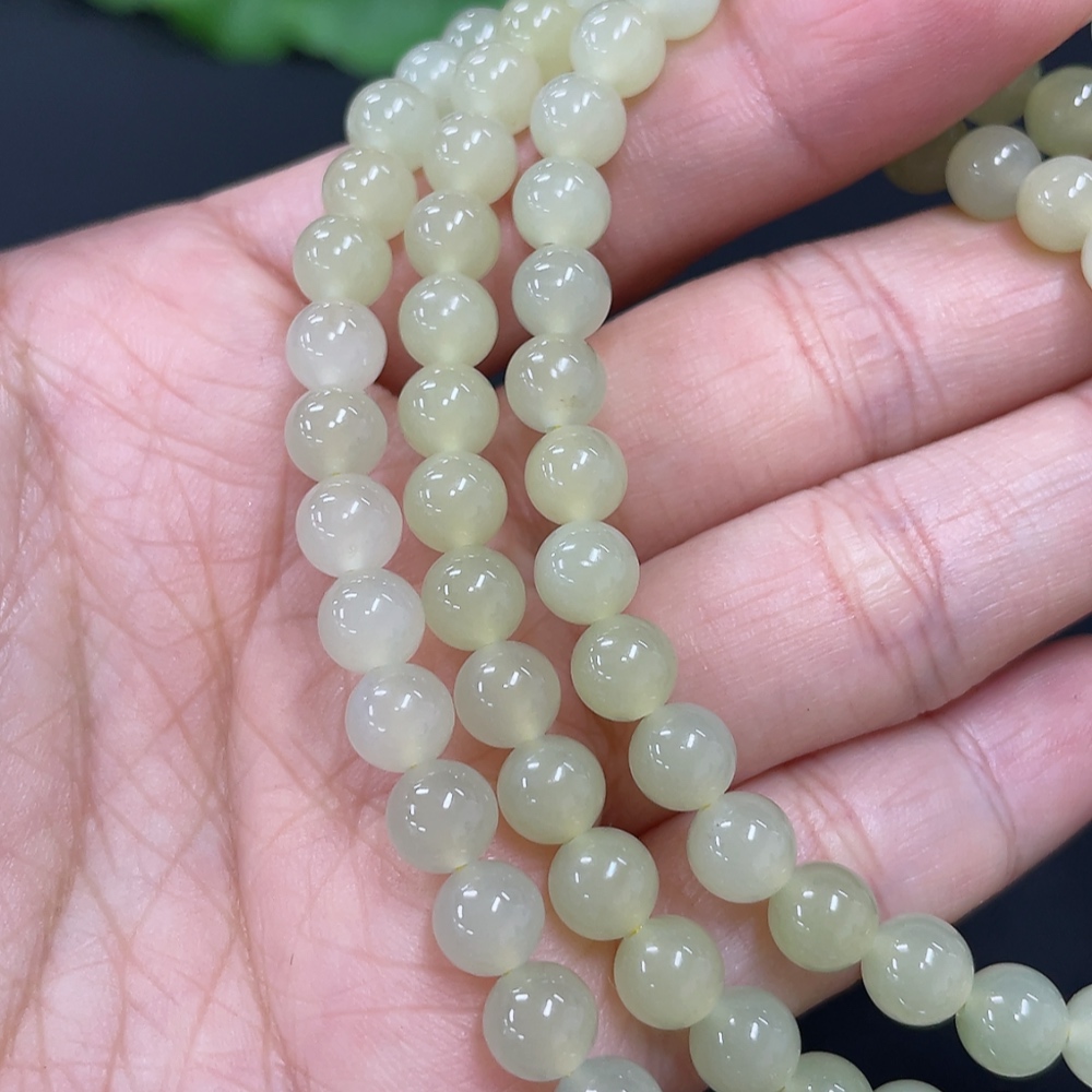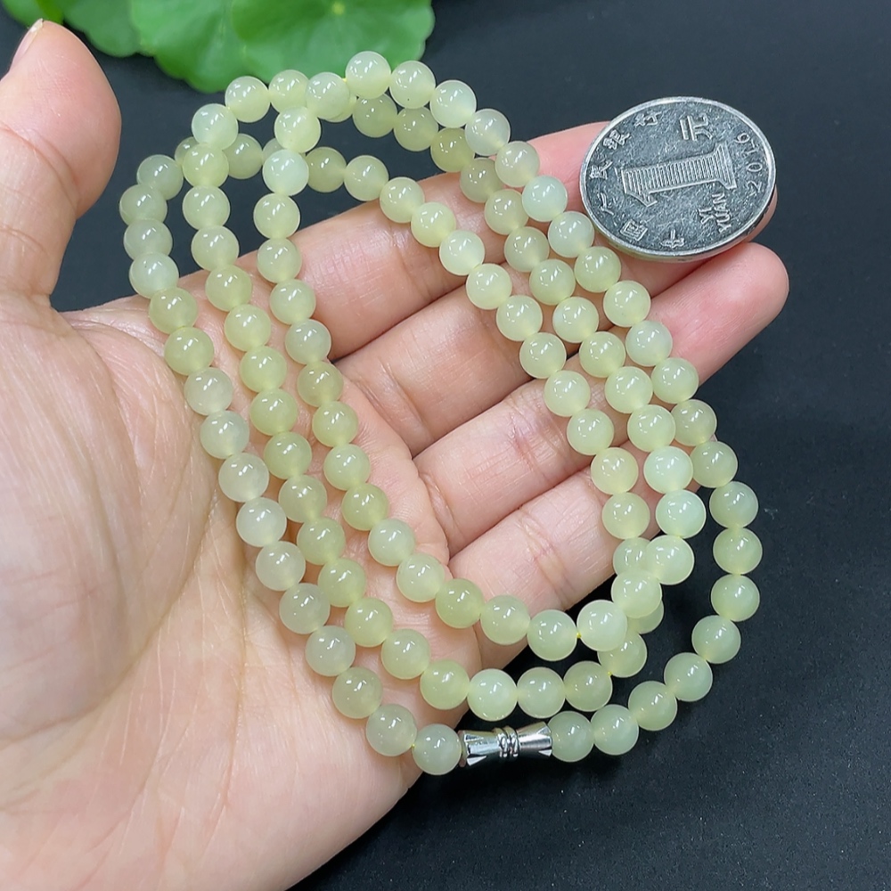 Hetian Jade Bead Necklace, Approx. 5.7mm, Total Weight Approx. 35.4g
