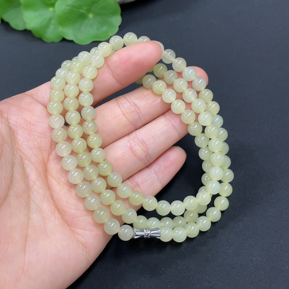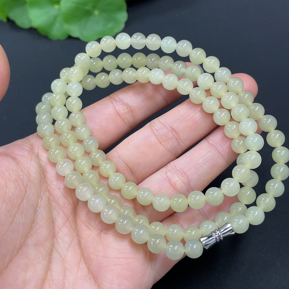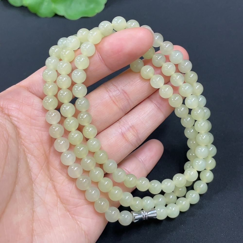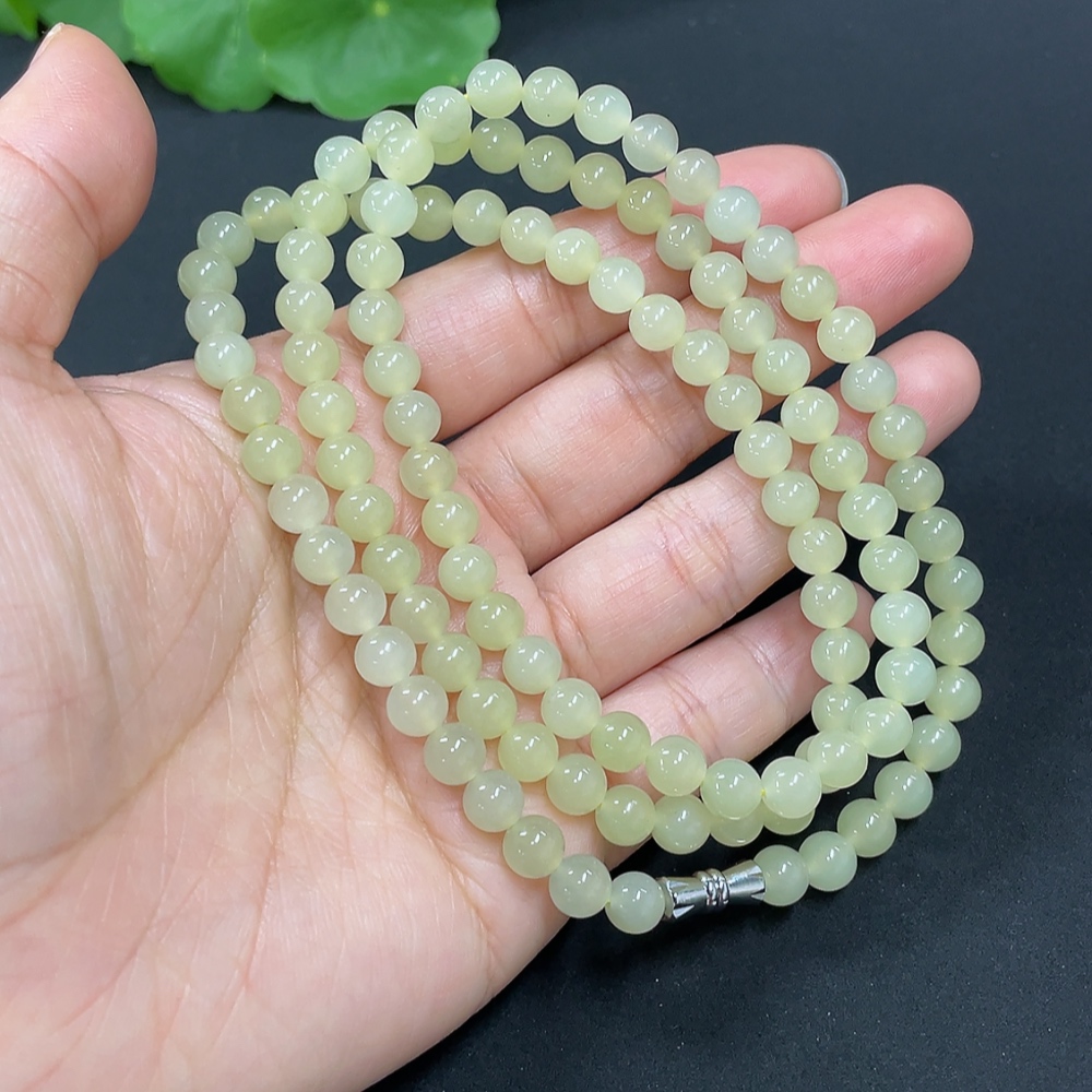Hetian Jade Bead Necklace, Approx. 5.7mm, Total Weight Approx. 35.4g