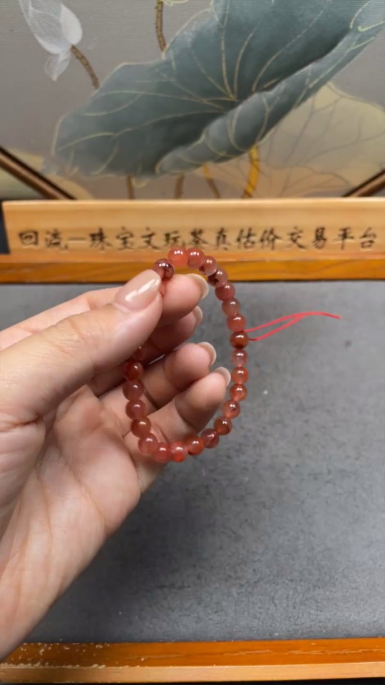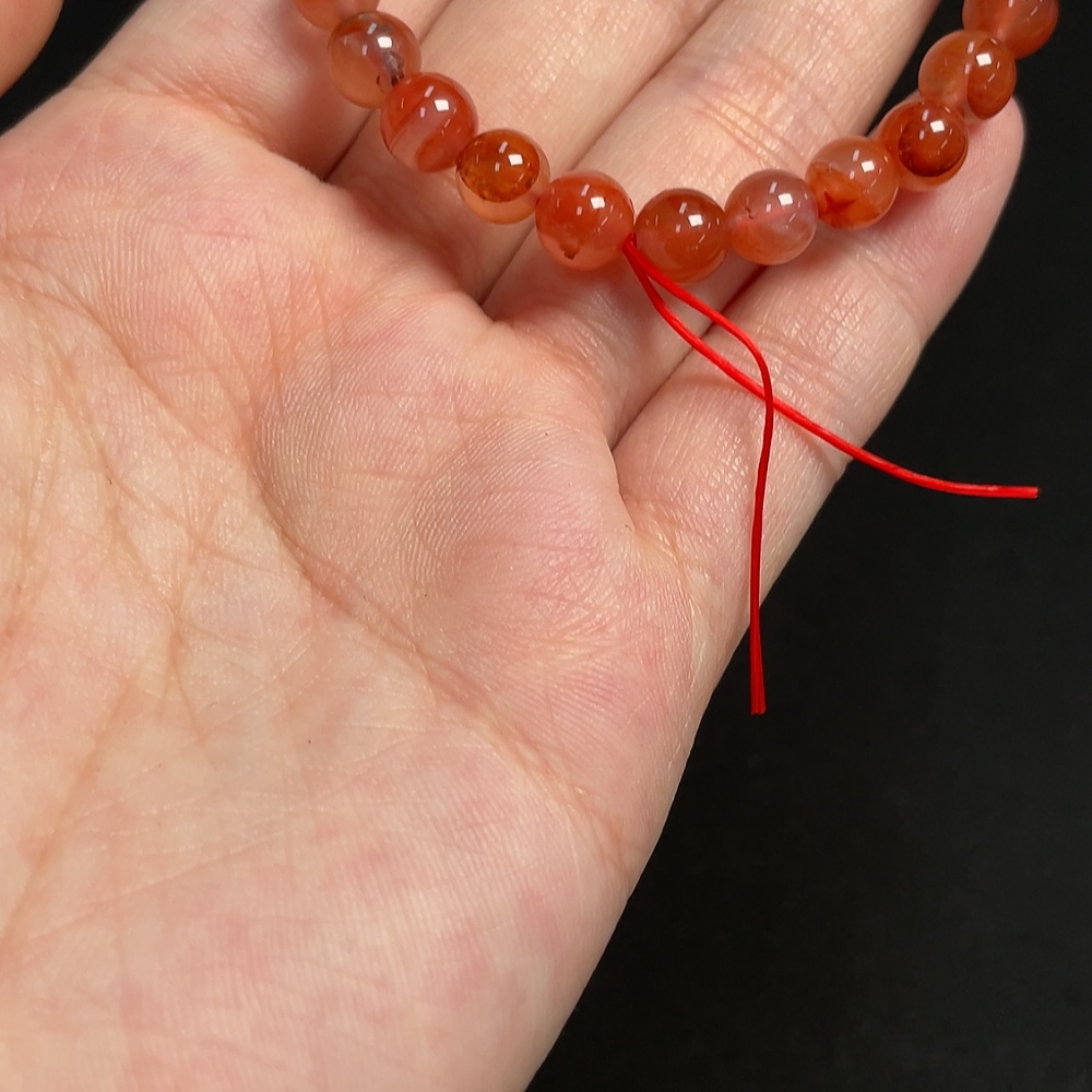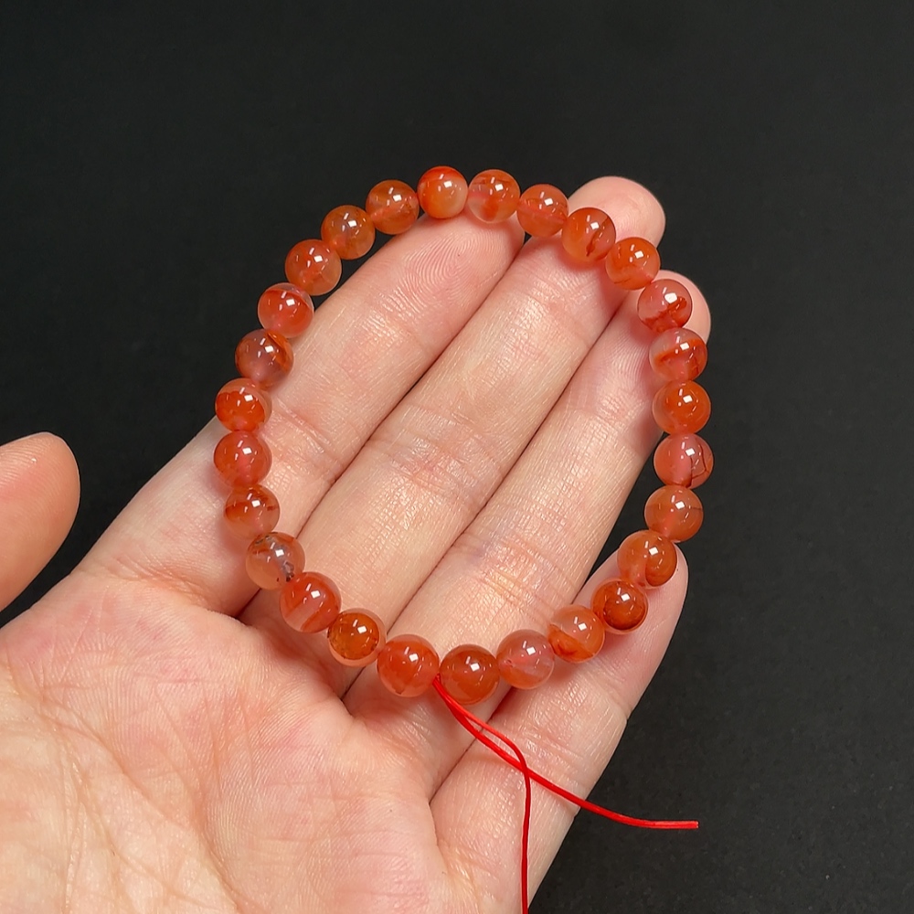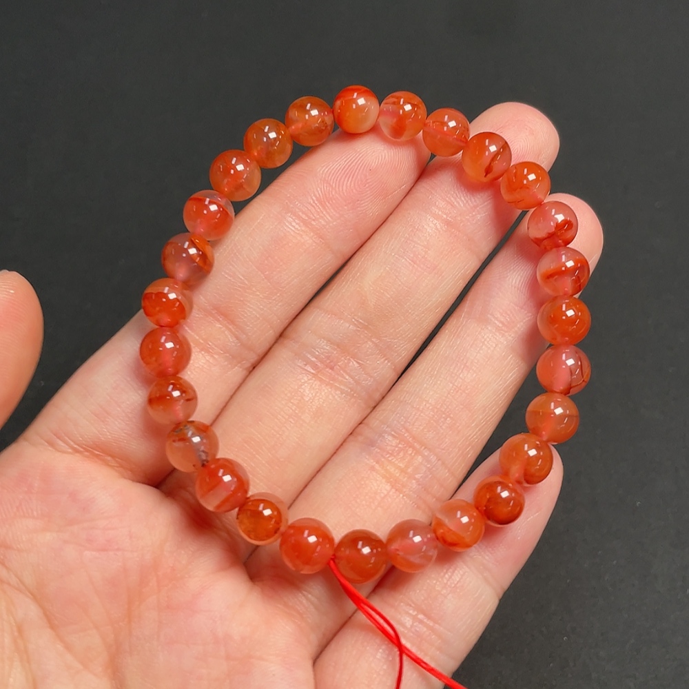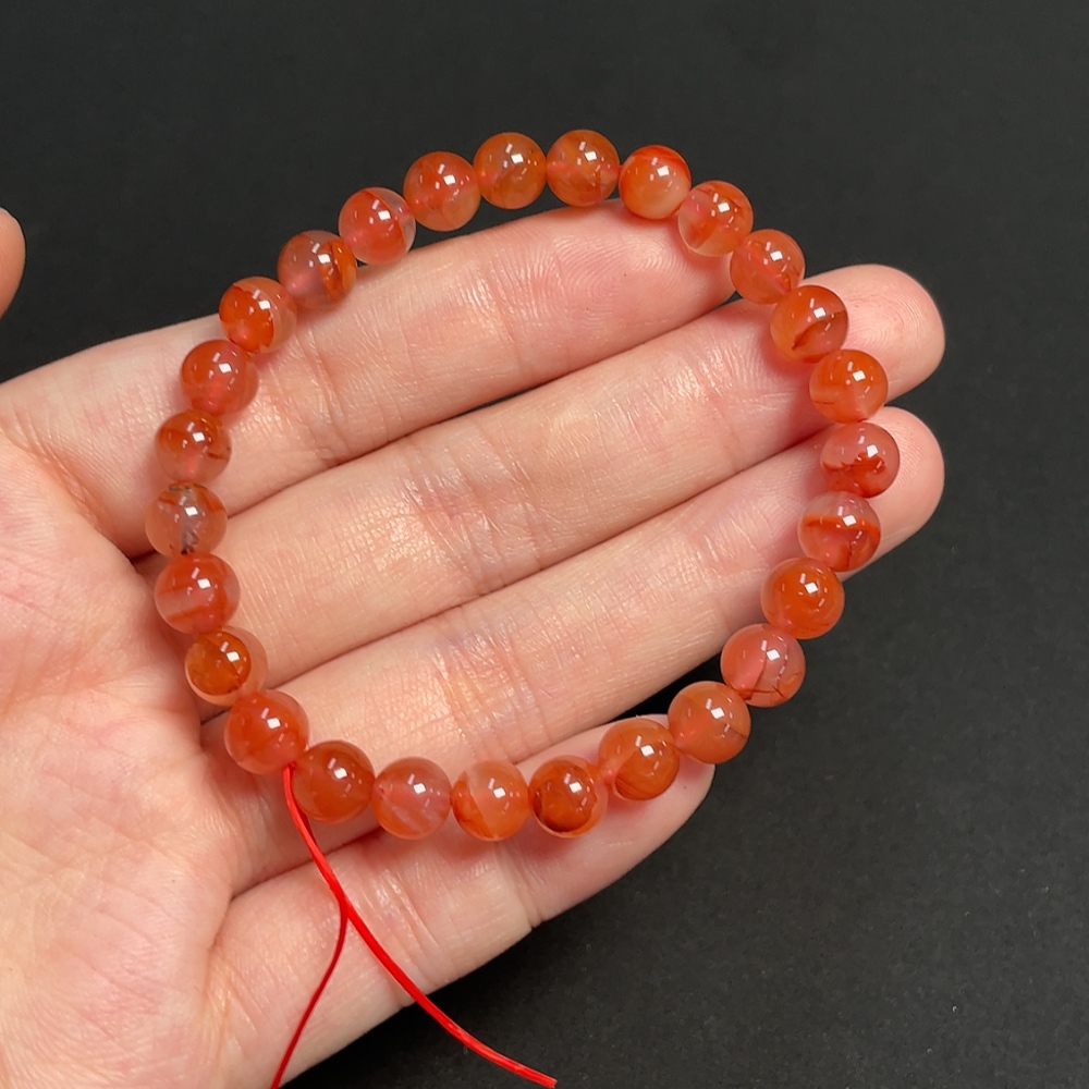Red Agate Bracelet with Visible Organic Matter, Total Weight Approx. 10.96g, Size About 6.5mm