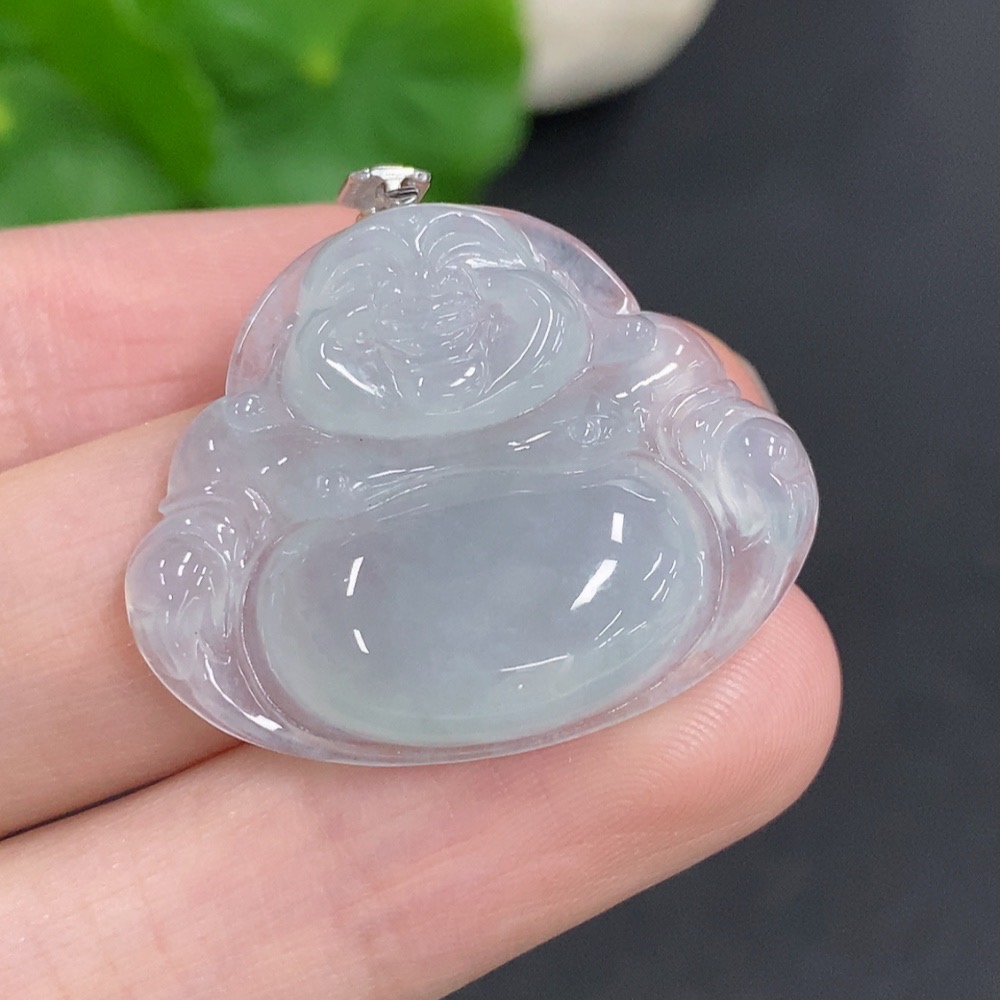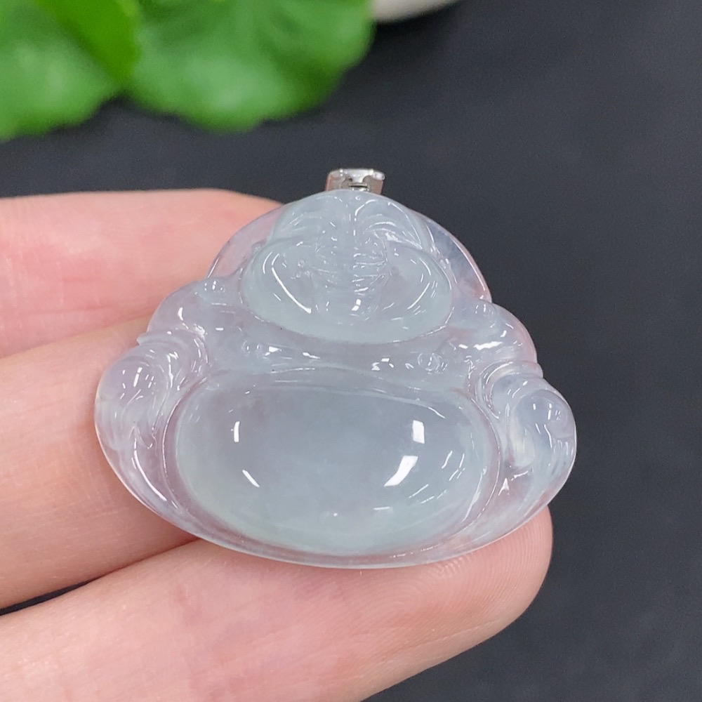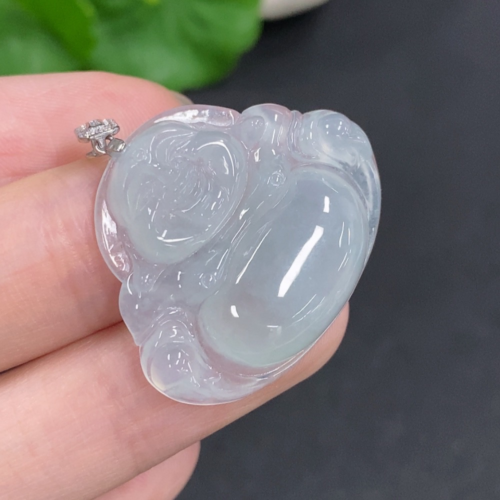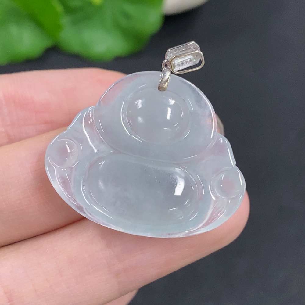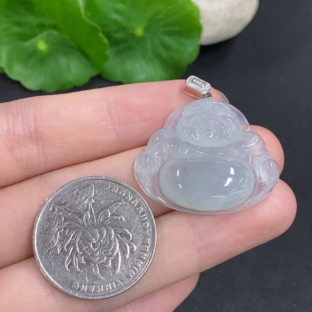 Jadeite Buddha Pendant with 18K Gold Clasp, Total Weight Approximately 6.2g, Diamond Accented